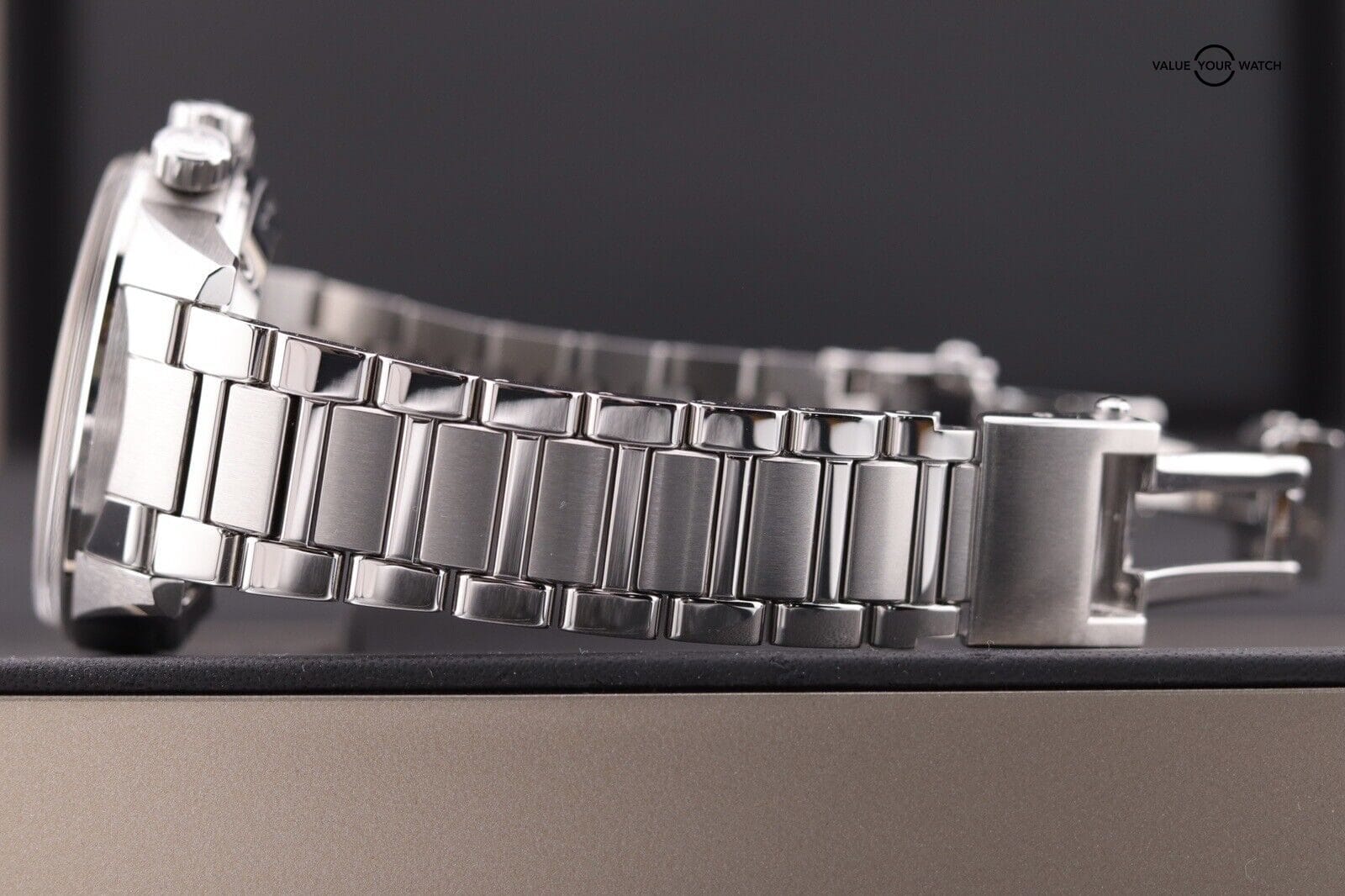 – This piece is in excellent condition with just minor hairlines in some of your high polish areas. The edges are sharp, crystals are clean, and movements timekeeping and alarm function as they should!