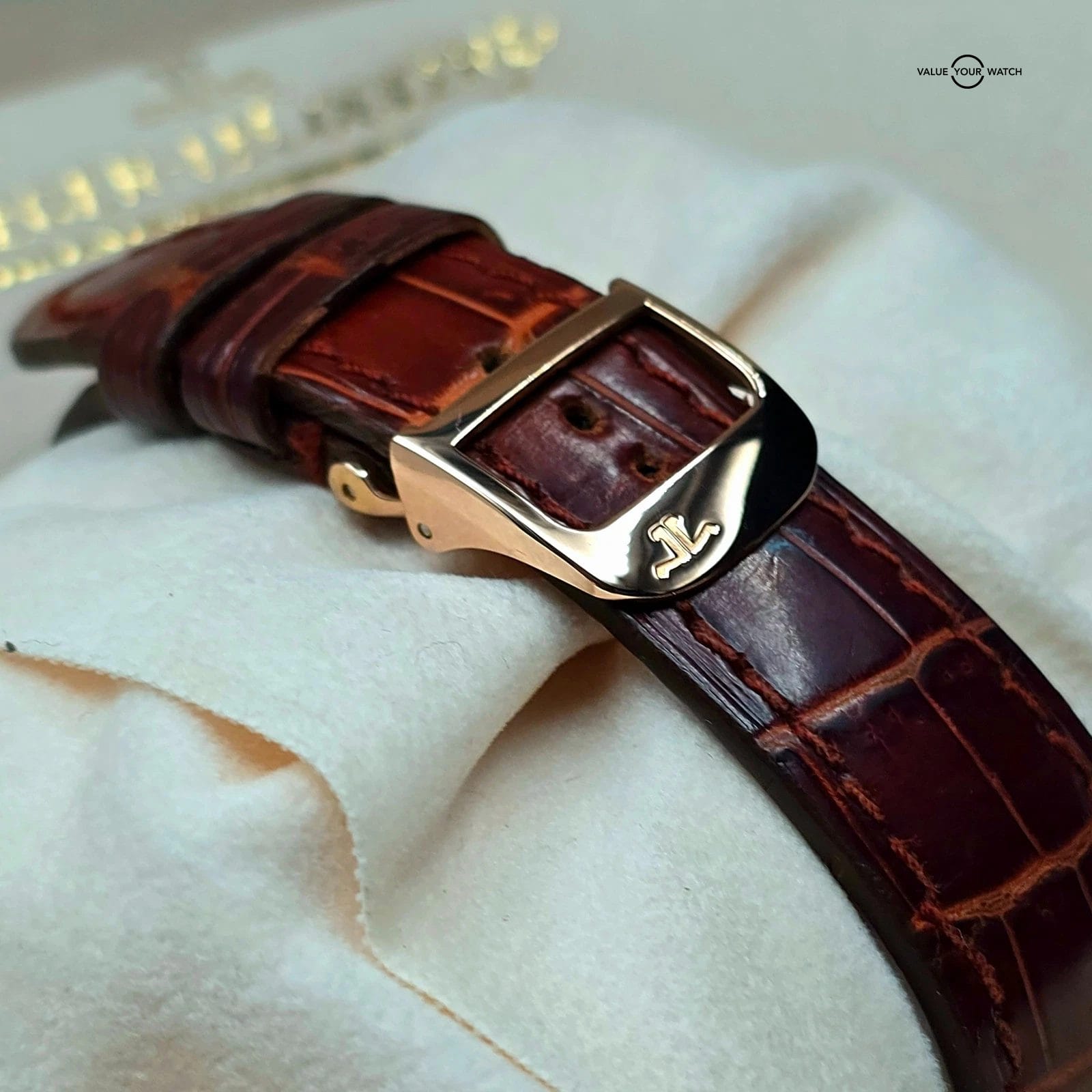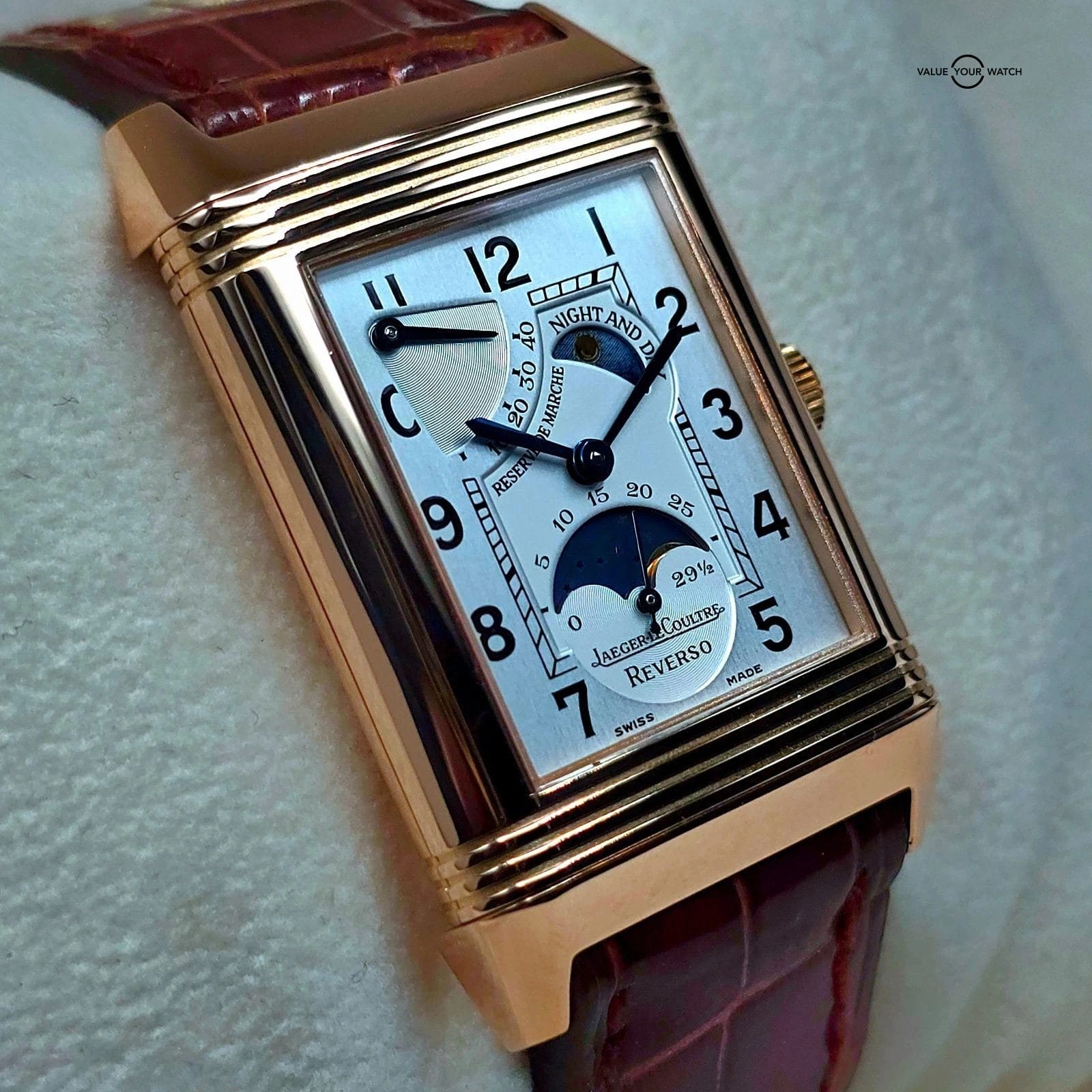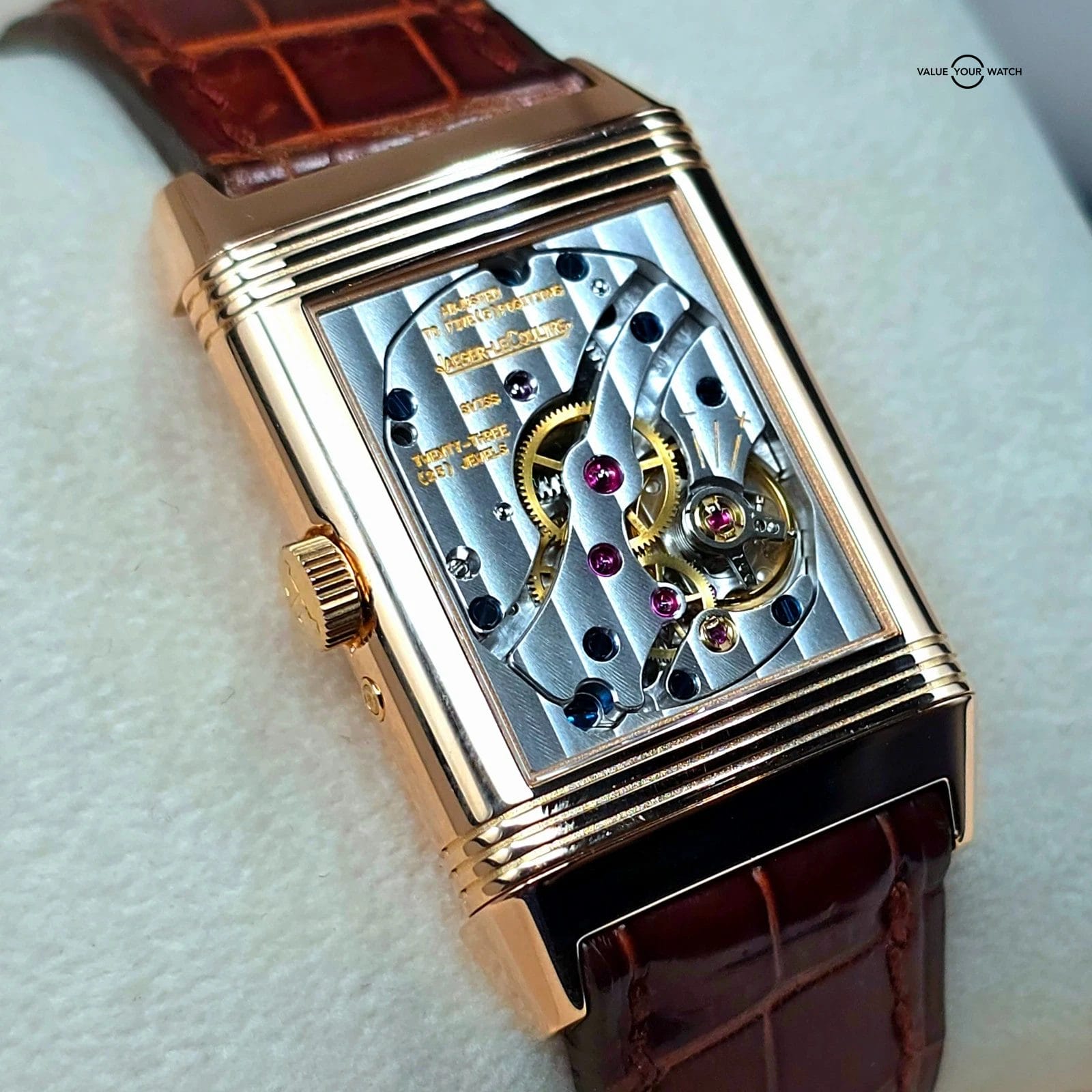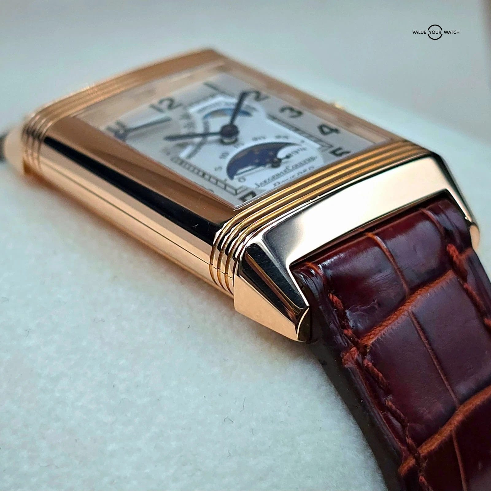 Up for sale here is an incredible timepiece from JLC. The Reverso is arguably the best watch made by the manufacturer, and when complications are added, it’s even better! Cased in solid 18k rose gold. Ref. 270.2.63