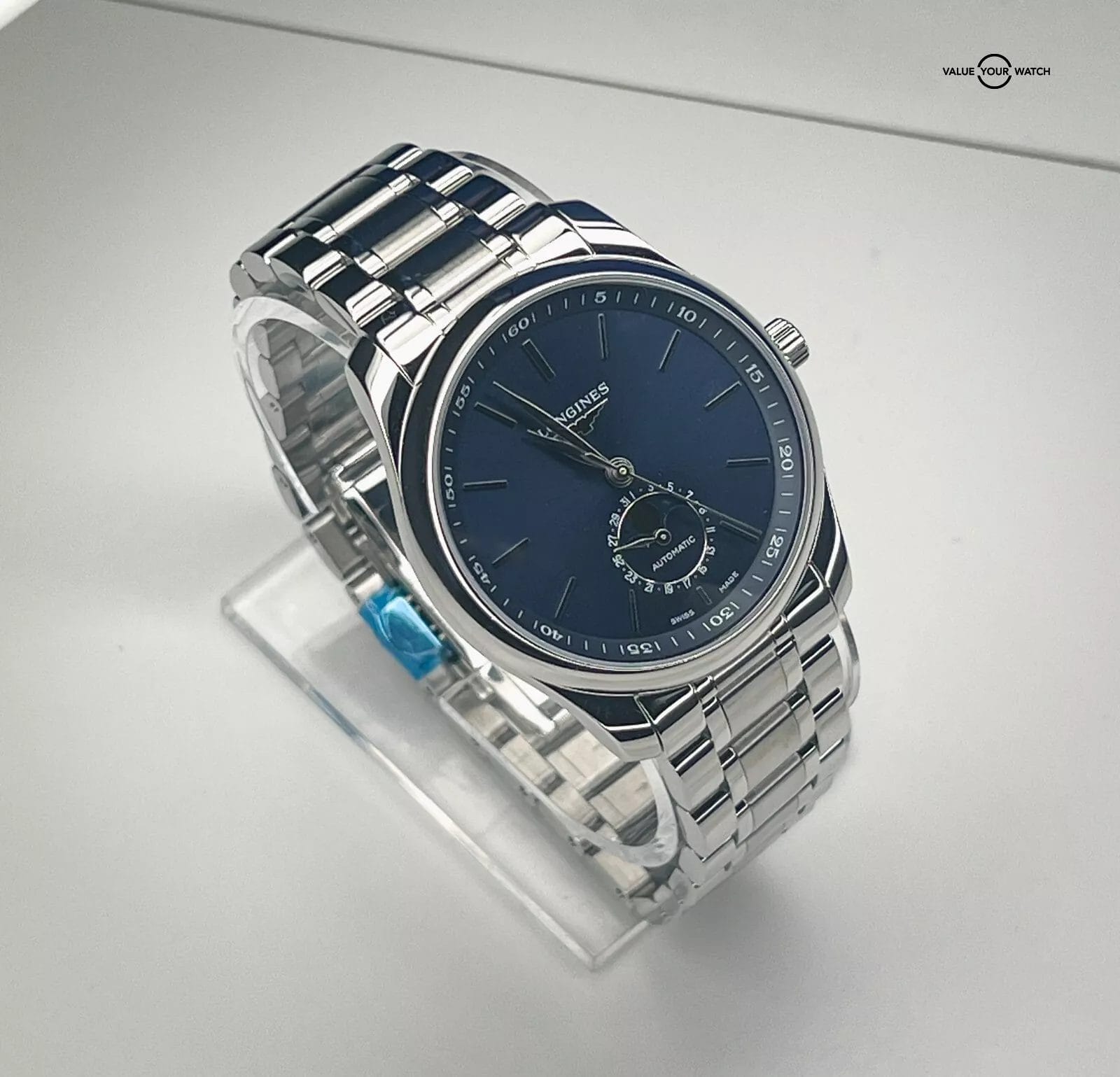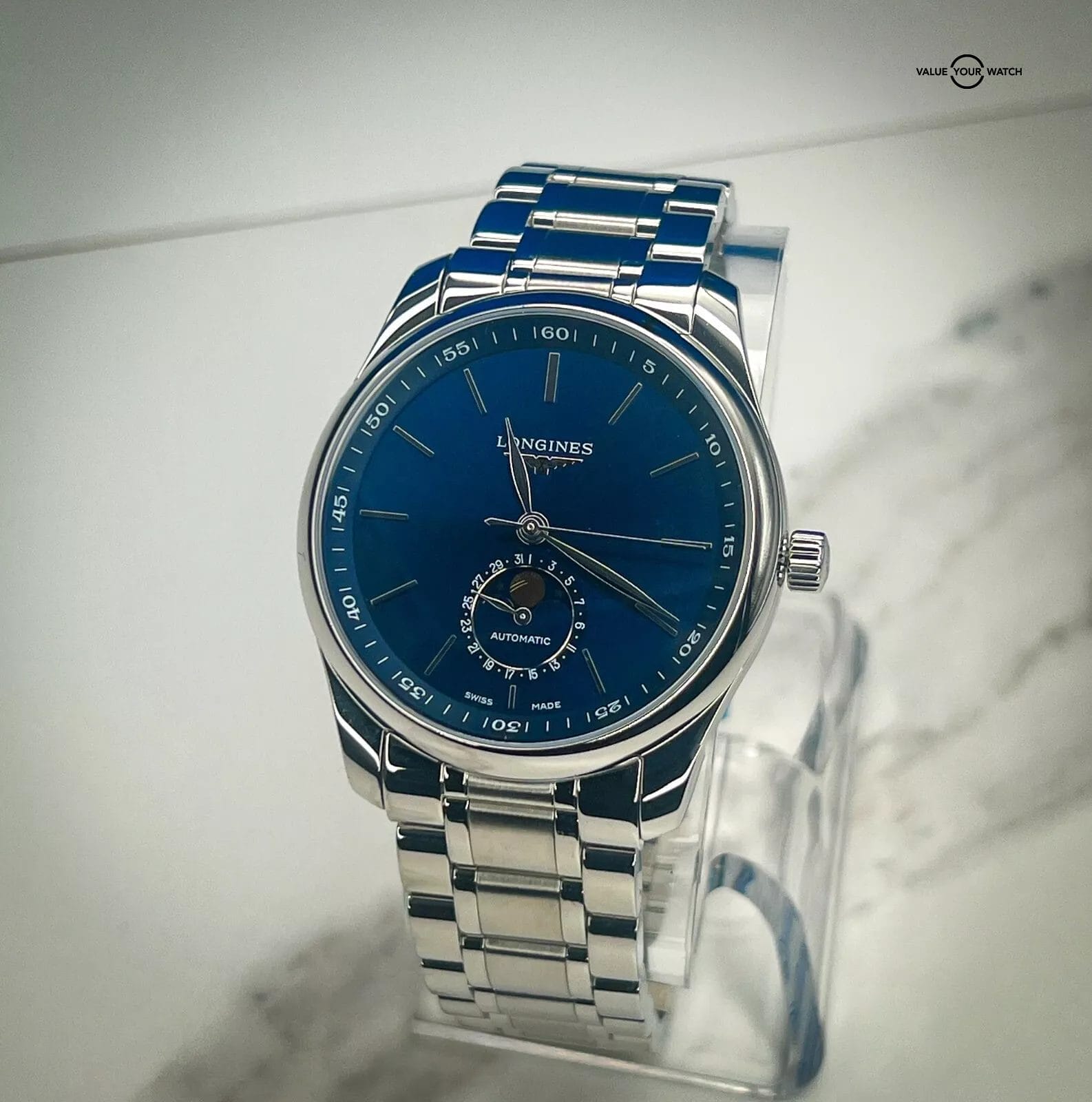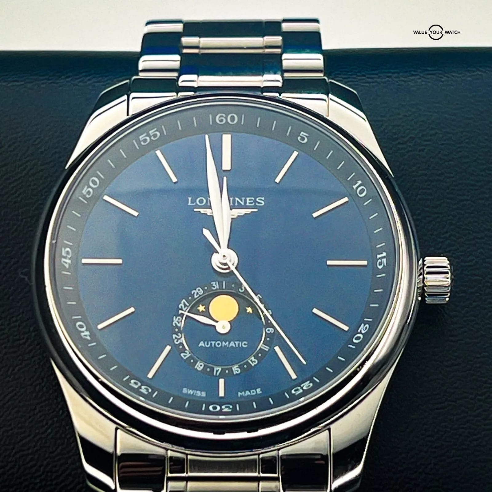 DESCRIPTION It’s Sporty, Classy and the beautiful Sunray Blue dial is an eye catcher for sure! The Longines Master Moonphase comes as a complete set which includes original Longines outer box, Longines inner wood box, booklet/manual and warranty card date 4/20/24. CONDITION Watch is new, unsized and unworn. All photos are taken by our in-house photographer of the actual item and is the best visual description of the condition we can provide. We do not use any stock photos. Please refer to the photos for condition. If you need additional photos or have any questions, please feel free to contact us. AUTHENTICITY We fully stand behind and guarantee that all our pieces are 100% authentic. For your extra peace of mind, all of our pieces are backed by eBay’s Authenticity Guarantee. Each piece is inspected by an independent expert before you receive it, so you can buy in complete confidence that it is authentic and just as we have explained in our listing. SHIPPING TERMS All domestic shipments have a 2-day handling time and are shipped using Fed Ex 2 Day Service. All shipments are fully insured, and tracking numbers provided. For International Shipping please contact us directly for assistance to your destination. RETURNS Returns accepted for 14 days from purchase. Buyer responsible for any return shipping costs and must be in the exact condition they were delivered with all boxes, manuals and paperwork included. WARRANTY & DISCLAIMER Adrenaline Timepieces is not a dealer nor affiliated with any of the brands that we sell. All items are considered as pre-owned. Any warranty provided is the remaining factory warranty if still valid. ABOUT THE SELLER I am a professional watch collector and love anything and everything about watches. I am 100% committed to providing you with beautiful timepieces at reasonable prices backed by my exceptional customer service. I am happy to answer any questions about the watch you might have. Just reach out to me via messages. I have many references in the watch world and am happy to provide them as needed. I look forward to helping you secure your next timepiece!