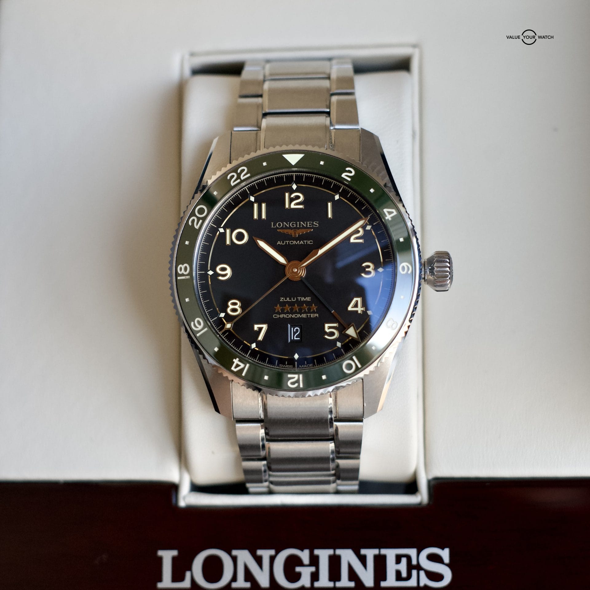 Longines Spirit Zulu Time 42mm Green Bezel