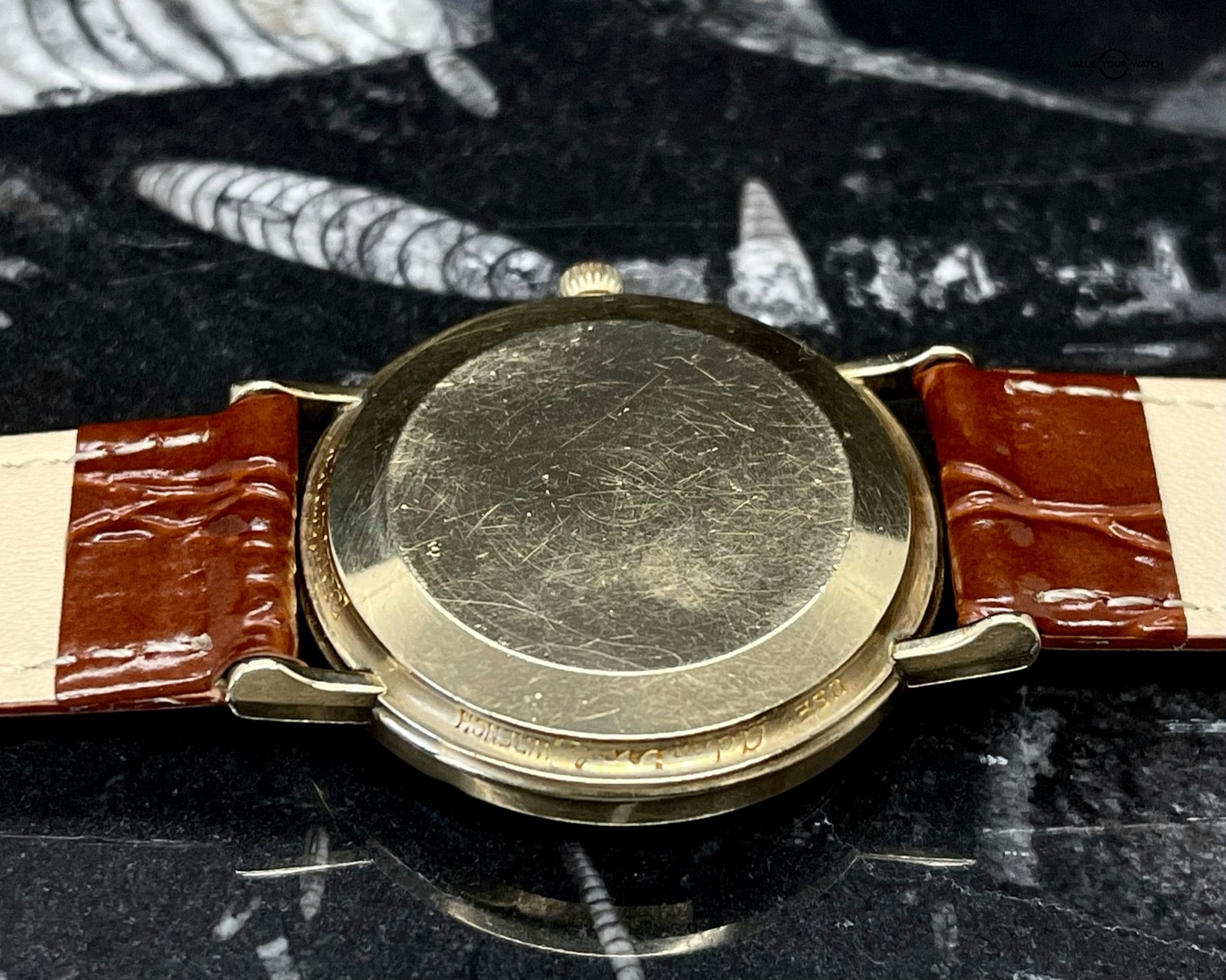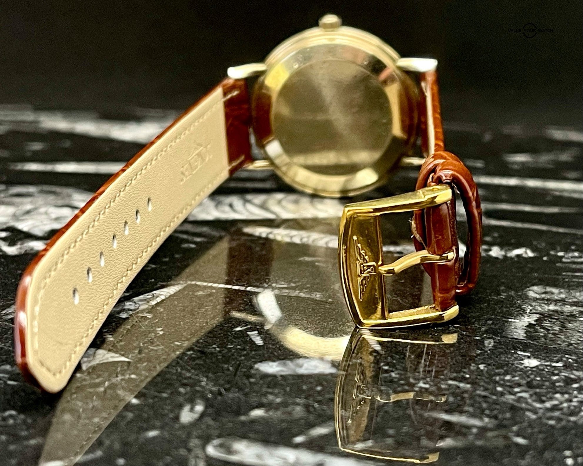 This is a beautiful 10k gold fill vintage piece for those with a more classic taste. With watches getting so large nowadays it’s always nice to have something smaller and simpler. This watch has never been polished and was recently serviced. The plexiglass in a near perfect condition, the case has minor wear, and the strap has never been worn. Get this beautiful pre-owned time piece before it’s gone!