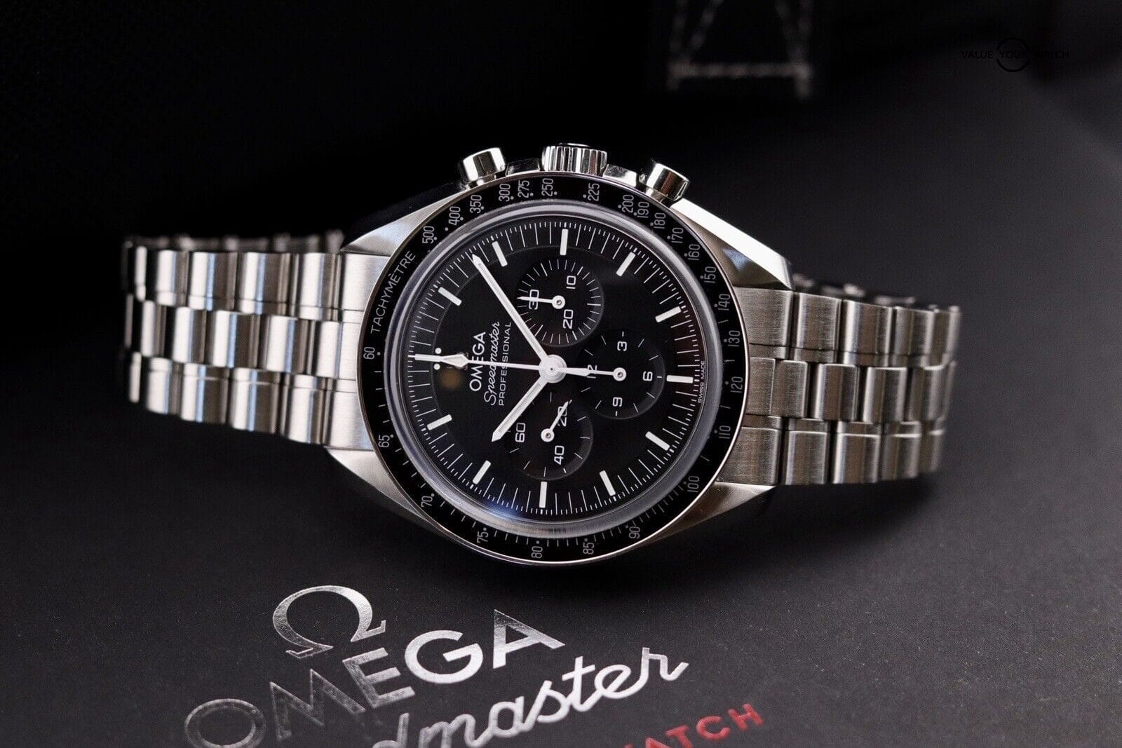 When selling an Omega Speedmaster Moonwatch Pro Sapphire Sandwich, create a detailed listing with high-quality images from various angles. Describe the watch’s condition, age, and any relevant service history.