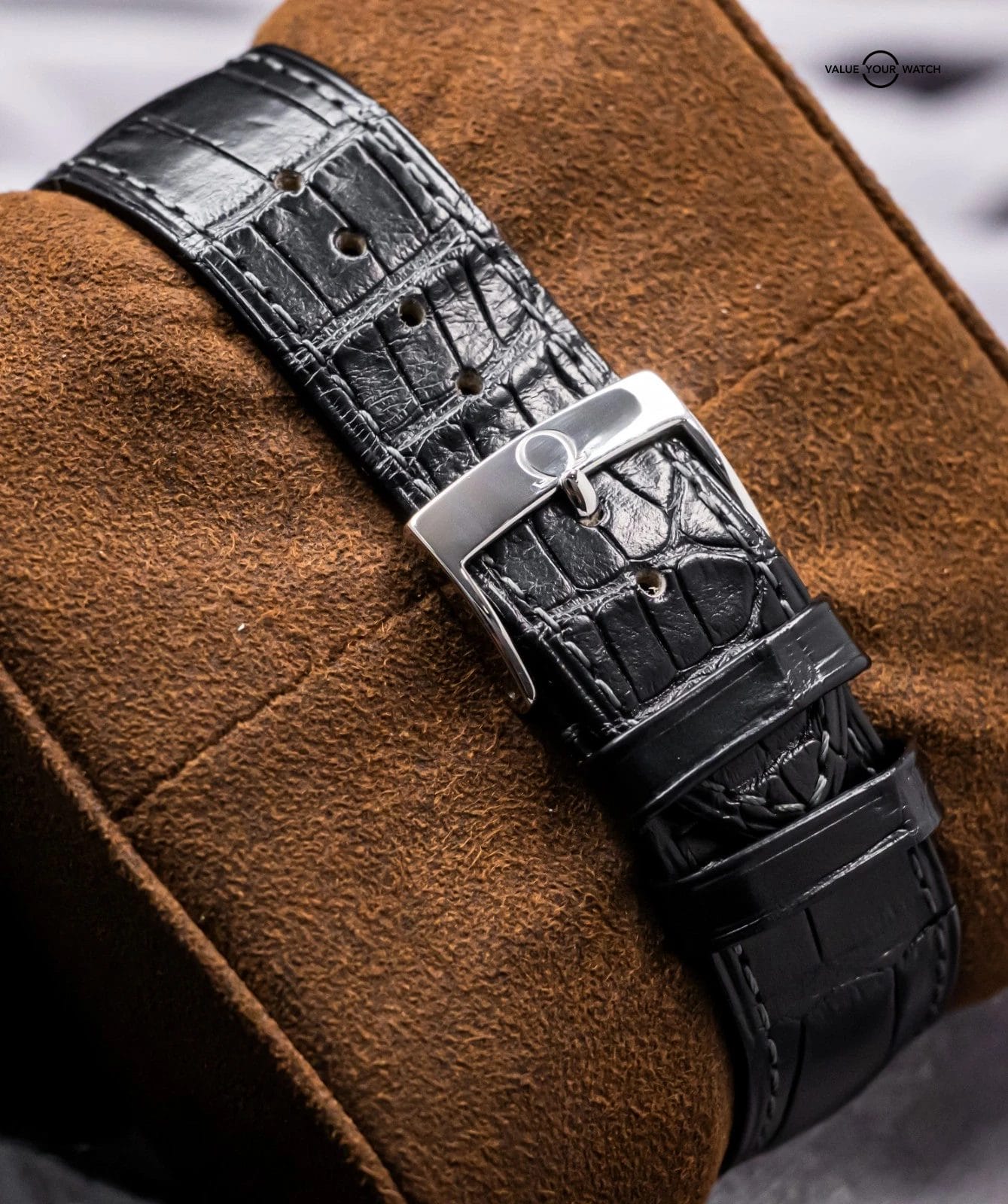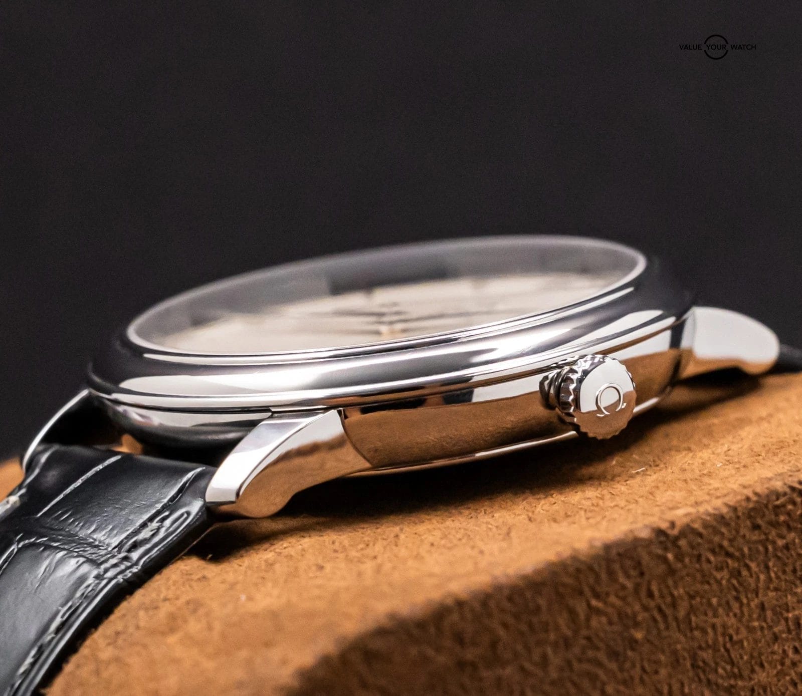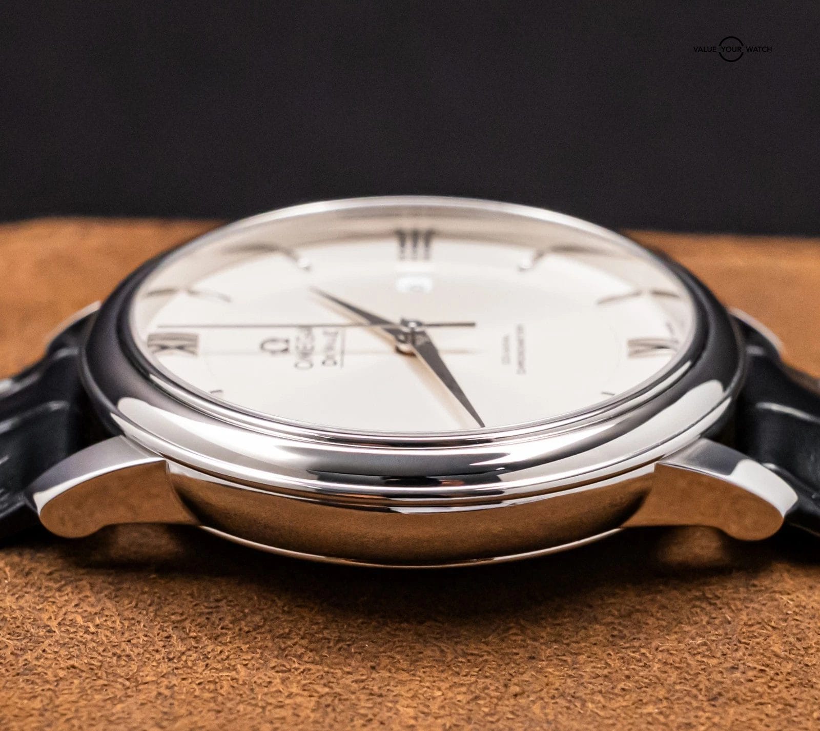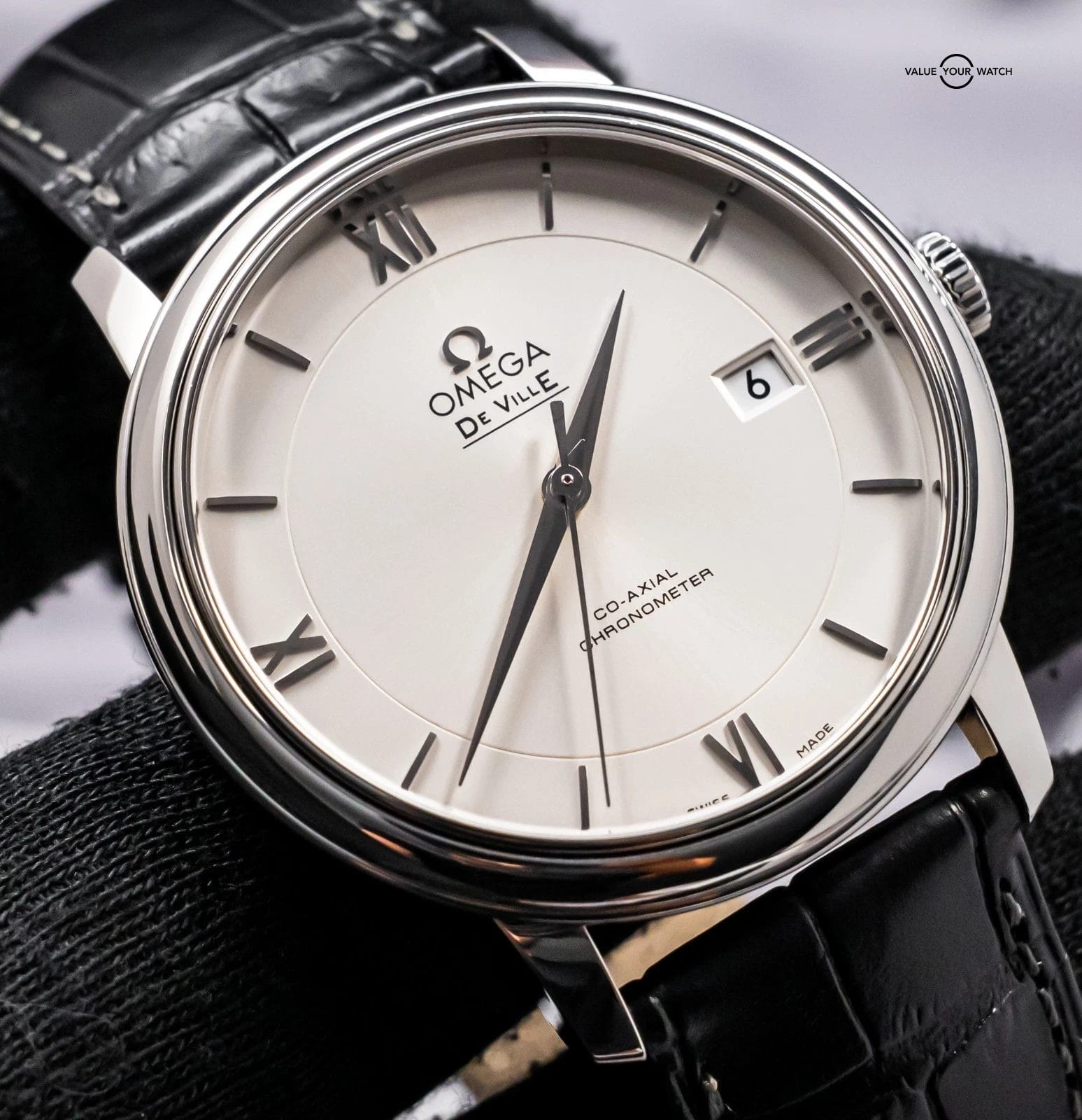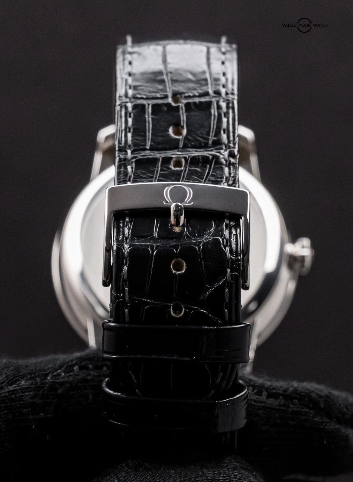 STUNNING Omega De Ville Prestige Co-Axial Chronometer 39.5 mm with Silver Dial on Black Omega Alligator Leather Strap! Arrives as a complete set with the original Omega boxes and papers including the pictogram card, international warranty card, and manual. Acquired from the original owner who wears his pieces sparingly. Very classic setup, easy to dress up or down with the immense versatility. Super comfortable and ready to be on wrist!