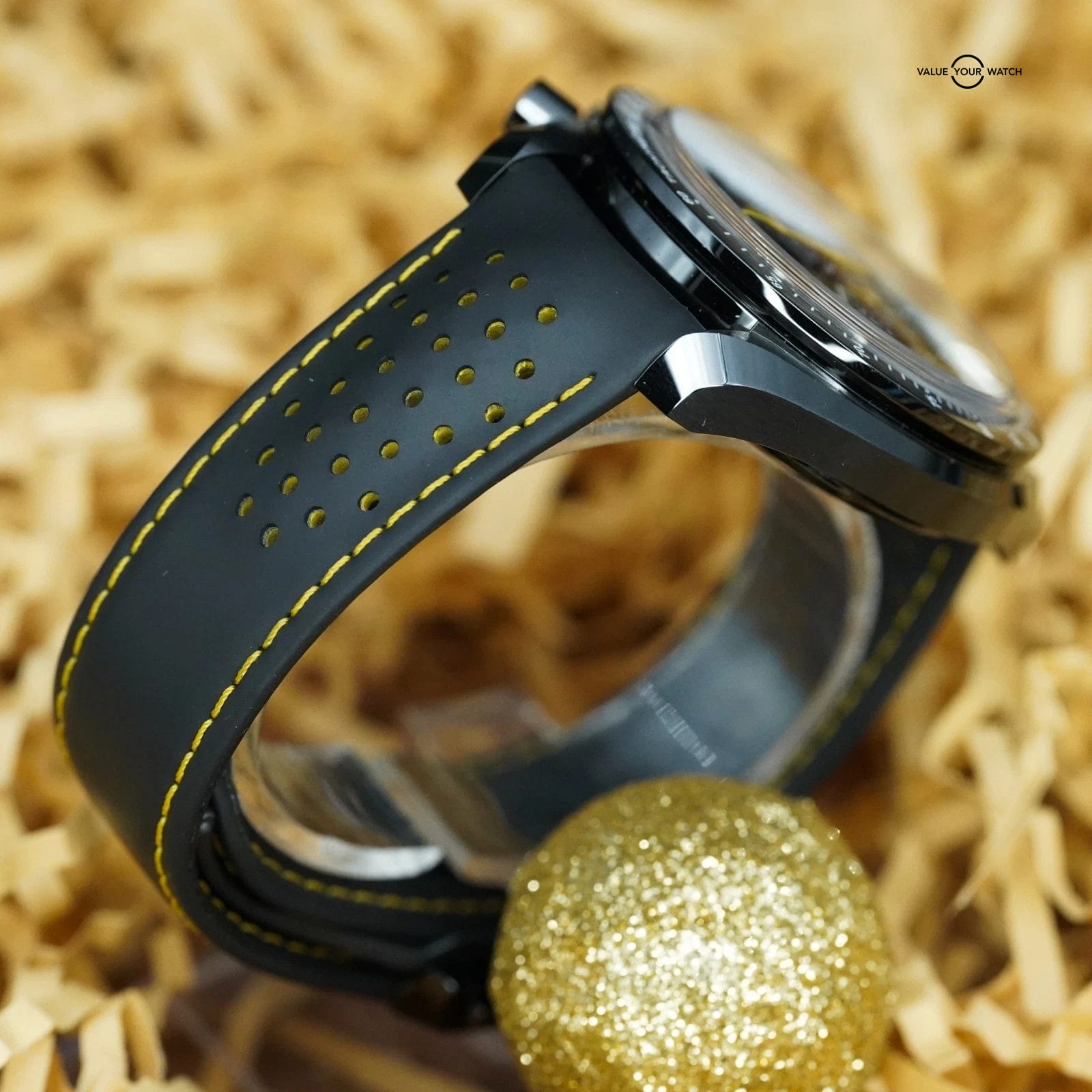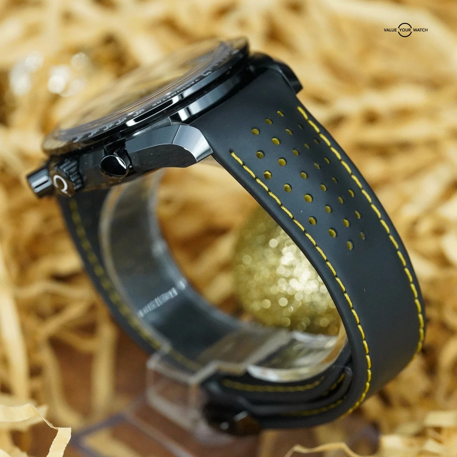 This isn’t just a watch—it’s a declaration of ambition. Crafted in a 44.25mm black ceramic case born from aerospace-grade zirconium dioxide, it’s lightweight, virtually indestructible, and unapologetically modern. The deep matte-black dial absorbs light like open space, while yellow chronograph accents ignite with the energy of a rocket launch.