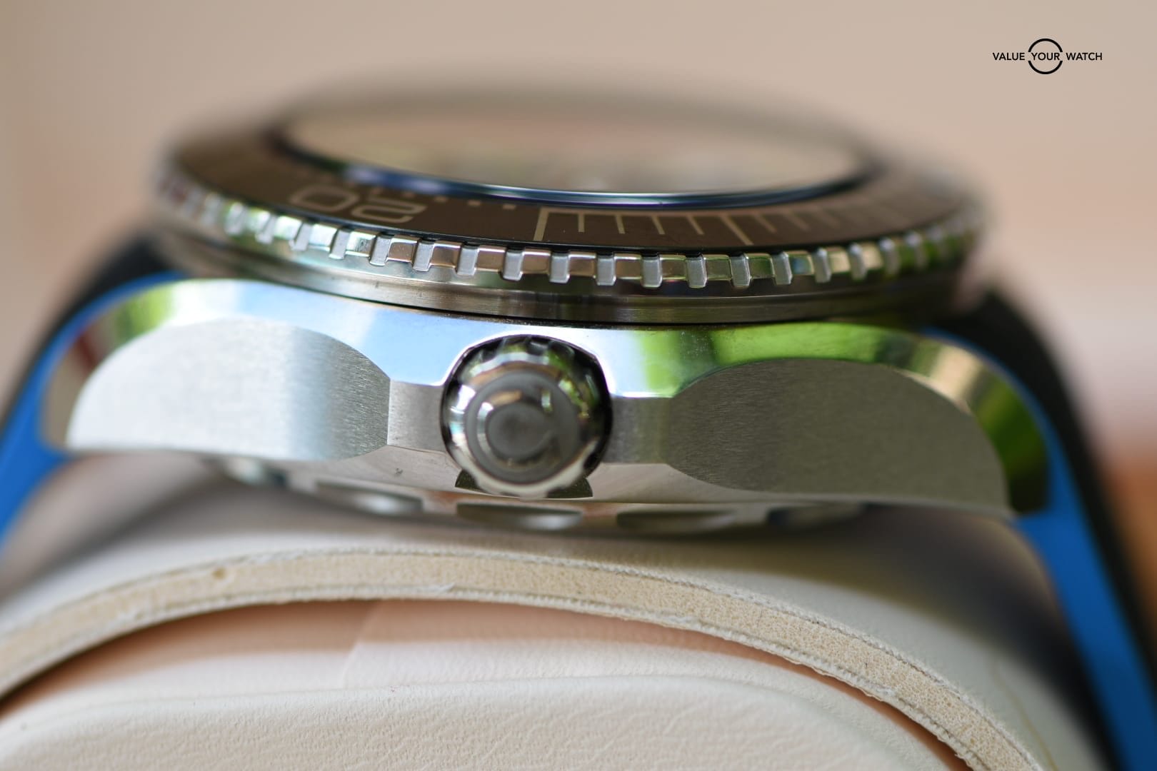 O-Megasteel case, which makes the watch feel very light for its size of 45.5mm