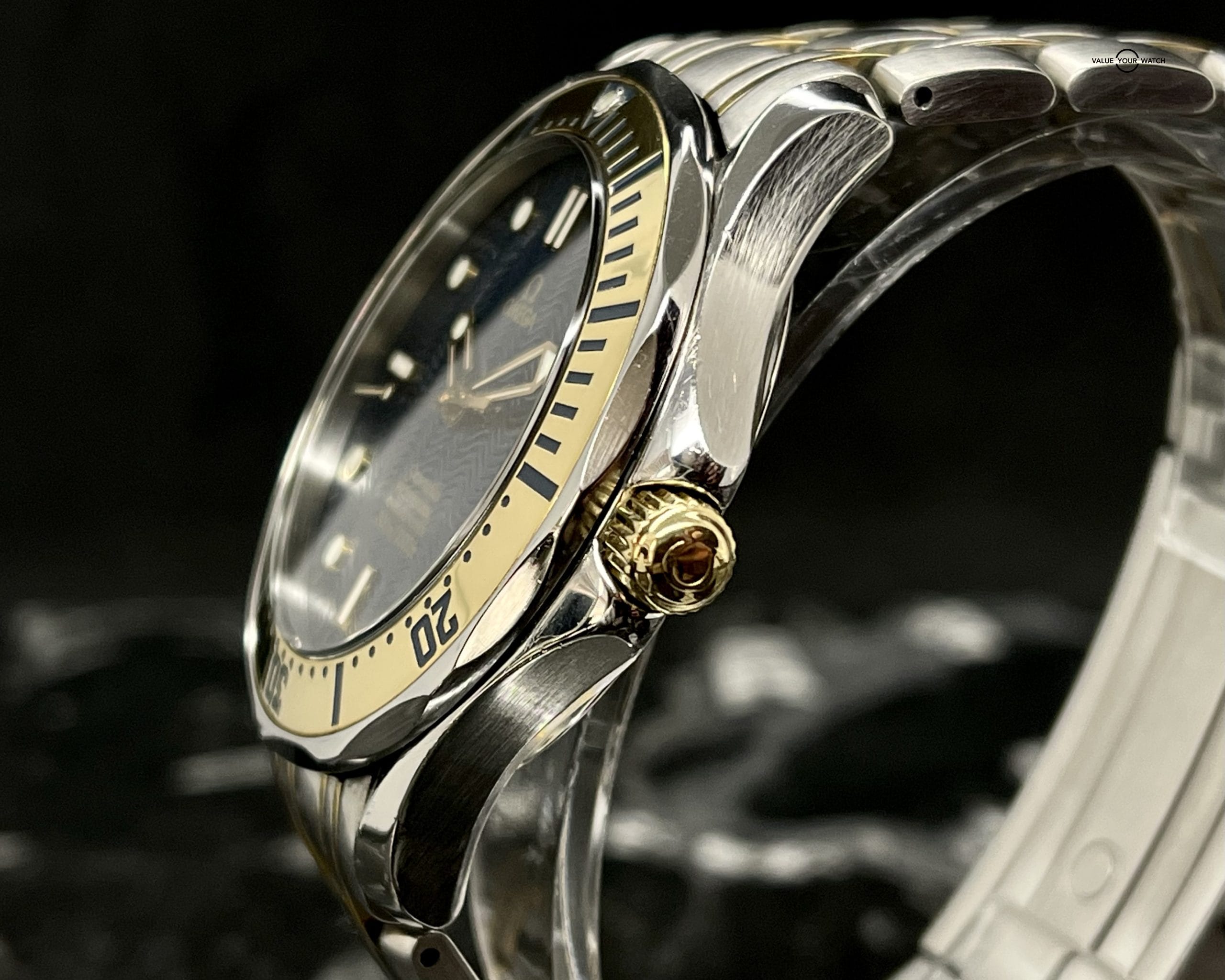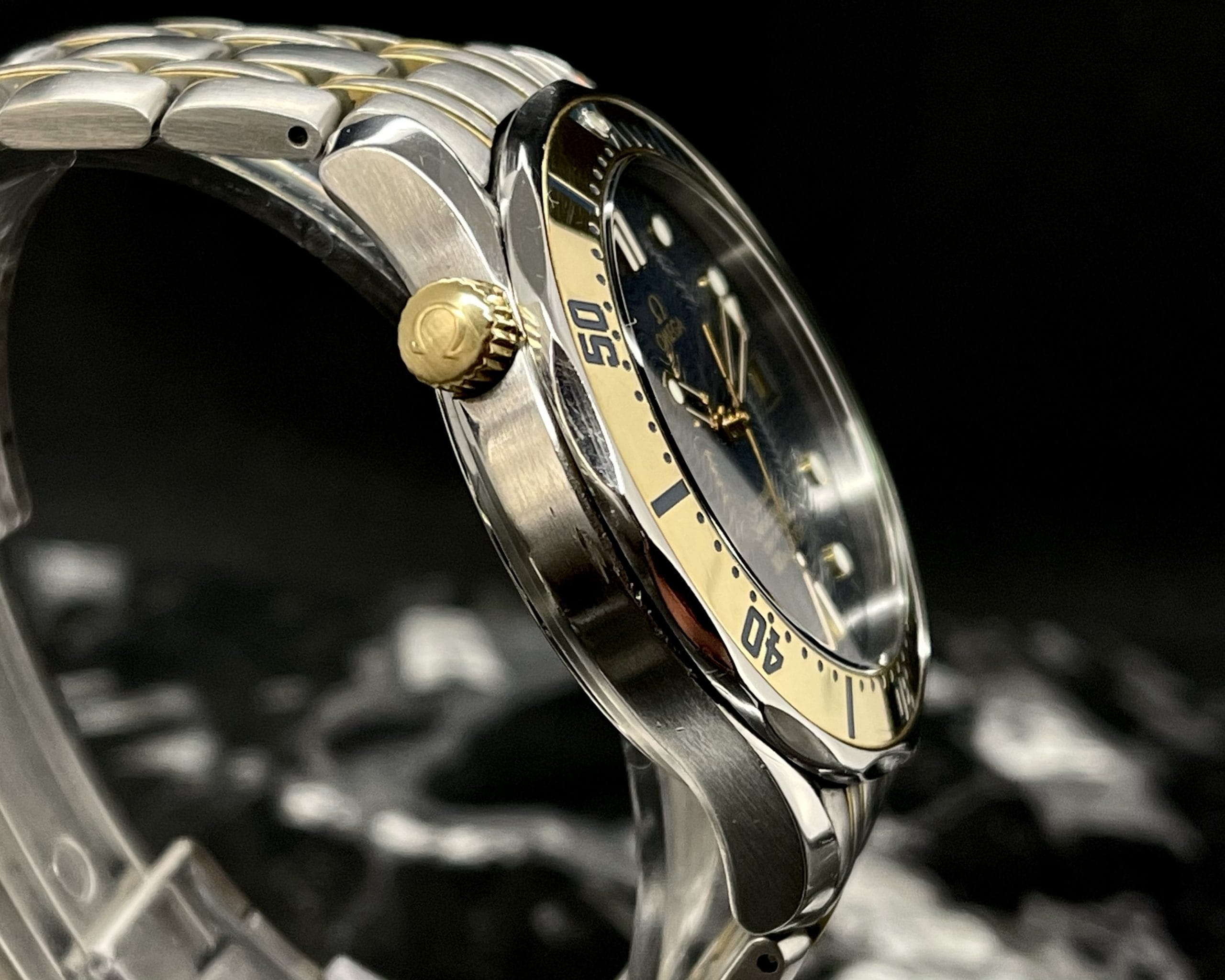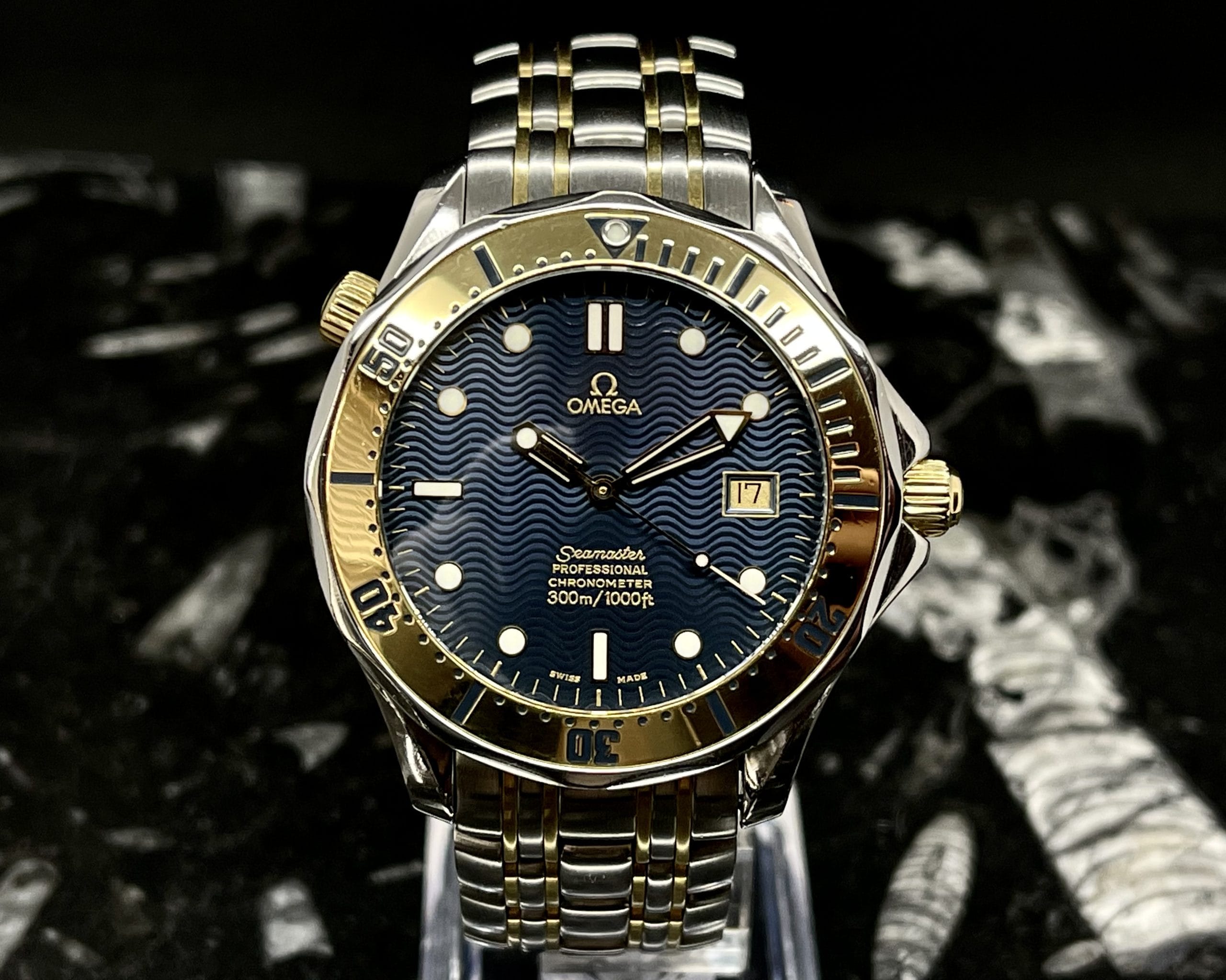 Freshly serviced! The stunning blue dial is a perfect compliment to its gold and steel finish. This will fit up to a 7.5” wrist. The clasp shows slight wear, the bracelet, case, and bezel are in great shape, and the sapphire is flawless. Get this beautiful pre-owned time piece before it’s gone!