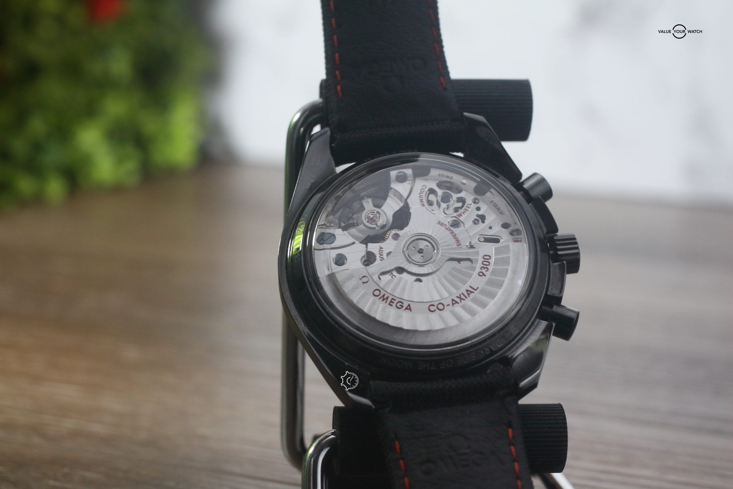 The large flawless rear sapphire crystal gives an unobstructed view of the brilliant & beautifully finished Omega 9300 movement that powers this beast of a timepiece.