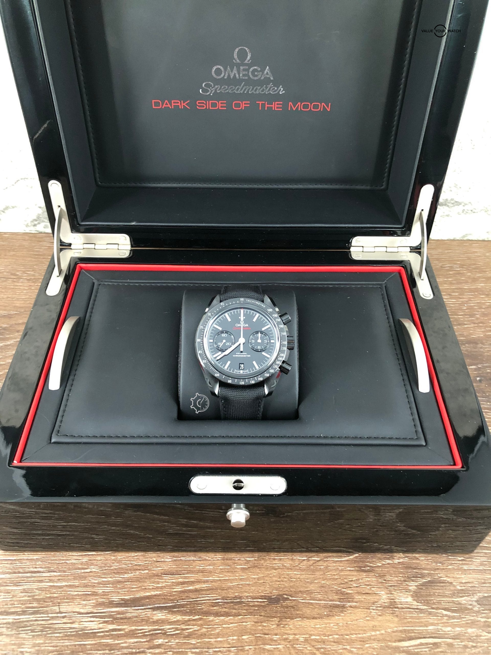 Reference number 311.92.44.51.01.003 originally came on a leather/Nylon strap with a tang style buckle. This watch comes with that strap plus 2 extra OEM deployant style straps & an OEM Omega titanium/ceramic fold over deployant clasp included. This is an extra value of over $1200.