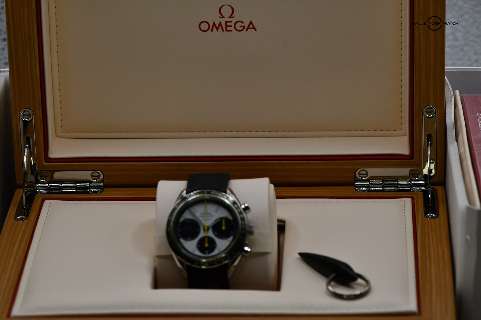 This is the Omega Speedmaster Racing with the striking white dial—one of the best modern Speedmaster variations if you want something sporty but still clean and easy to wear every day.