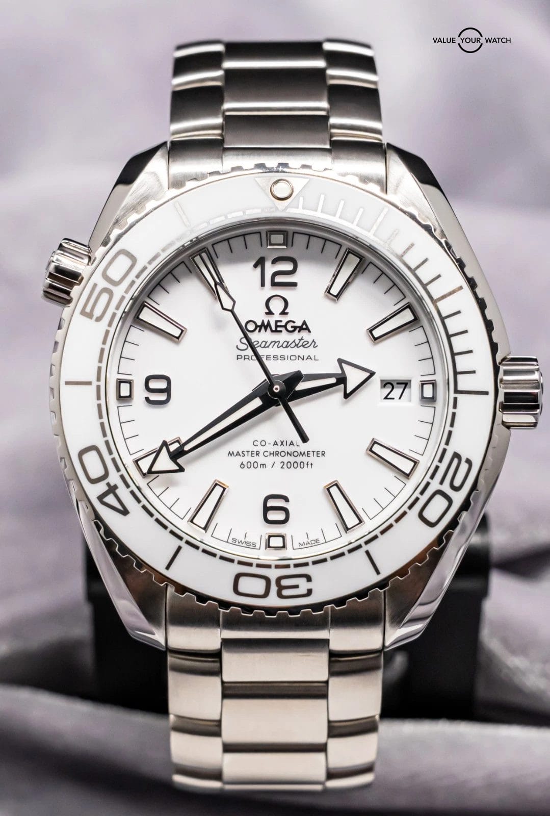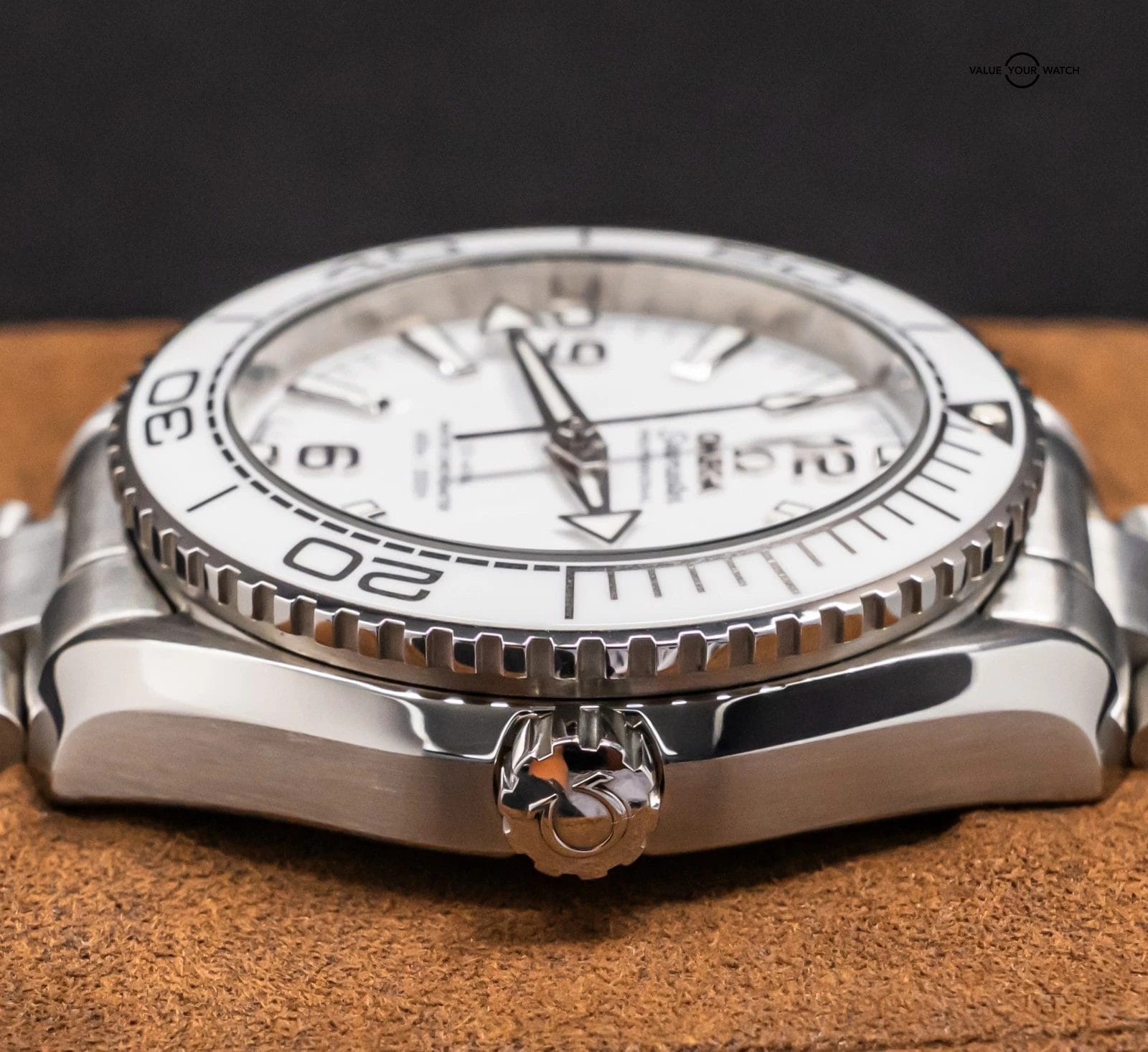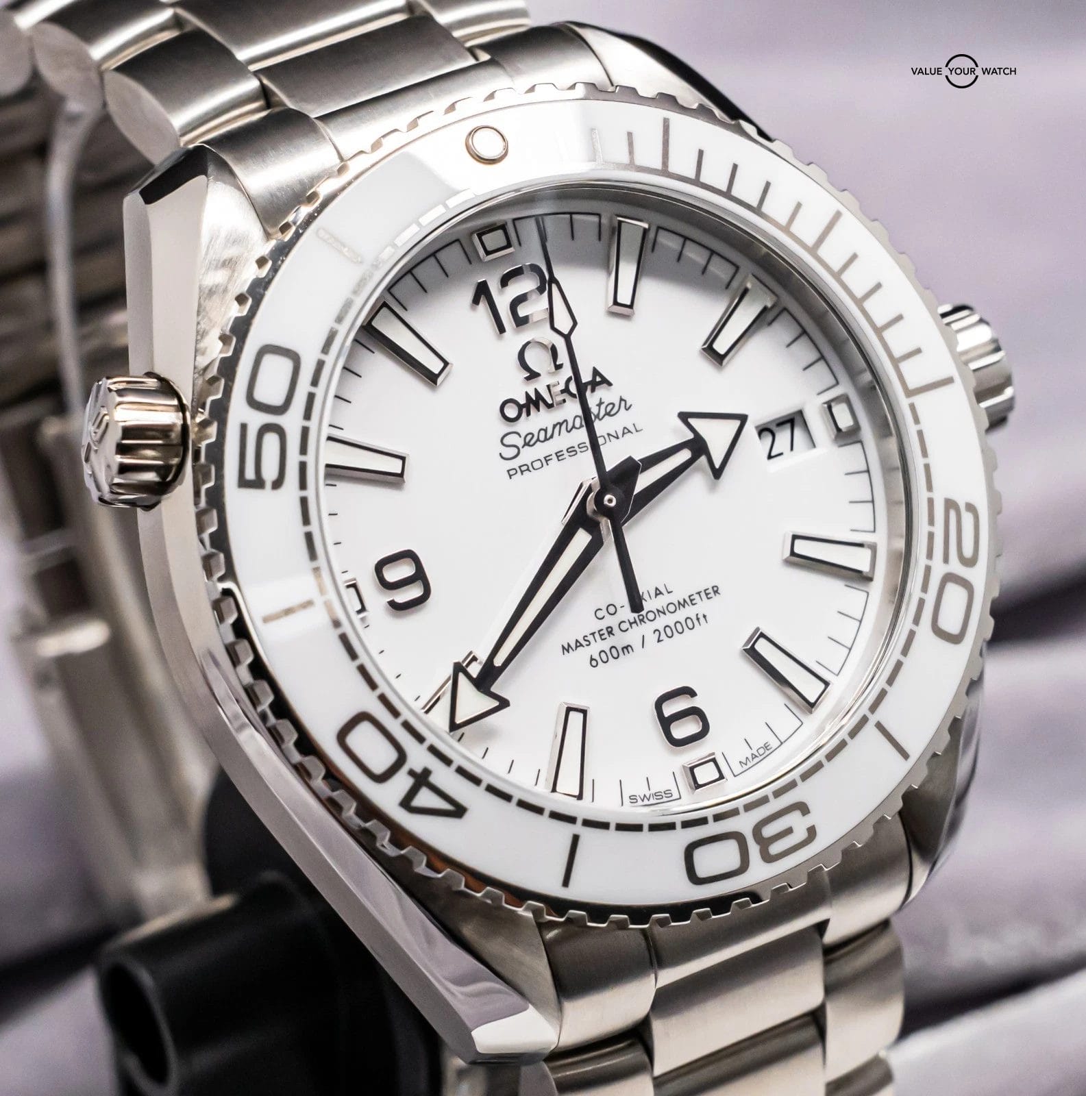 STUNNING Omega Seamaster Planet Ocean 600M in 39.5 mm RARE White! Powered by the Master Co-Axial 8800 and is KILLER White Ceramic Bezel combined with the White Dial, Bracelet, and Stainless Steel Case. The watch comes with Omega boxes and papers including the international warranty card, master chronometer card, and the pictogram card. Purchased from an Omega Authorized Dealer in December 2020. Super desirable Omega, perfect for everyday wear. Can easily be dressed up or down with the white color combination and steel case!