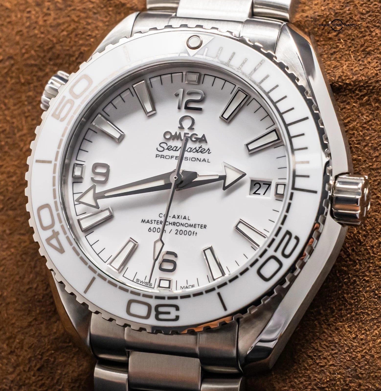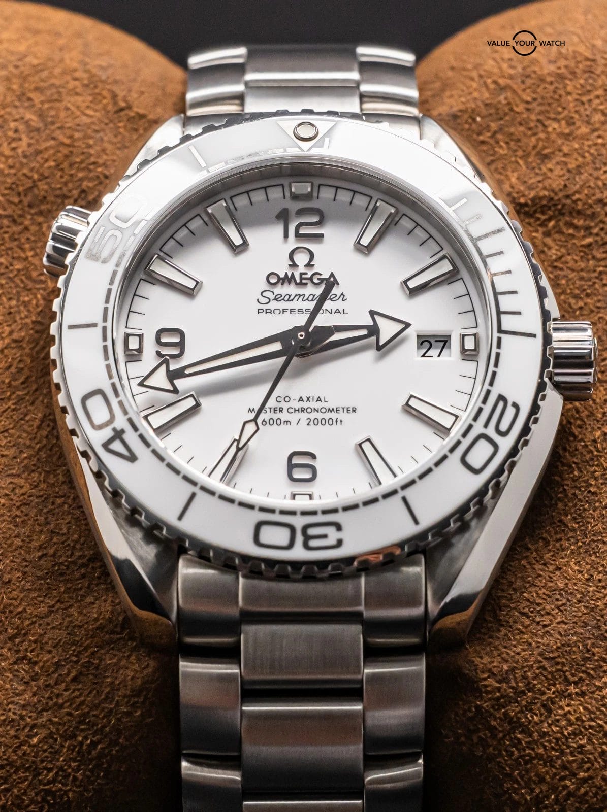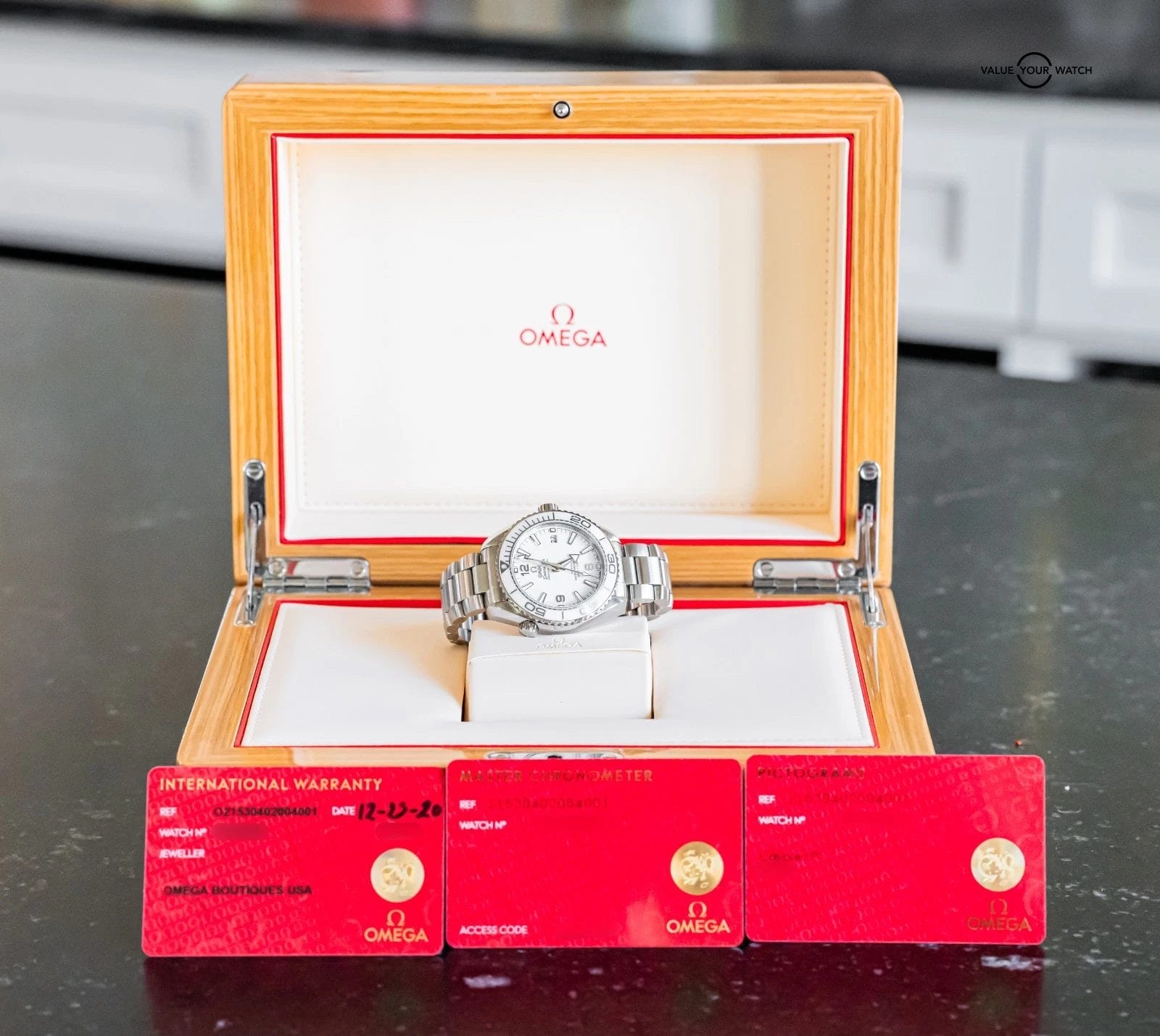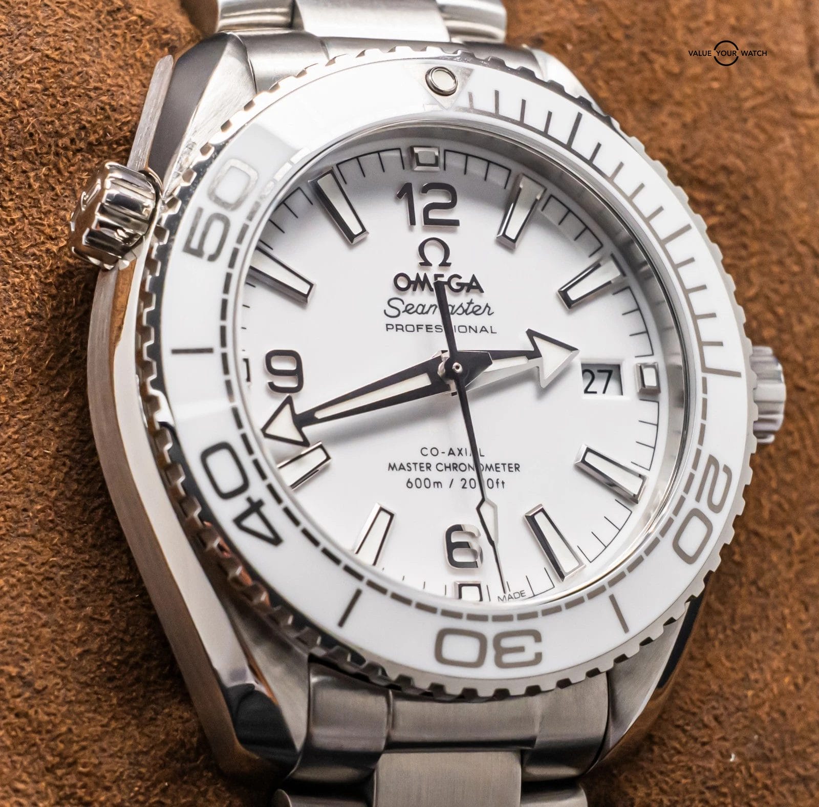 STUNNING Omega Seamaster Planet Ocean 600M in 39.5 mm RARE White! Powered by the Master Co-Axial 8800 and is KILLER White Ceramic Bezel combined with the White Dial, Bracelet, and Stainless Steel Case. The watch comes with Omega boxes and papers including the international warranty card, master chronometer card, and the pictogram card. Purchased from an Omega Authorized Dealer in December 2020. Super desirable Omega, perfect for everyday wear. Can easily be dressed up or down with the white color combination and steel case!