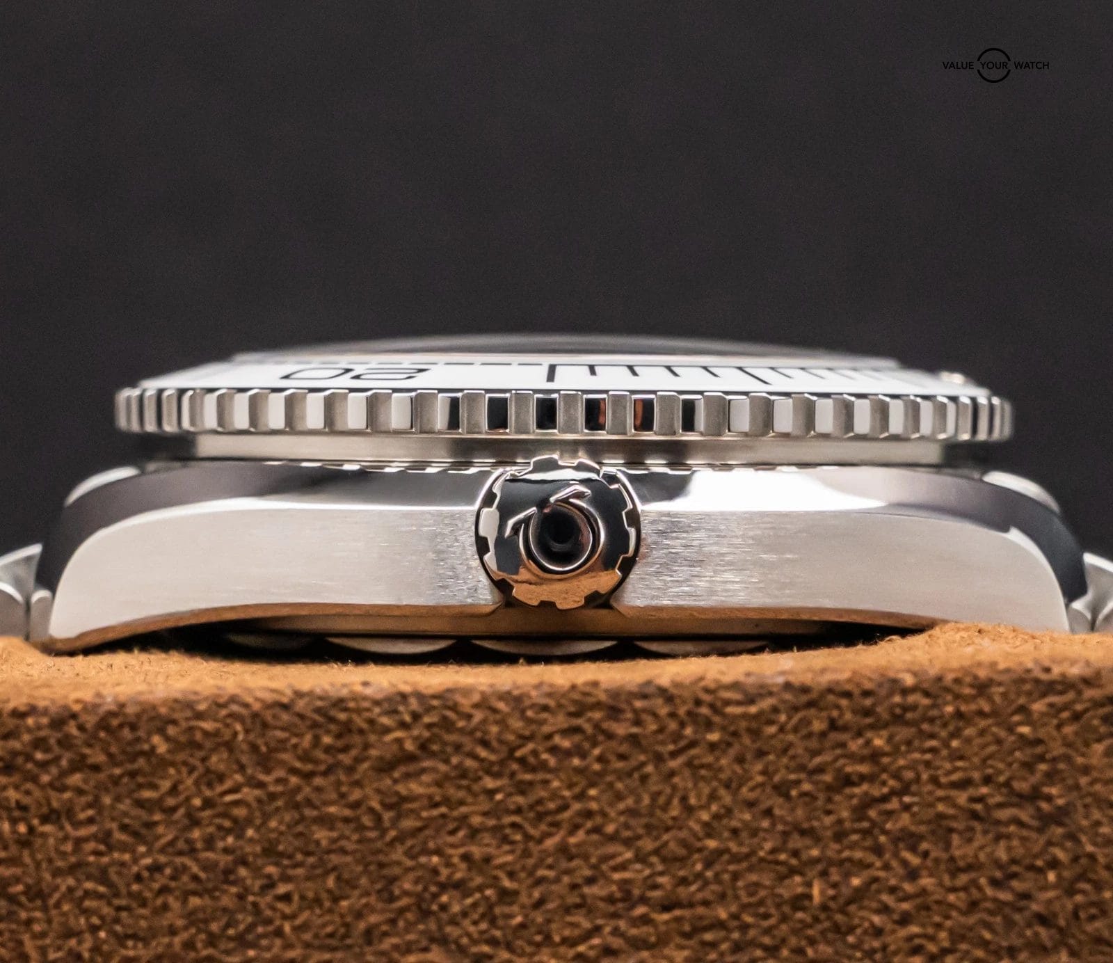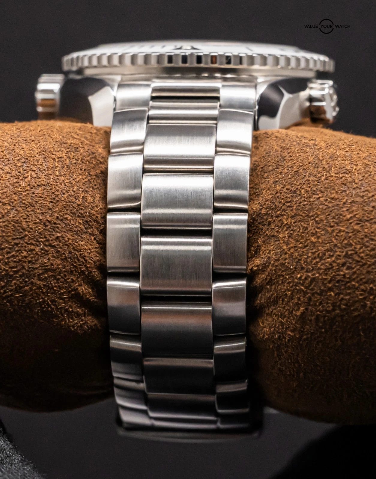 Do not hesitate to contact me with any questions. I sell over 700 watches per year, have fantastic reviews online, and hundreds of references; I seek a very simple and pleasant buying experience for my clients through fostering relationships in the watch community. The serials have been blurred for privacy. The bracelet can accommodate a 6.75 inch wrist at maximum without additional links.