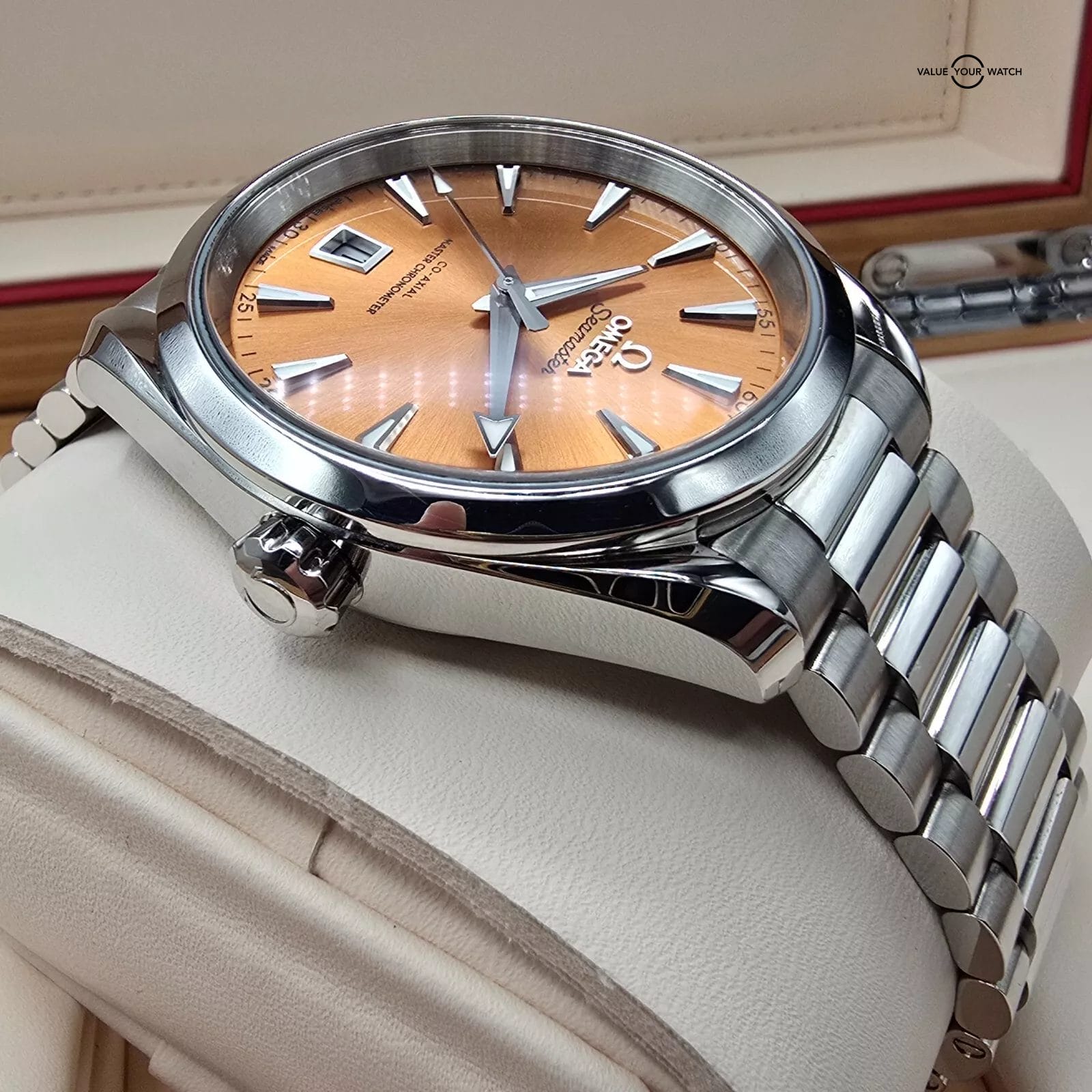For sale here is a fantastic example of a rare “Saffron Shades” Omega Seamaster AT. Cased in stainless steel at 38mm, and on a full steel bracelet. Ref. 220.10.38.20.12.001