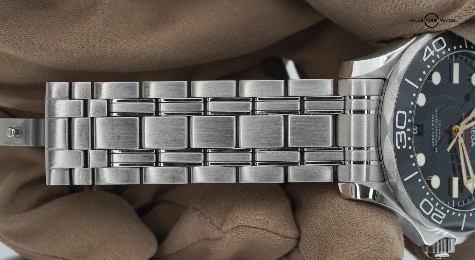 This beautiful timepiece comes with the outer black box, inner LE Bond Box, travel roll, hangtag, manual, LE Certificate, strap tool, cloth, rubber and stainless bracelet, and all 3 cards. The watch is in excellent pre-owned condition with typical cosmetic wear on the case and bracelet. This was a Limited-Edition run of 7,007 units. Everything Is functioning as it should. Serial numbers and names are blurred in photos only for privacy reasons.
