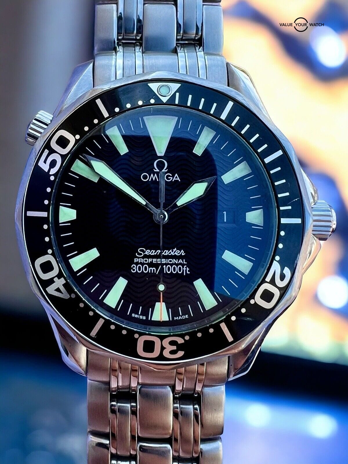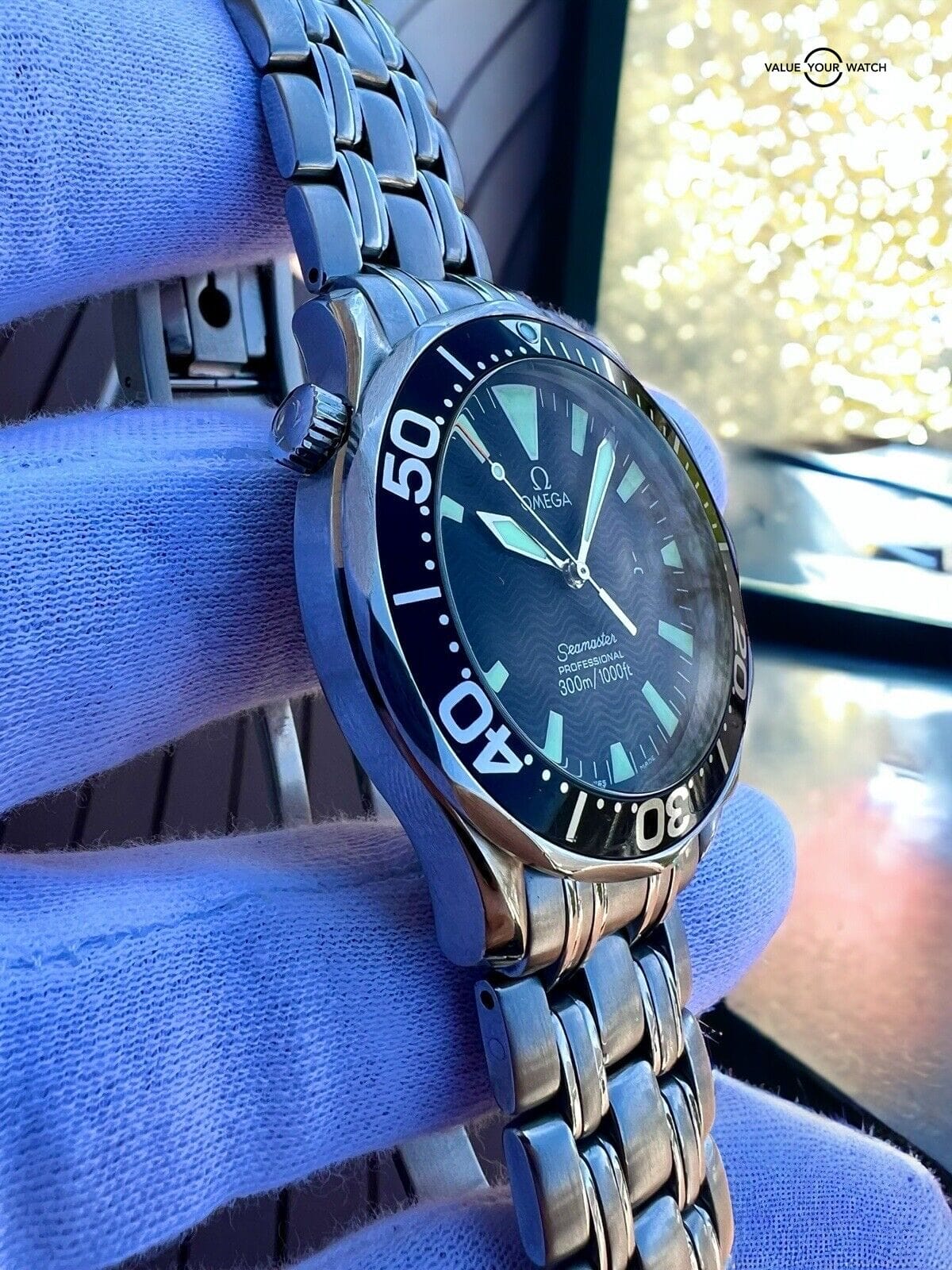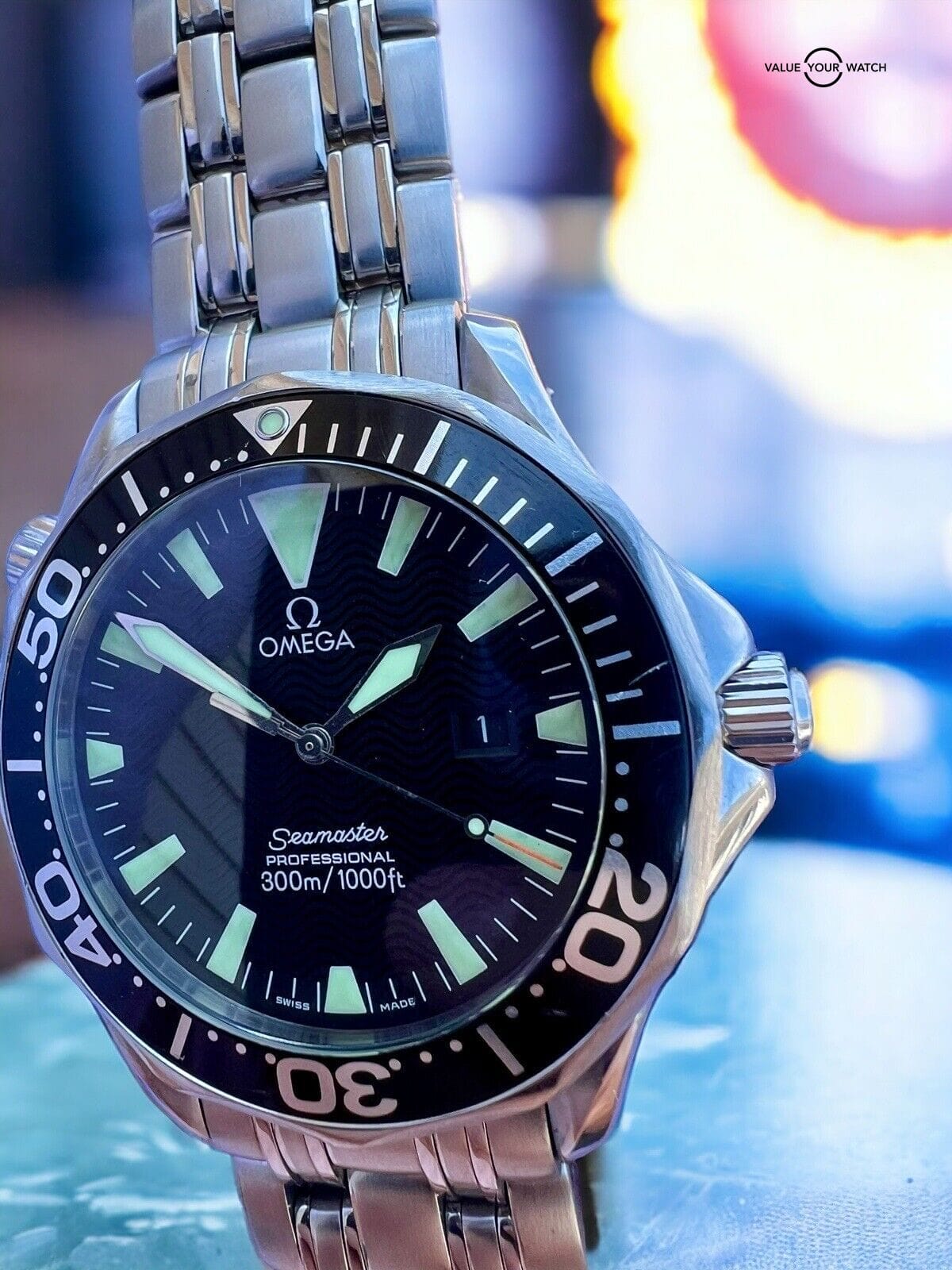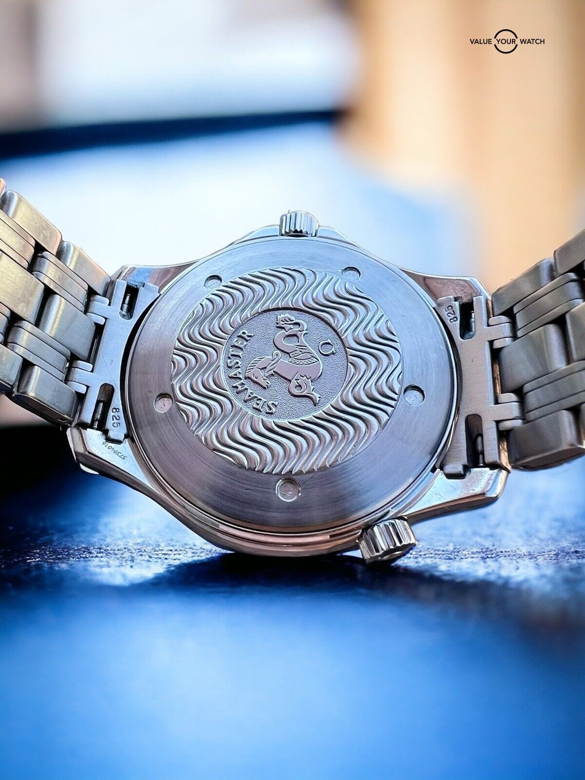 The Omega Seamaster Diver 300M features a sturdy 41mm steel case and a matching steel bezel with a 60-minute scale. It boasts a black dial and displays a date window at 3 o’clock, with luminescent hands, hours markers, and an anti‑reflective, scratch‑resistant sapphire crystal. It is an ideal addition to a diver’s toolset, and its design makes it perfect for an elegant wardrobe.