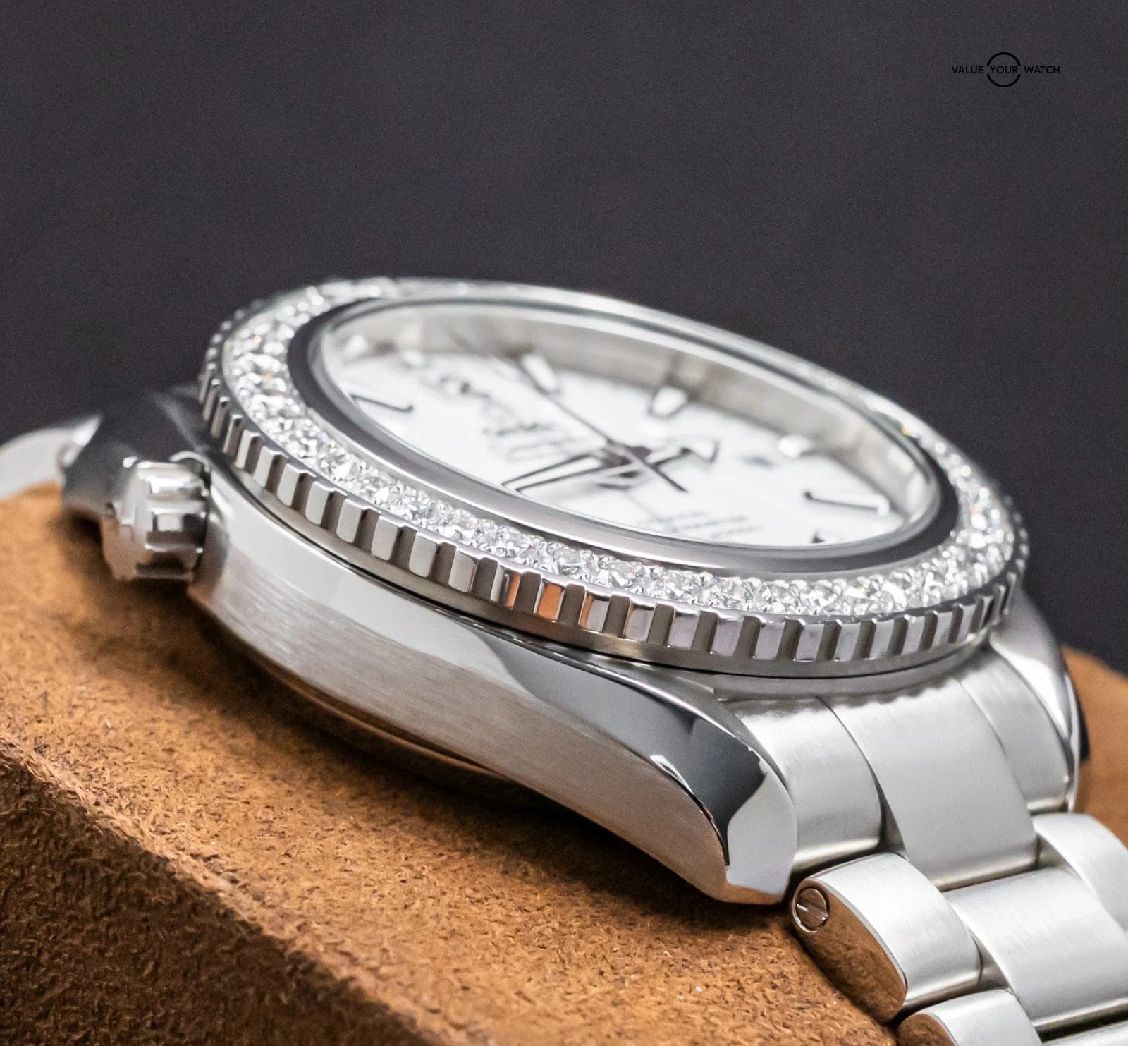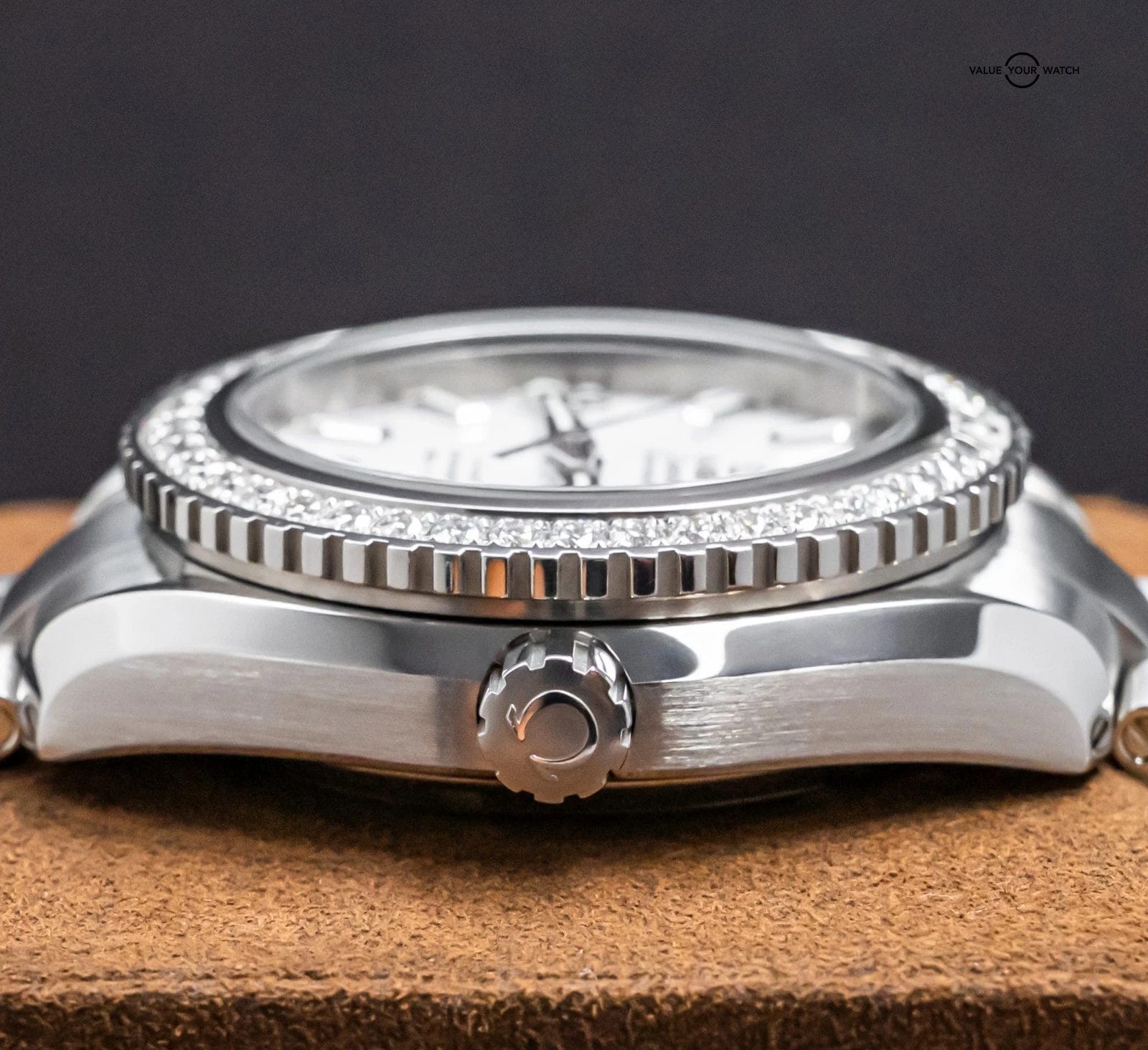 Bezel: Unidirectional Rotating w/FACTORY-Omega-Set Diamonds