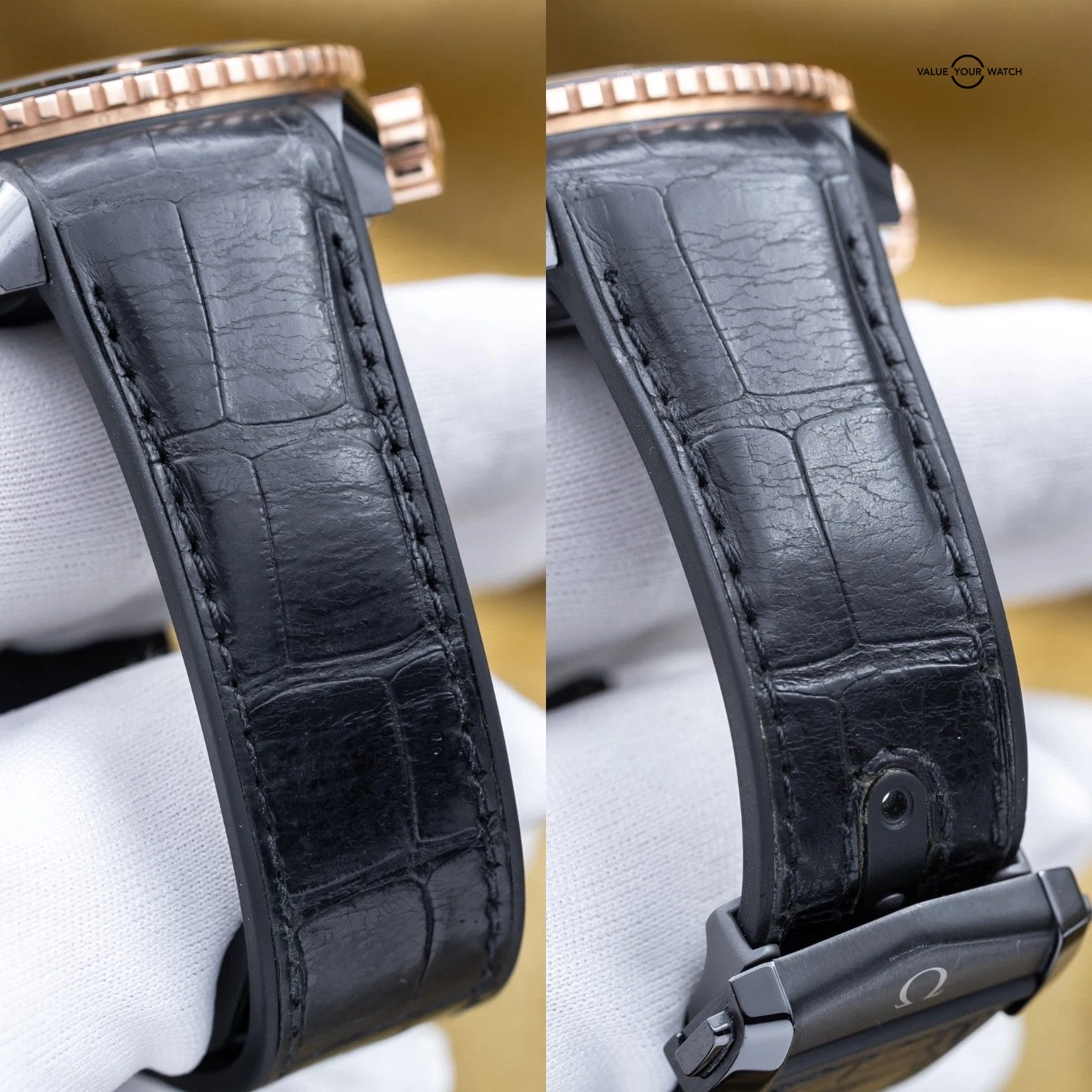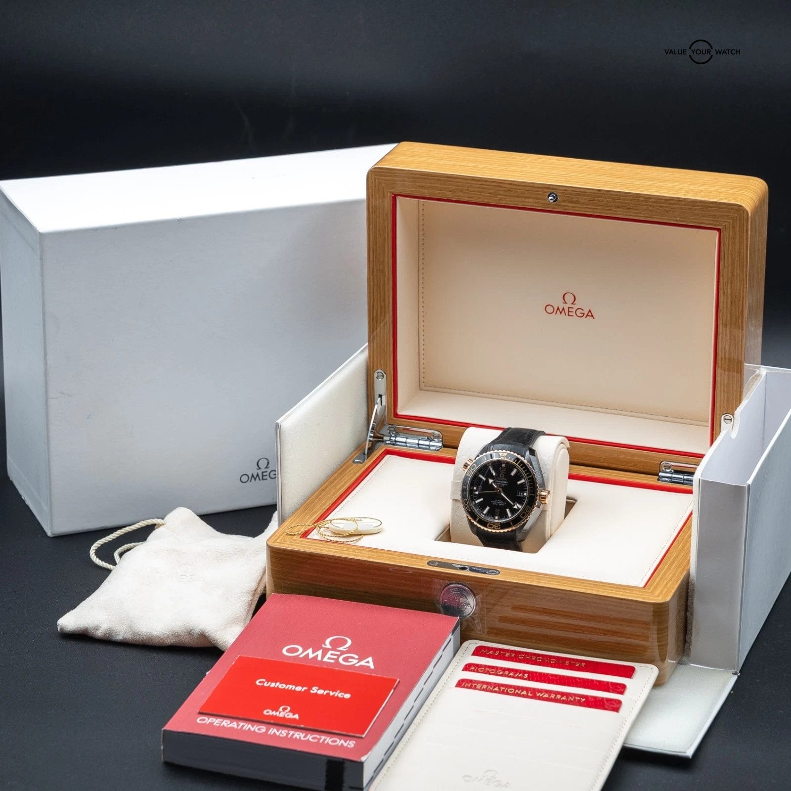 This Omega Seamaster Planet Ocean is a bold and luxurious timepiece that exemplifies Omega’s mastery of dive watch design. Created for adventurers and style-conscious collectors alike, this model seamlessly combines cutting-edge technology with a stunning ceramic case. The black ceramic bezel with 18k Sedna gold and matching black dial give it a sleek, sharp contrast. It’s also built like a tank, water-resistant up to 600 meters, and even comes with a helium escape valve! This piece is a stunning representation of Omega’s commitment to precision, durability, and sophisticated design. Come grab it while you can!