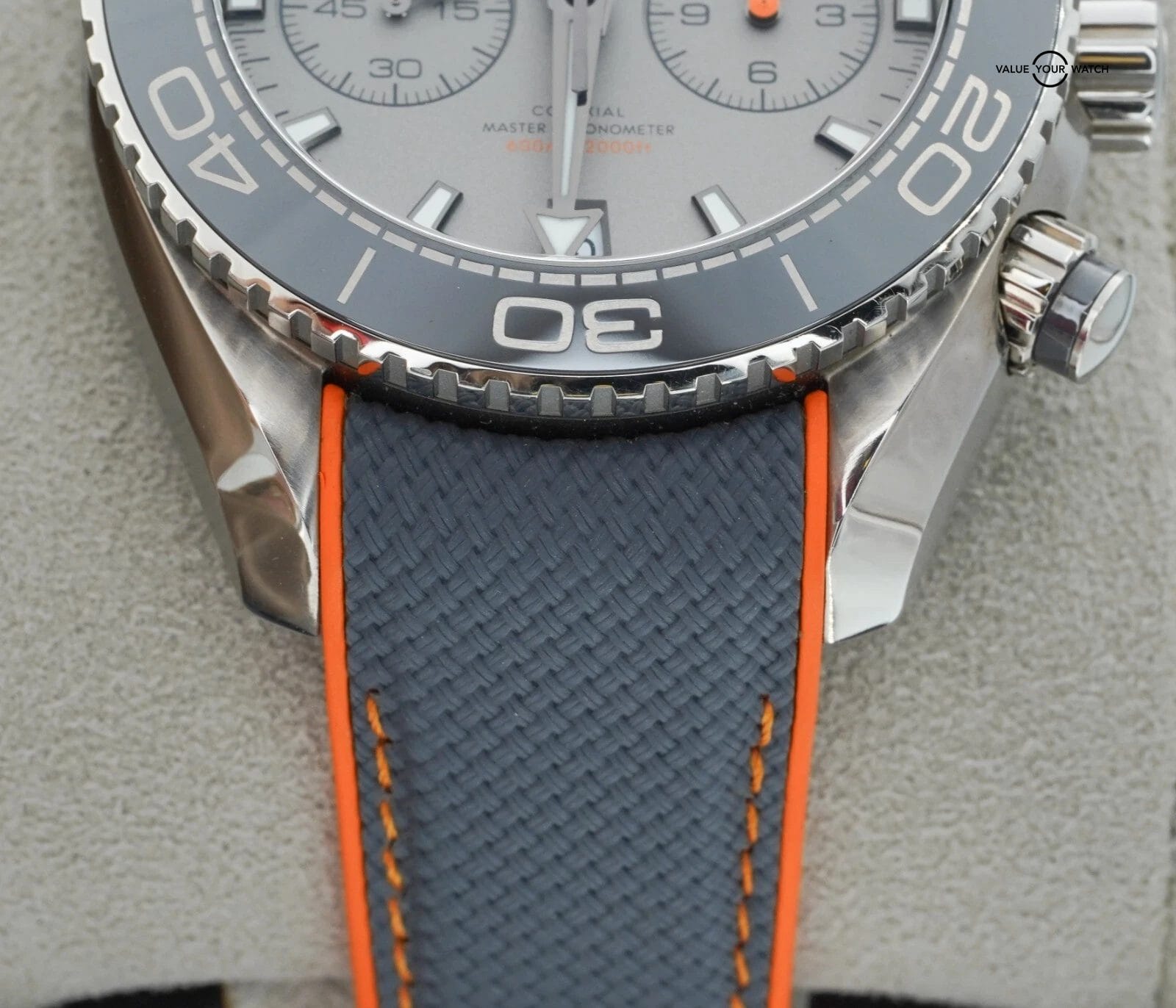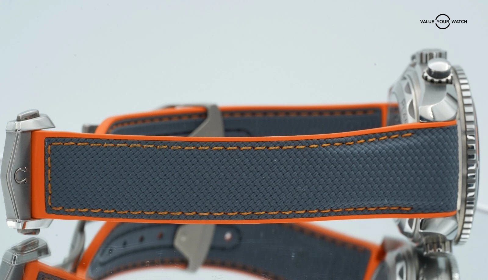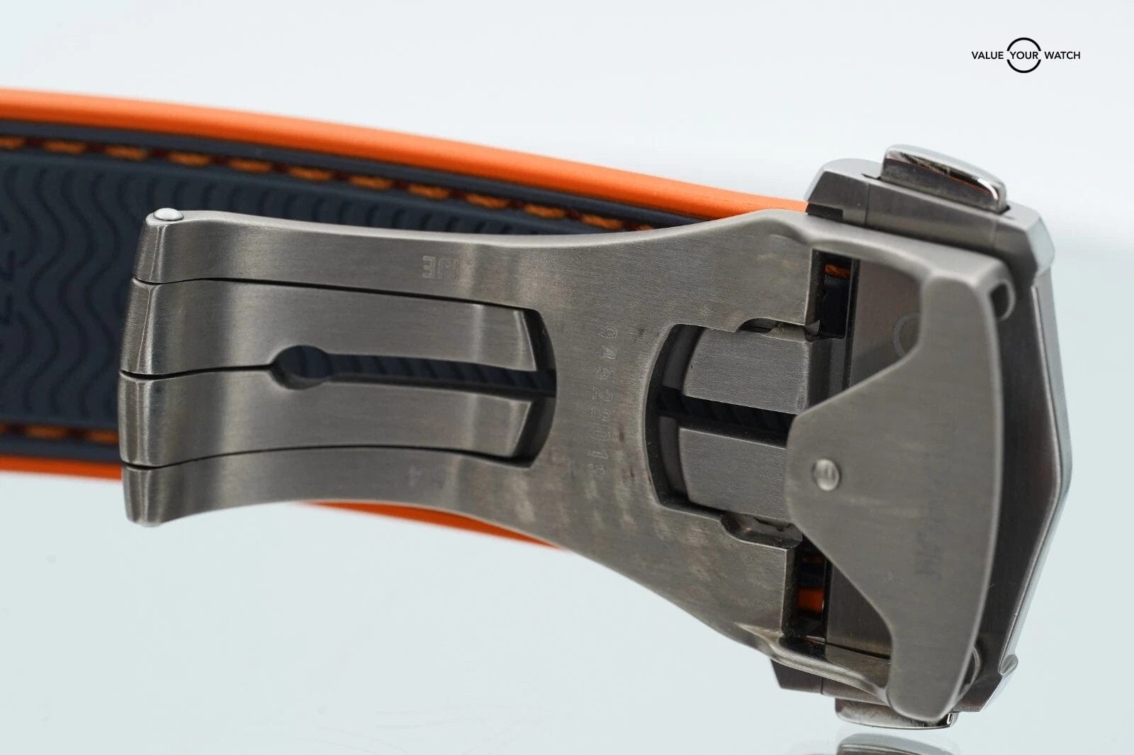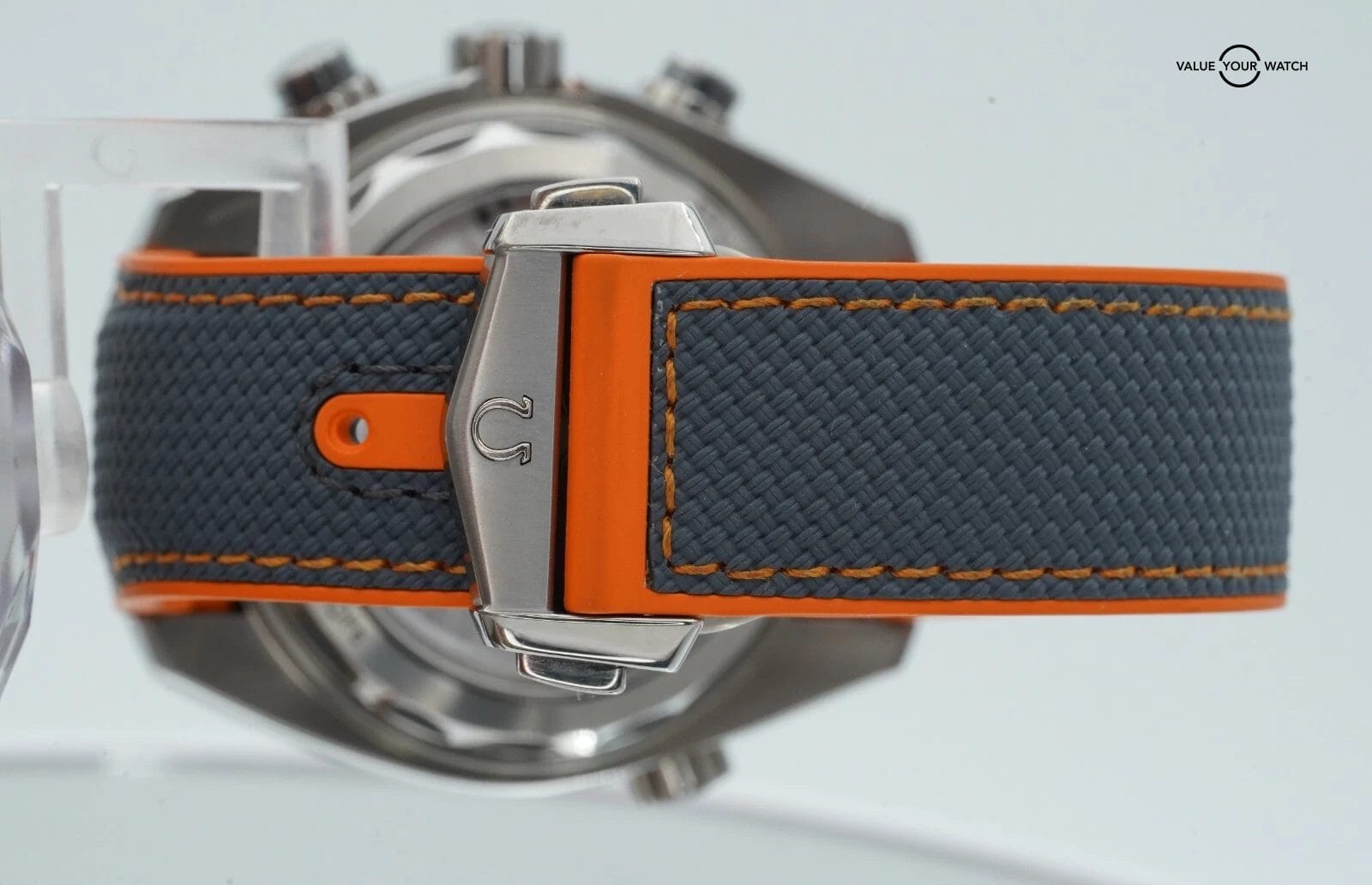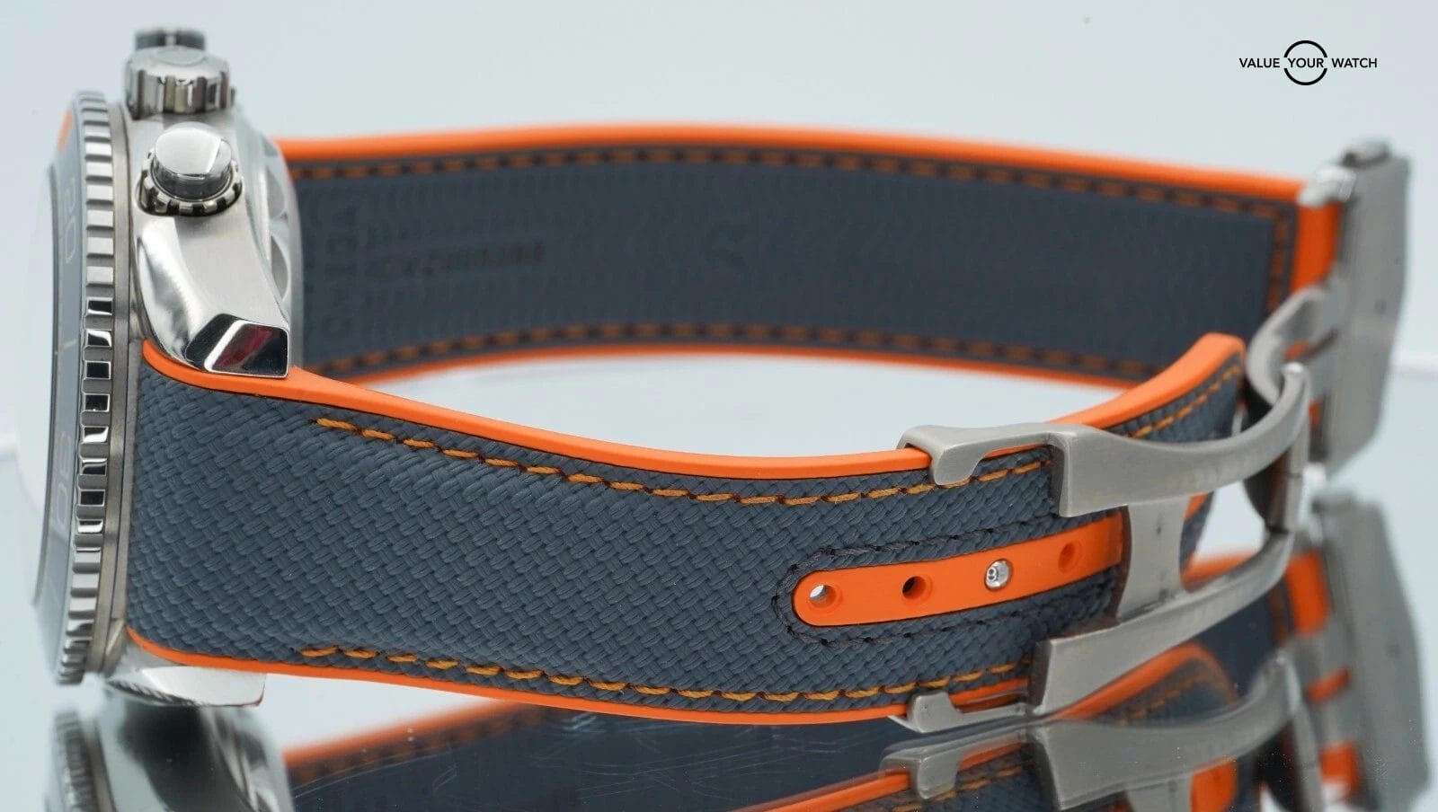 Band: Grey-Orange rubber with Foldover Clasp