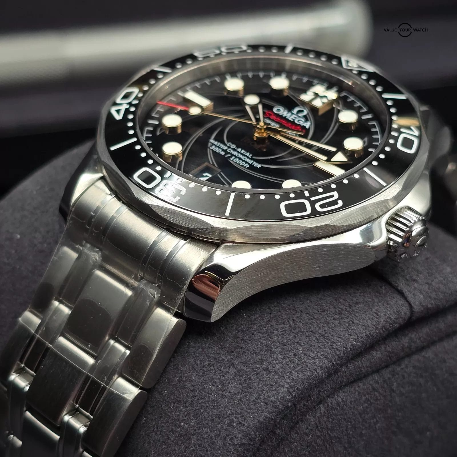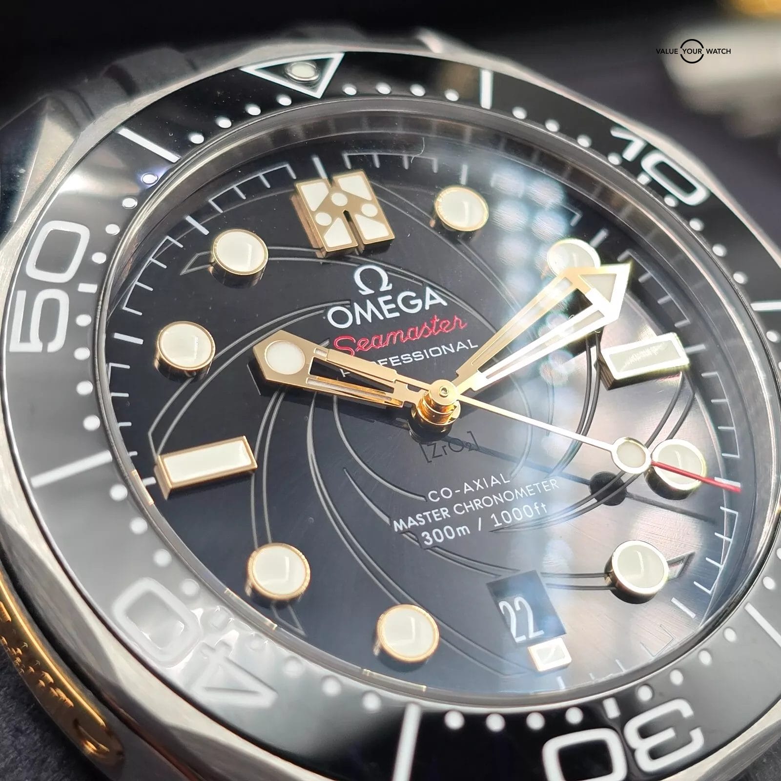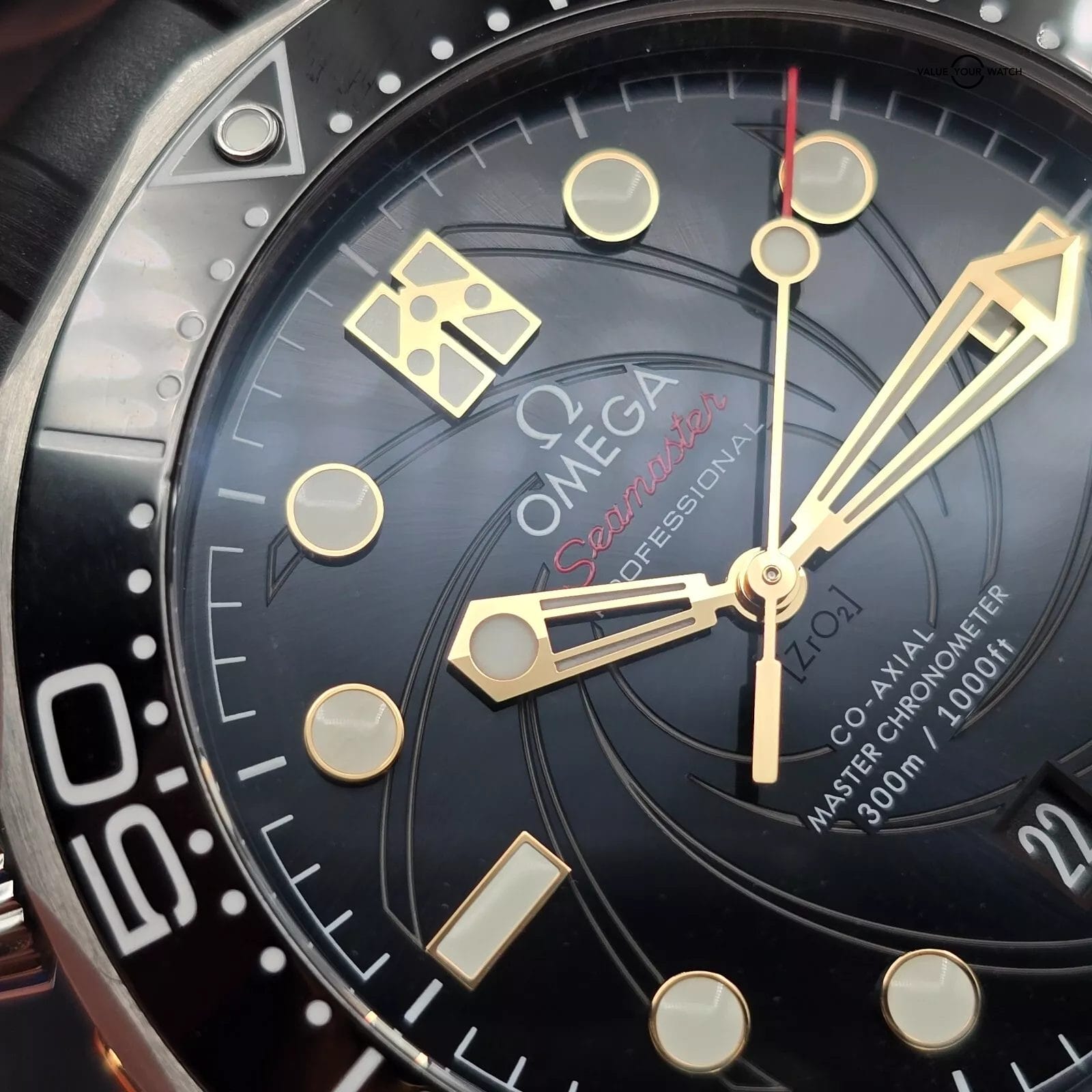 Up for sale here is my favorite of the James Bond Omega’s. There are a lot of 007 watches, but this one with the barrel rifling on the dial is a very cool addition to the lineup. Ref. 210.22.42.20.01.004