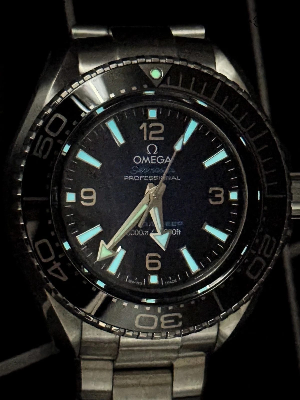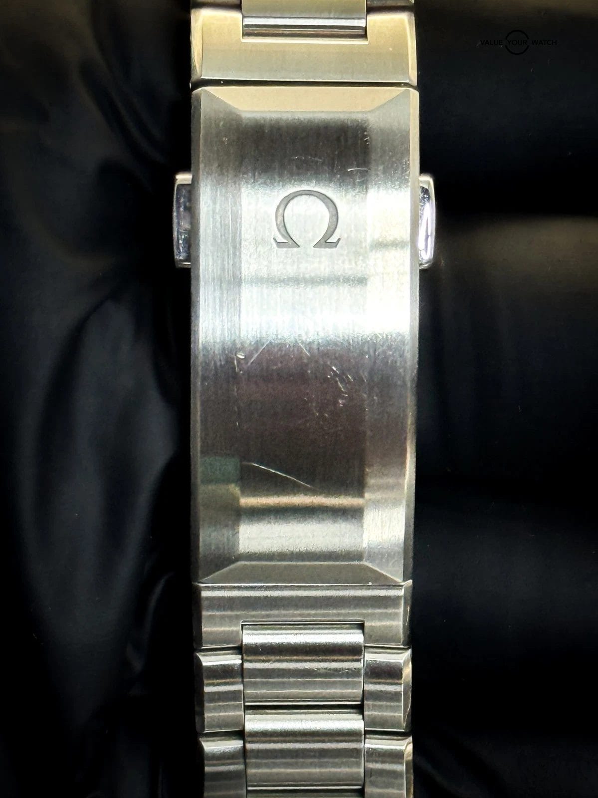 This example was purchased in 2023 and remains in like-new condition overall with light scratches on the clasp and bracelet from careful wear. It’s a full set: original Omega presentation box, warranty card, manuals, stainless steel bracelet and two extra straps for added versatility.