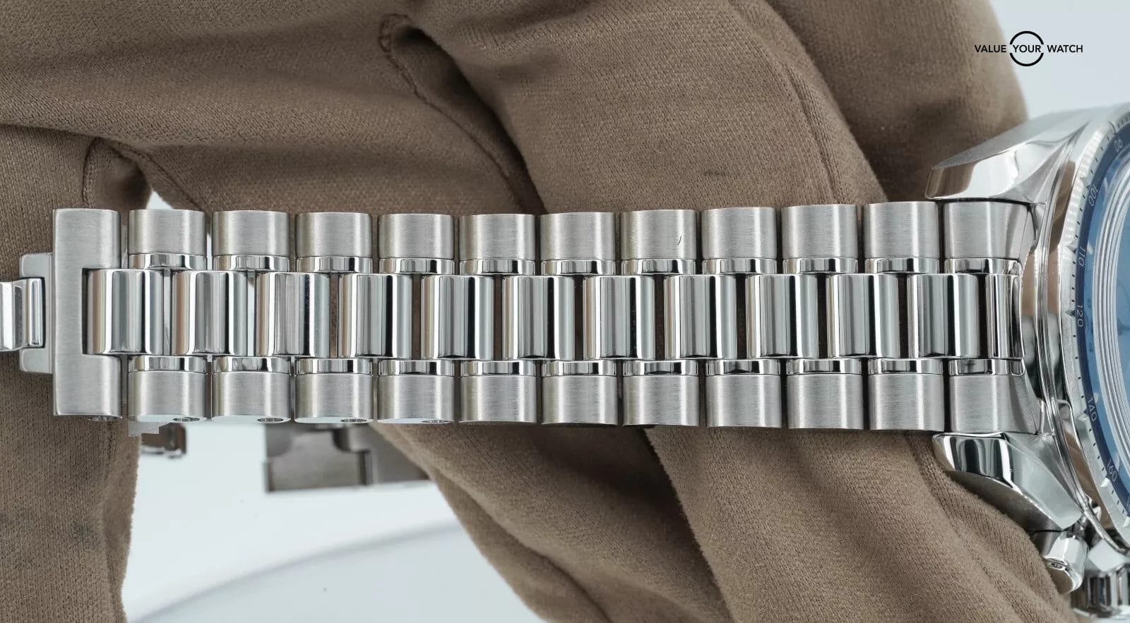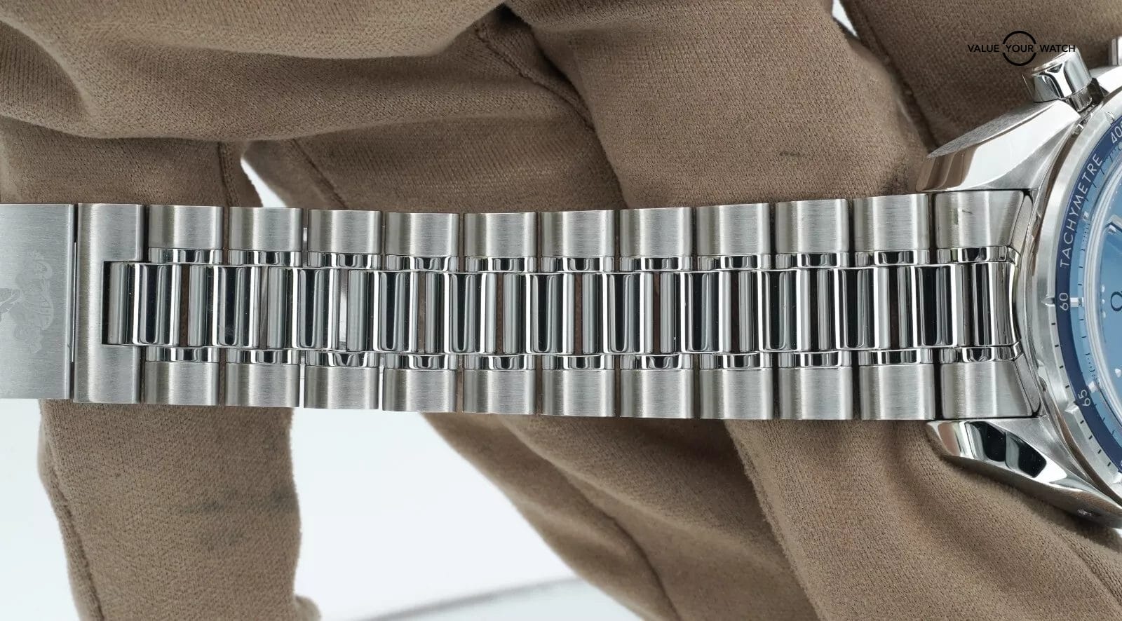 Bezel: Fixed Stainless Steel with Blue Tachymeter Insert