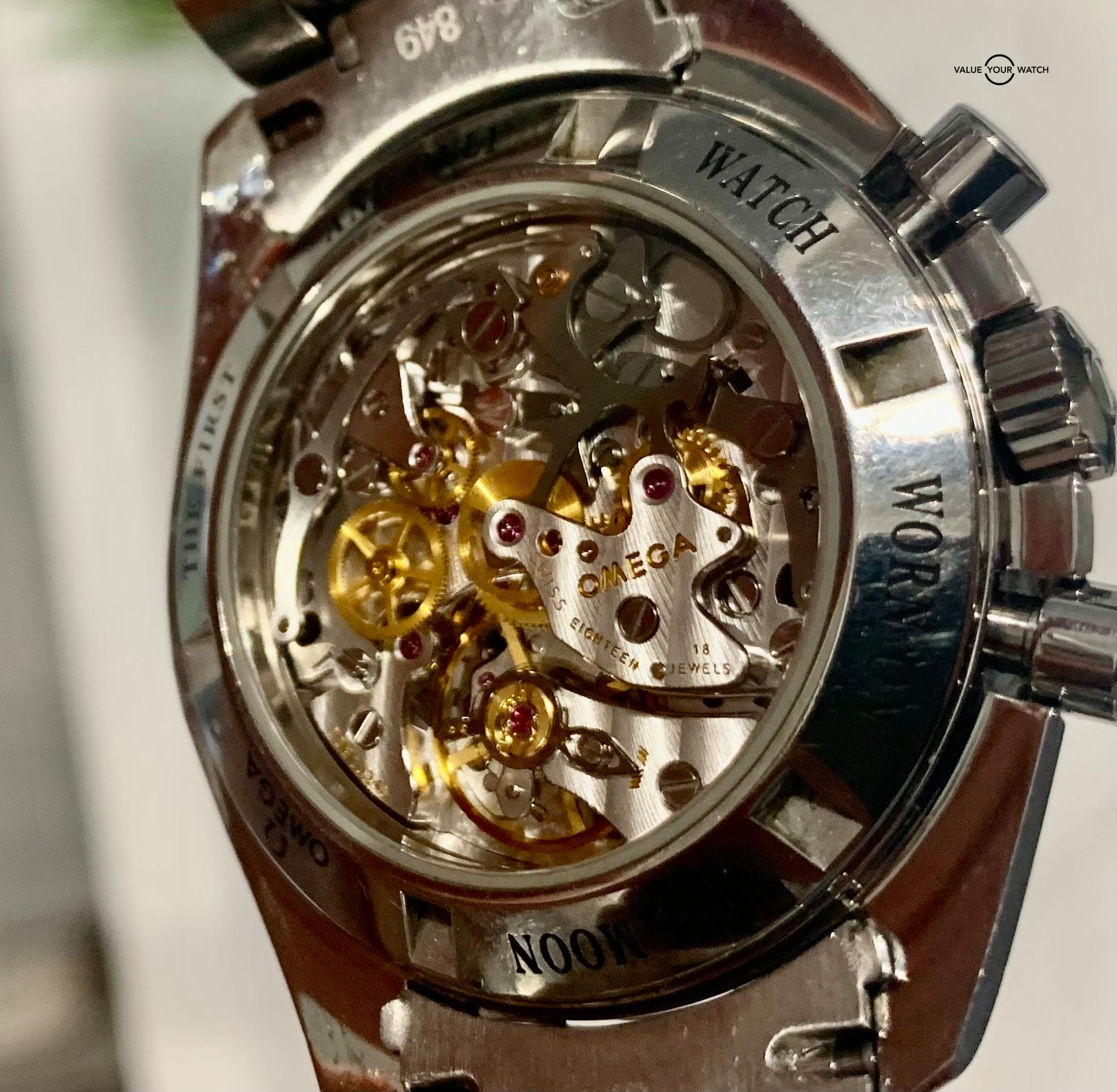 However this particular model is extra special!! You have the original Moon watch and then you have this model. The “Saphire Sandwich”. They took everything we love about the original Speedy and made it better. How do you ask? Well let me tell you, they not only included the perfect bubble of a sapphire crystal on the dial of the watch, but they managed to enclose the back exhibition case with another beautiful piece of sapphire crystal. Hence where the term “Saphire Sandwich” comes from.
