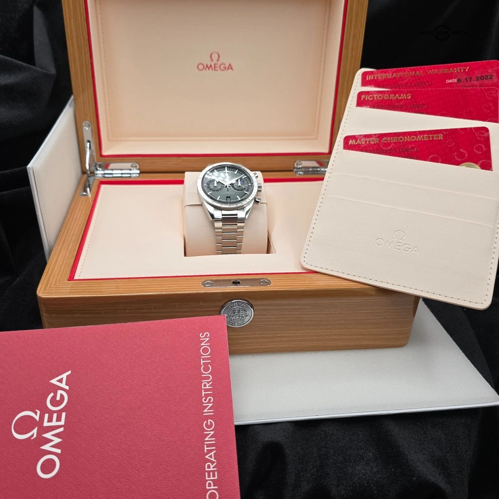 Comes as a full set with both inner and outer box and all 3 cards. The warranty card is dated in 2022, so it’s still under factory warranty from Omega!