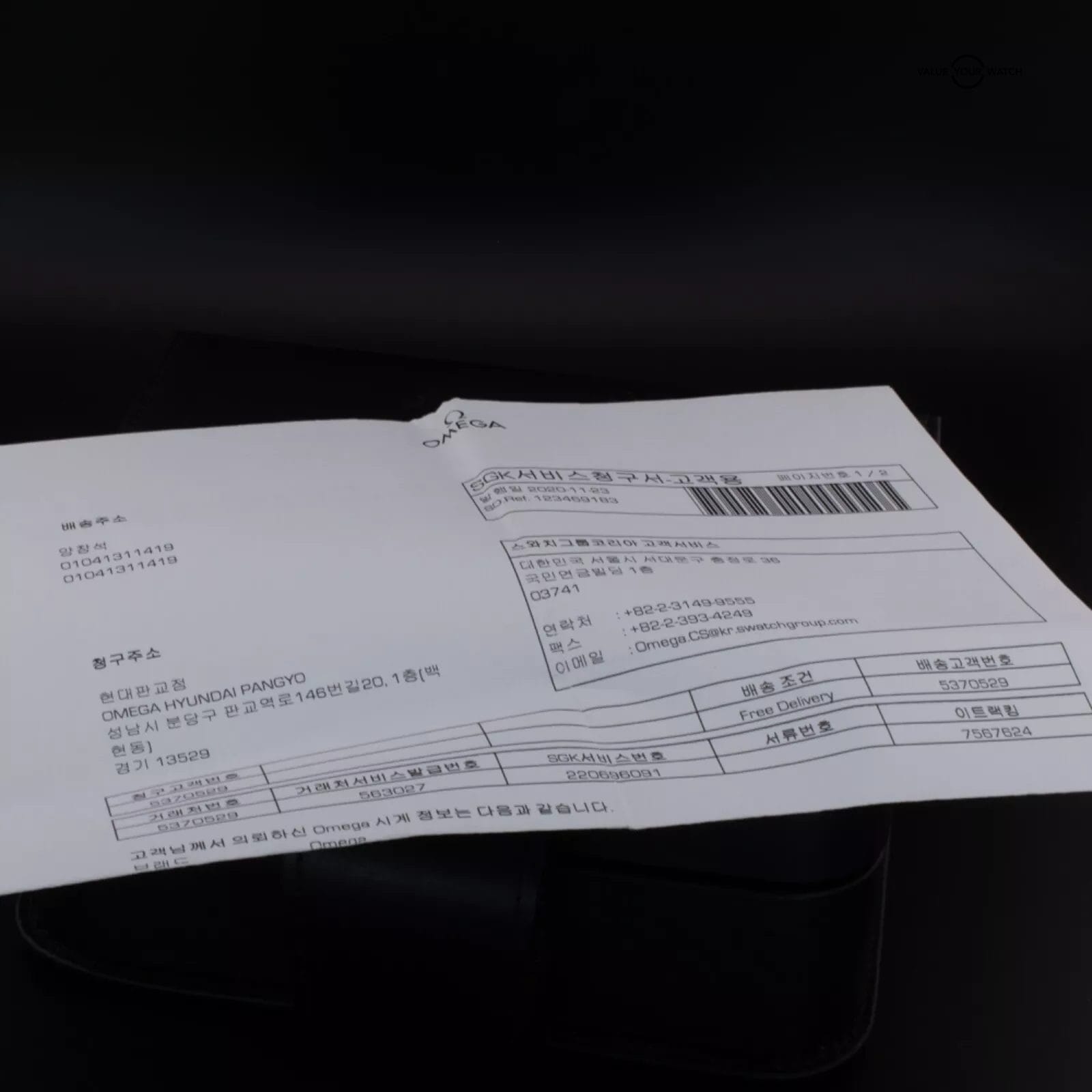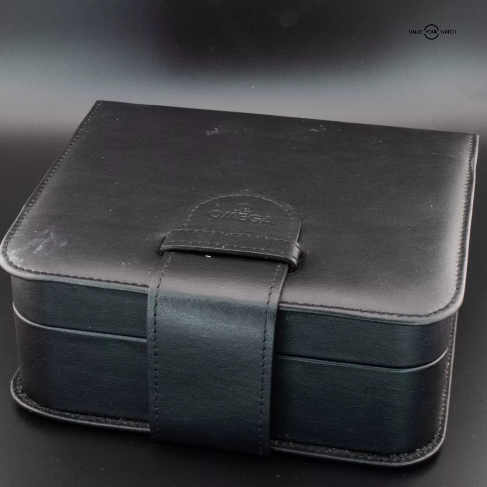 Bezel: Black bezel with tachymetric scale, encapsulated by a hesalite crystal with the famous central Omega logo.