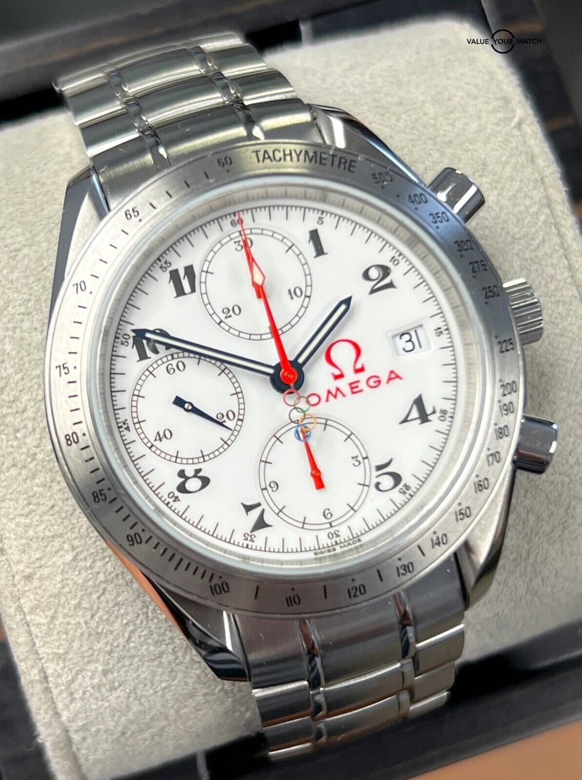 If you plan to sell your Omega Speedmaster Date Olympic Games, maintain its condition by storing it in a controlled environment to prevent excessive wear or damage. Retain all original documentation, including the warranty card, box, and papers, as they enhance the watch’s value and authenticity.