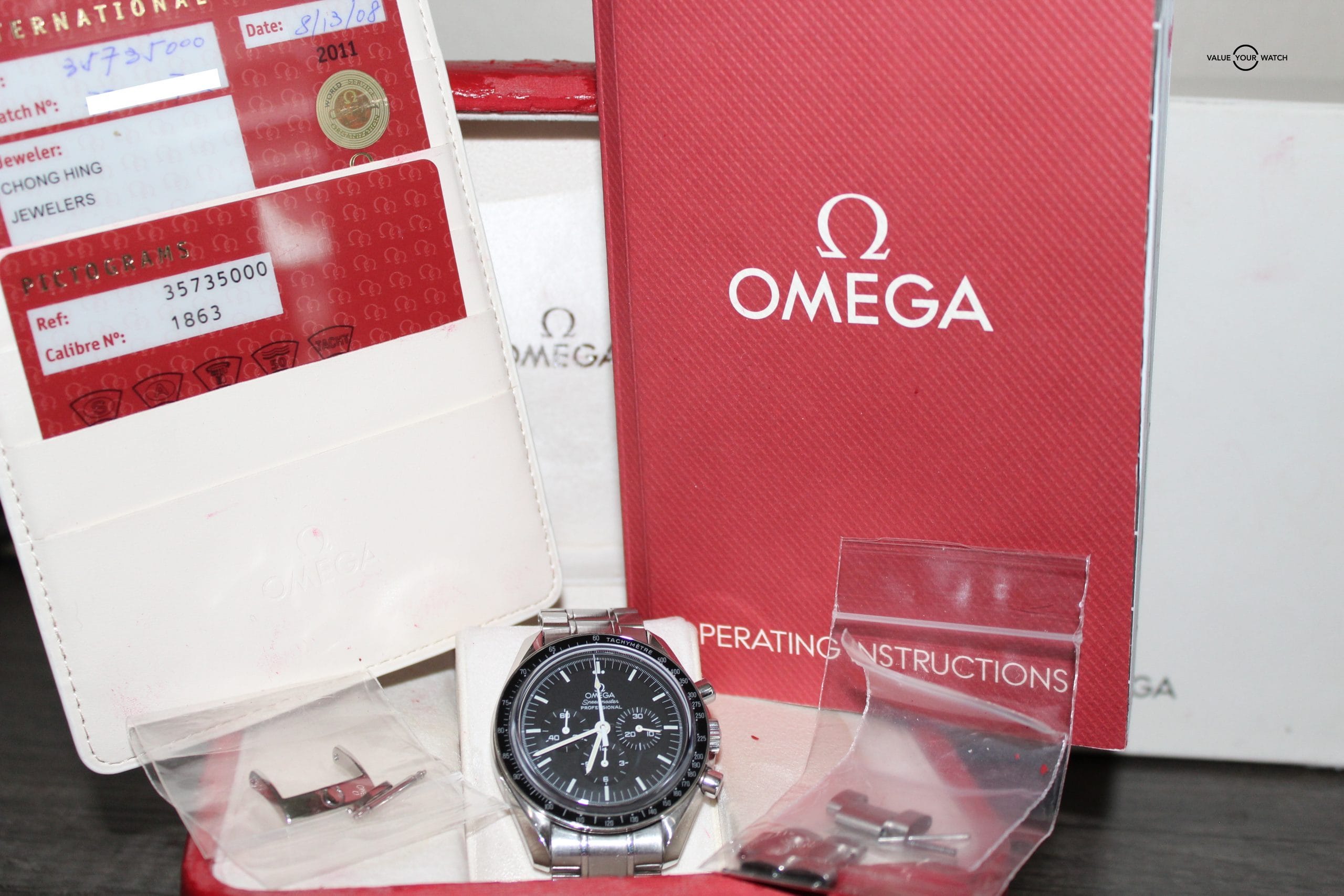 Omega Speedmaster Moonwatch Chronograph 42MM 3573.50.00 Description: Omega Speedmaster Professional Moonwatch (2008) features its black dial and bezel, with its tachymetric scale mounted onto the case. This watch was produced from 2002-2015 and is known as Omega’s “Sapphire Sandwich”. Making this watch special is its mechanical calibre 1863 and the visible movements seen through the caseback. This timepiece is a complete set with both original Omega boxes, Warranty and Pictogram Card, Operating Manual, and extra Omega Clasp’s and Pins. Pre-owned and has signs of minor wear on the clap and bracelet. The bezel of the watch has a small little scratch on the edge near 12 o clock and the Sapphire Crystal is in excellent condition. The omega showcase box has been used throughly, but that is mostly due to how the box ages. Please reach out to us if you would like to take a closer look. Customer service is one of our highest priorities and would like to give our customers the best services we possibly can. Doing everything we can to ensure a smooth transaction and in the hope of assisting recurring customers. We have priced our timepieces according to the market and taking conditions of the watch and its accessories into consideration with our pricing. If you would like to send an offer our way, we would be more than happy to help you out to the best of our abilities. Hope we get the chance to work with you! Condition: Very Good, Pre-Owned Returns: We do not accept returns. We make sure all our products are tested, functional, and all information is transparent in our listings. Thank you for taking your time to take an interest in our listing! Instagram: @CALUXURIES