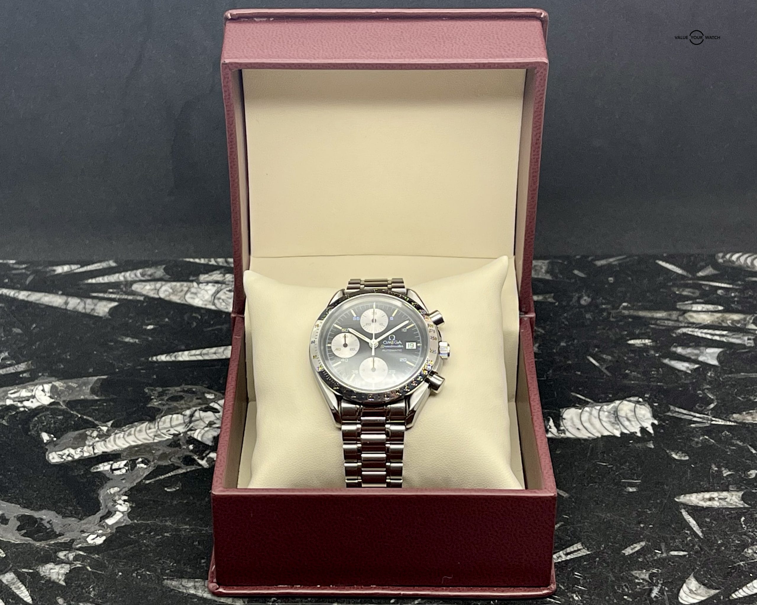 Up for sale is my classic, freshly serviced Speedmaster Date that needs no introduction. With all the usability of the moonwatch in a smaller, sleeker package, plus the added functionality for a date window, this’d make a phenomenal day to day timepiece. The case, bezel, buckle, and bracelet are in fantastic shape for its age showing only minor scratching, and the crystal is flawless. Get this beautiful pre-owned time piece before it’s gone!
