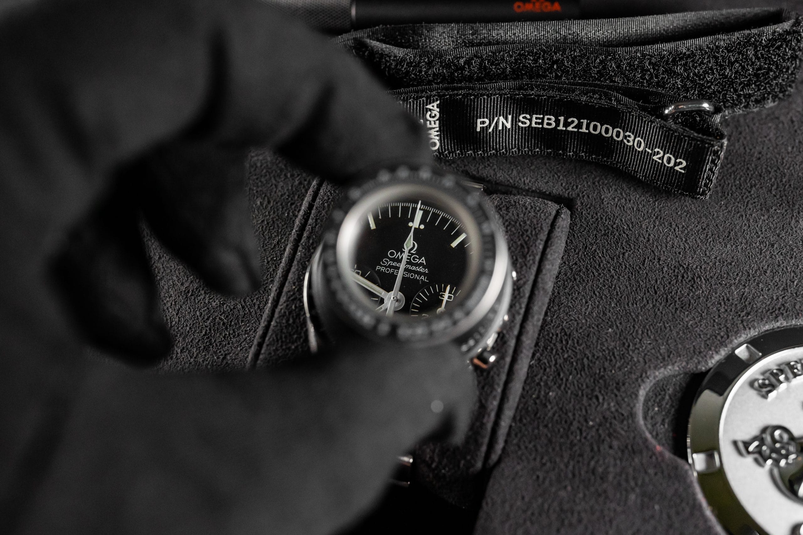 At the heart of this chronograph is OMEGA’s mechanical calibre 1863, a descendent of the legendary manual-winding movement worn on the Moon, visible through the transparent caseback. This timepiece is offered with a special Moonwatch presentation box which contains a “NATO” strap, a strap for astronauts, a tool to change the bracelet and a book highlighting Speedmaster’s adventures.”