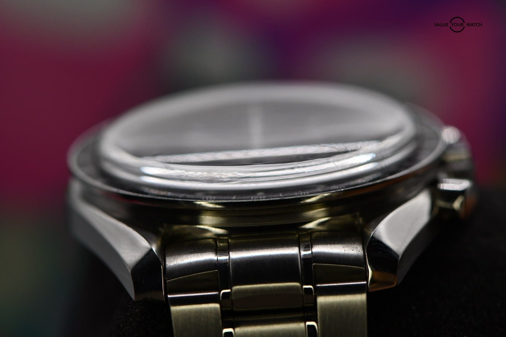This Omega Speedmaster Professional 3572.50.00 is a classic Moonwatch with a unique configuration. It features the traditional Hesalite crystal on the front, paired with a sapphire display caseback—giving you the best of both worlds along with a view of the movement.