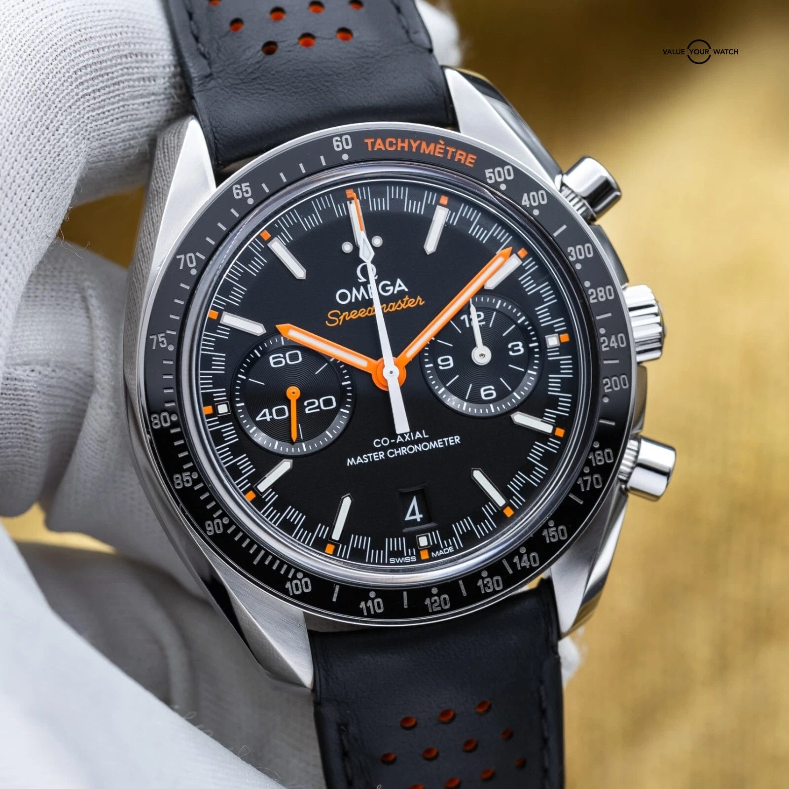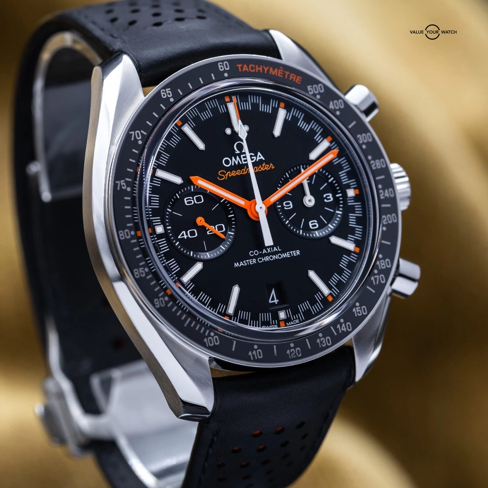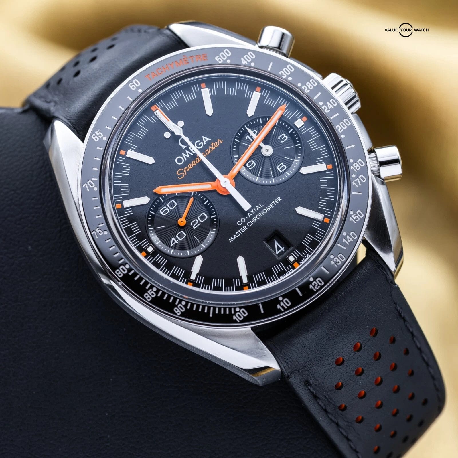 This racing version of the famous Speedmaster, with the popular black dial, racing style minute track and ceramic tachymetre bezel, is one of our favorite Chronographs out there! This watch was designed for automotive and racing enthusiasts, yet still giving some of the feel of the iconic Speedmaster Moonwatch. Very versatile, it can be worn casual or dressed up. This piece also has an open case back to allow you to enjoy the beautiful Omega 9900 master chronometer column wheel chronograph movement with time zone jumping hour hand…the best Omega has to offer today.