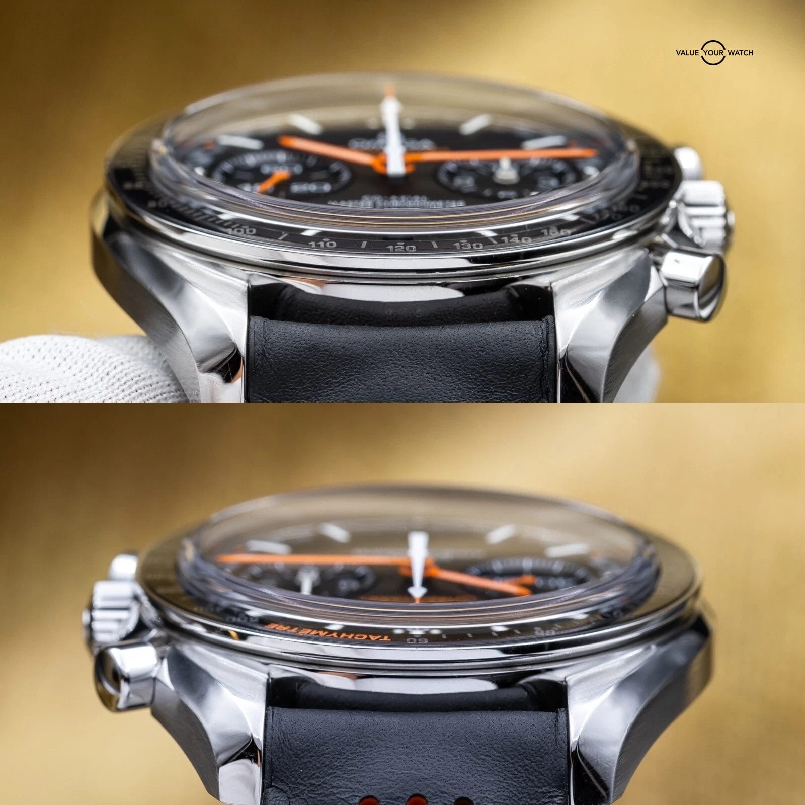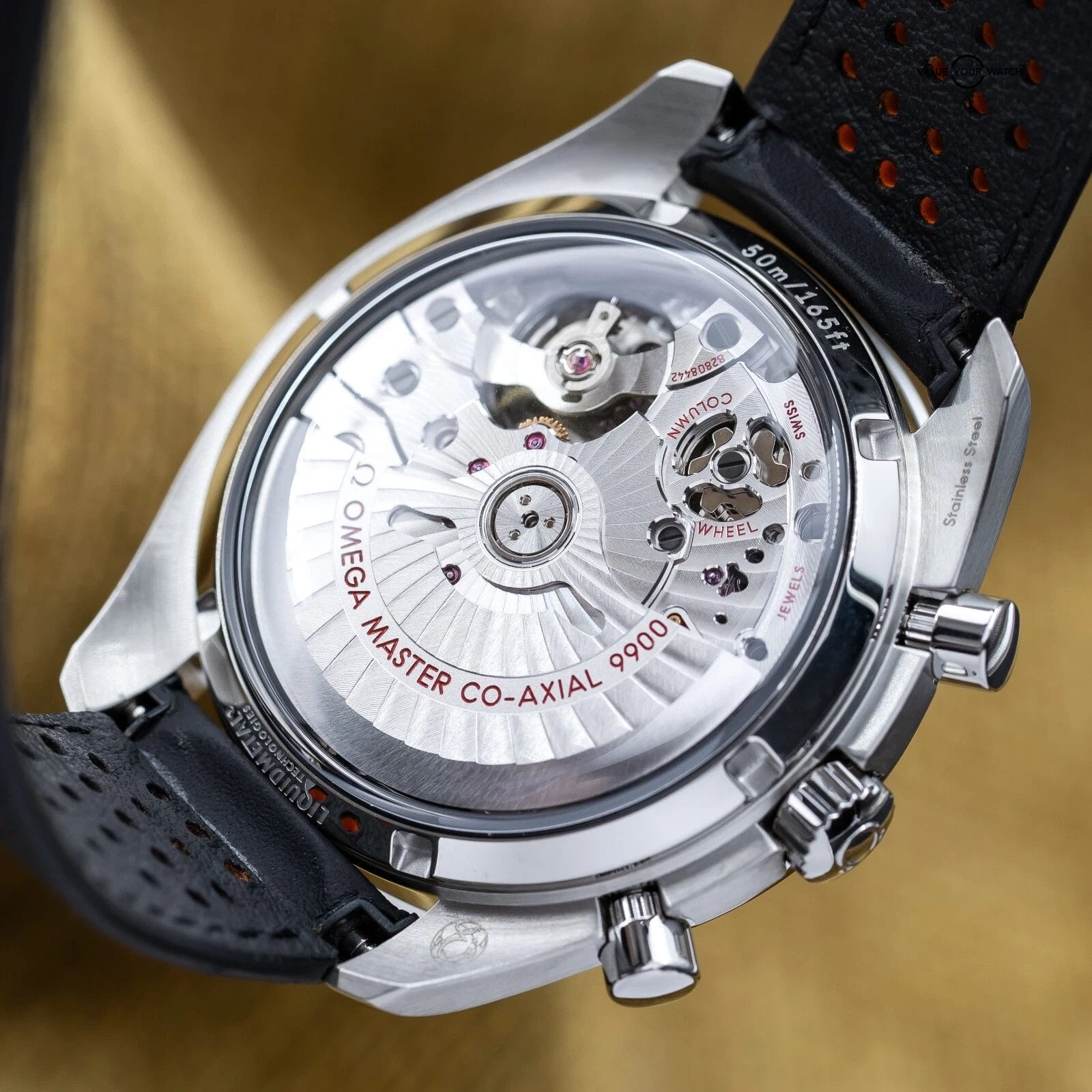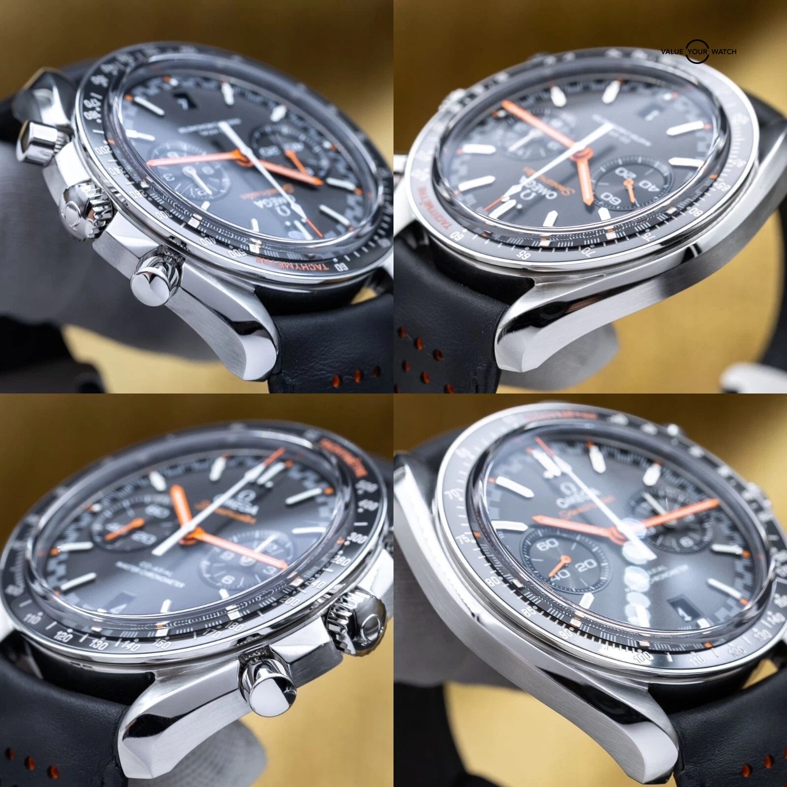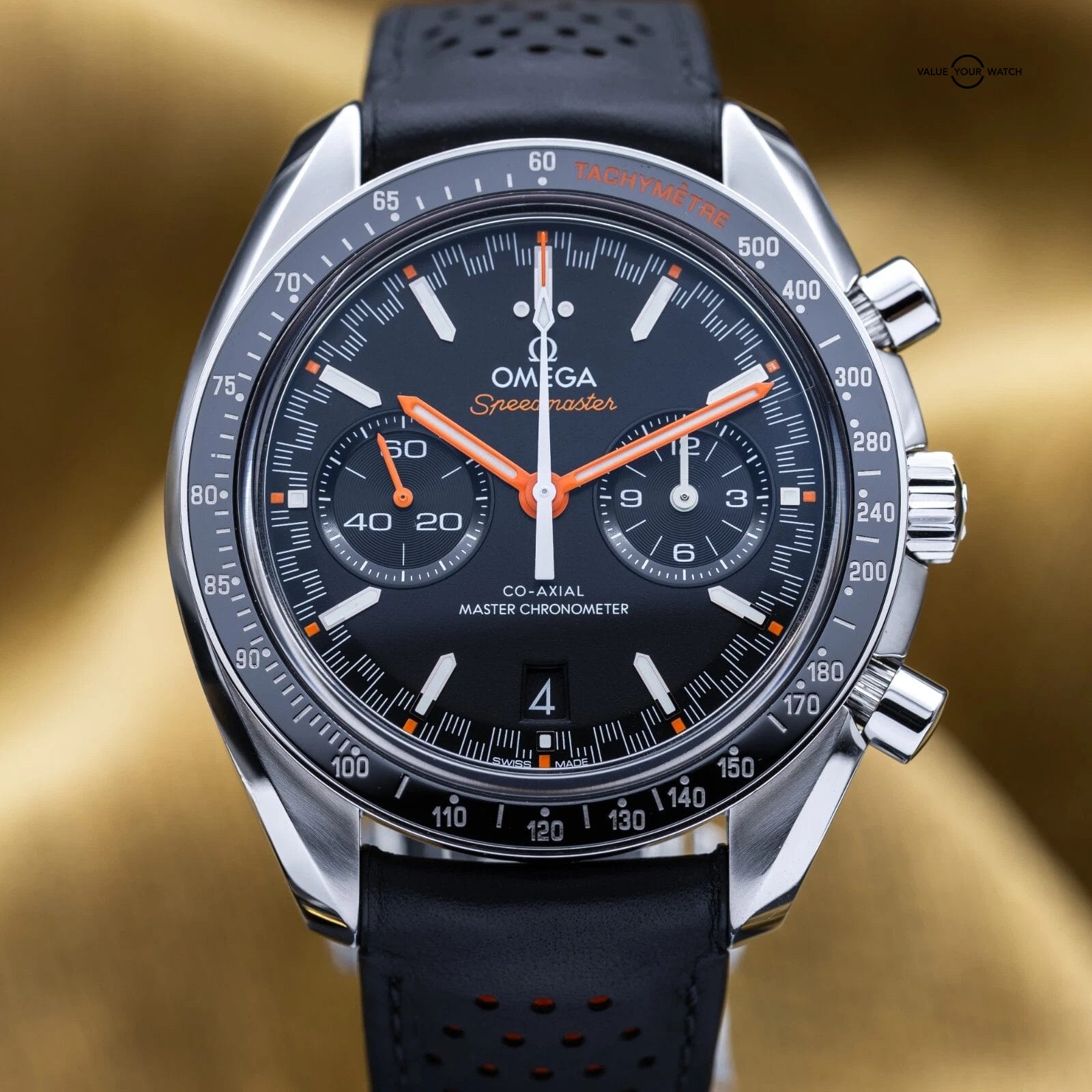 This racing version of the famous Speedmaster, with the popular black dial, racing style minute track and ceramic tachymetre bezel, is one of our favorite Chronographs out there! This watch was designed for automotive and racing enthusiasts, yet still giving some of the feel of the iconic Speedmaster Moonwatch. Very versatile, it can be worn casual or dressed up. This piece also has an open case back to allow you to enjoy the beautiful Omega 9900 master chronometer column wheel chronograph movement with time zone jumping hour hand…the best Omega has to offer today.