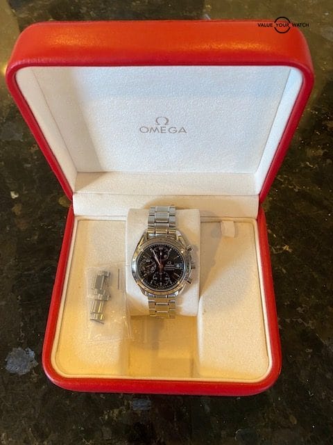 Excellent condition, clean watch with warranty card, manual, and both inner and outer boxes.