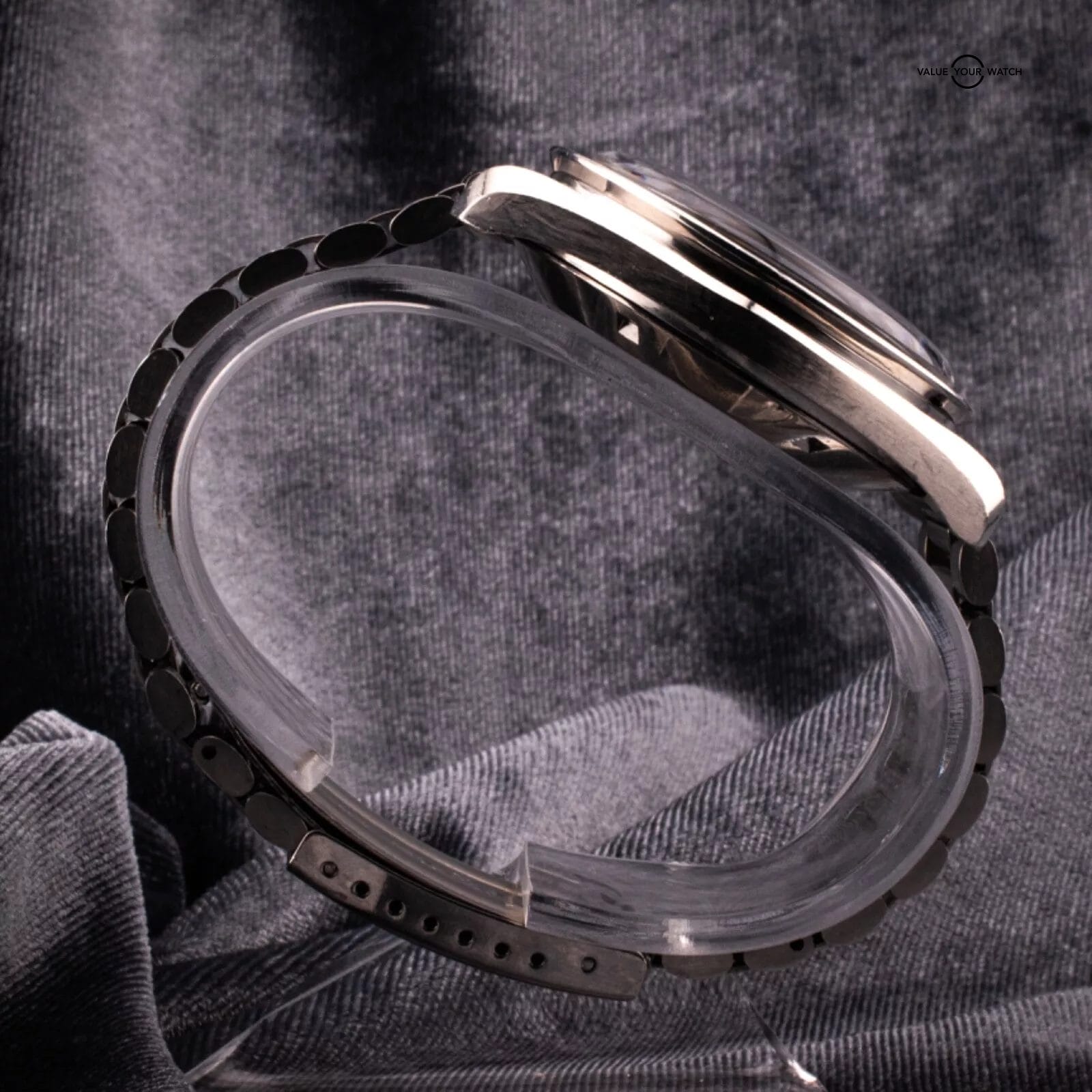 A true collector’s gem, this Omega Speedmaster 145.022-69 is one of the last “Pre-Moon” models, featuring the iconic calibre 861 movement. Manufactured in 1969, this reference predates the Moon landing caseback and retains the original Ω hippocampus engraving.