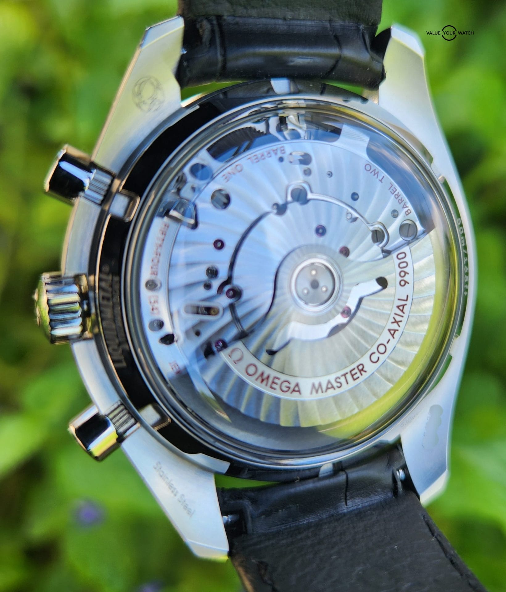 The watch utilizes Omega’s Master Chronometer calibre 9900, ensuring highly accurate timekeeping and chronograph functionality. It also exhibits a tachymetric scale on the bezel, a tool appreciated by motorsports enthusiasts.