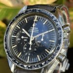 Original Omega sign buckle and leather strap is used and shows signs of wear.