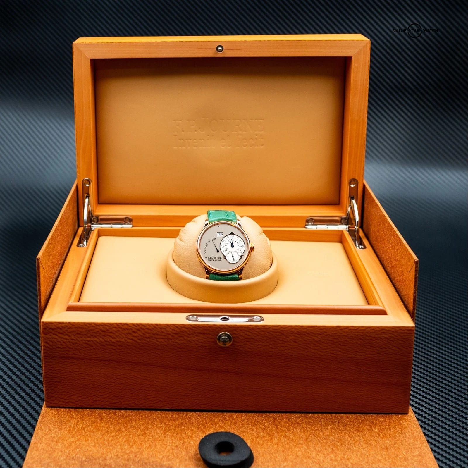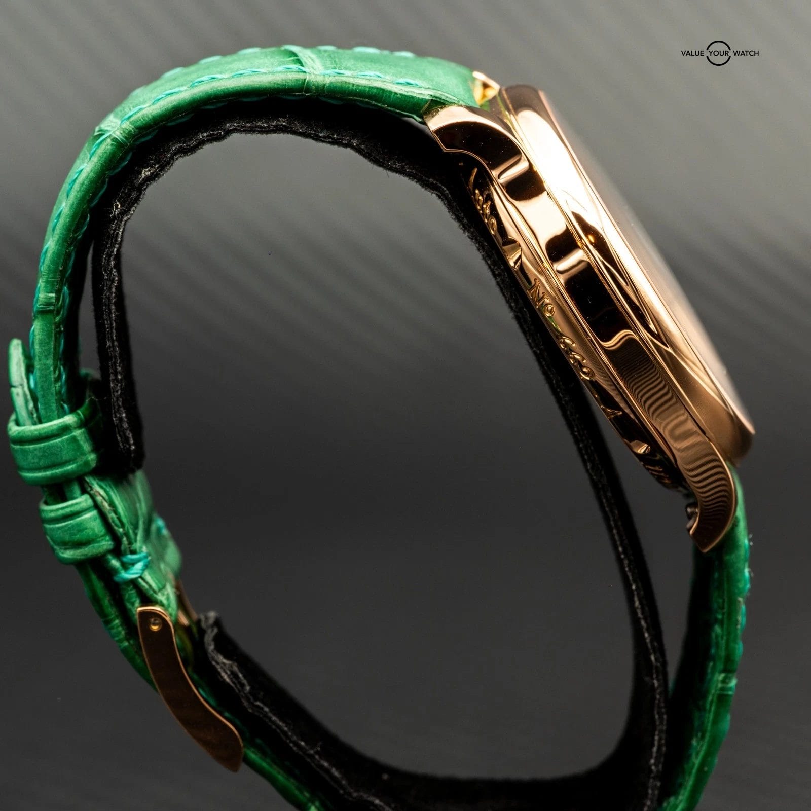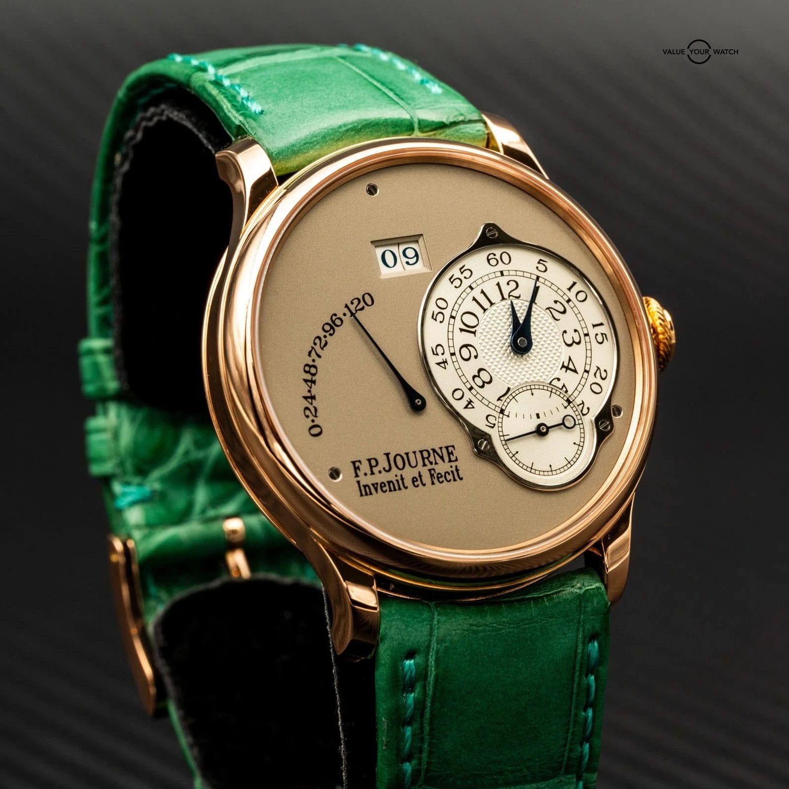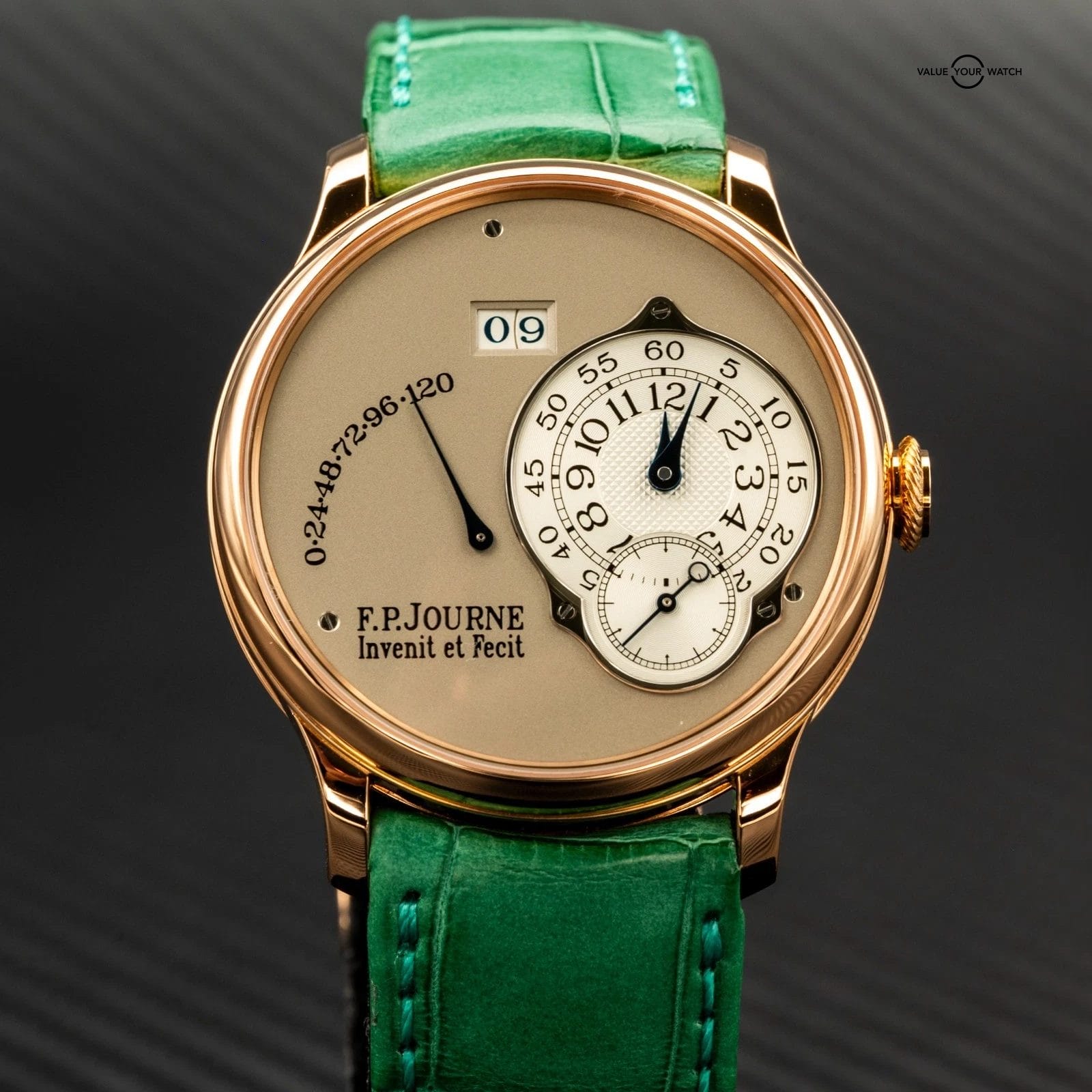 For sale is the highly desirable 38mm 2011 FP Journe Octa Reserve de Marche in rose gold with the grey dial, green leather strap and additional black strap.