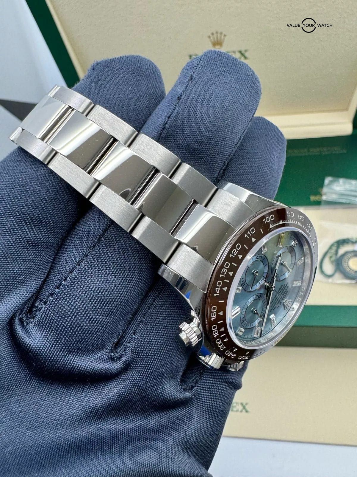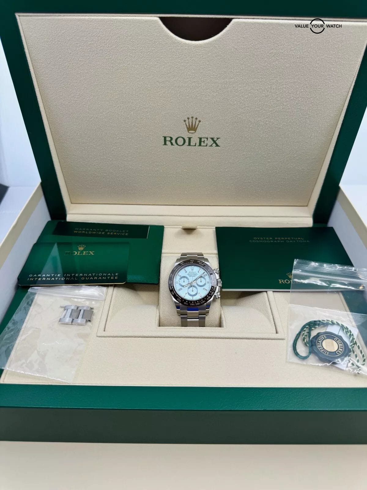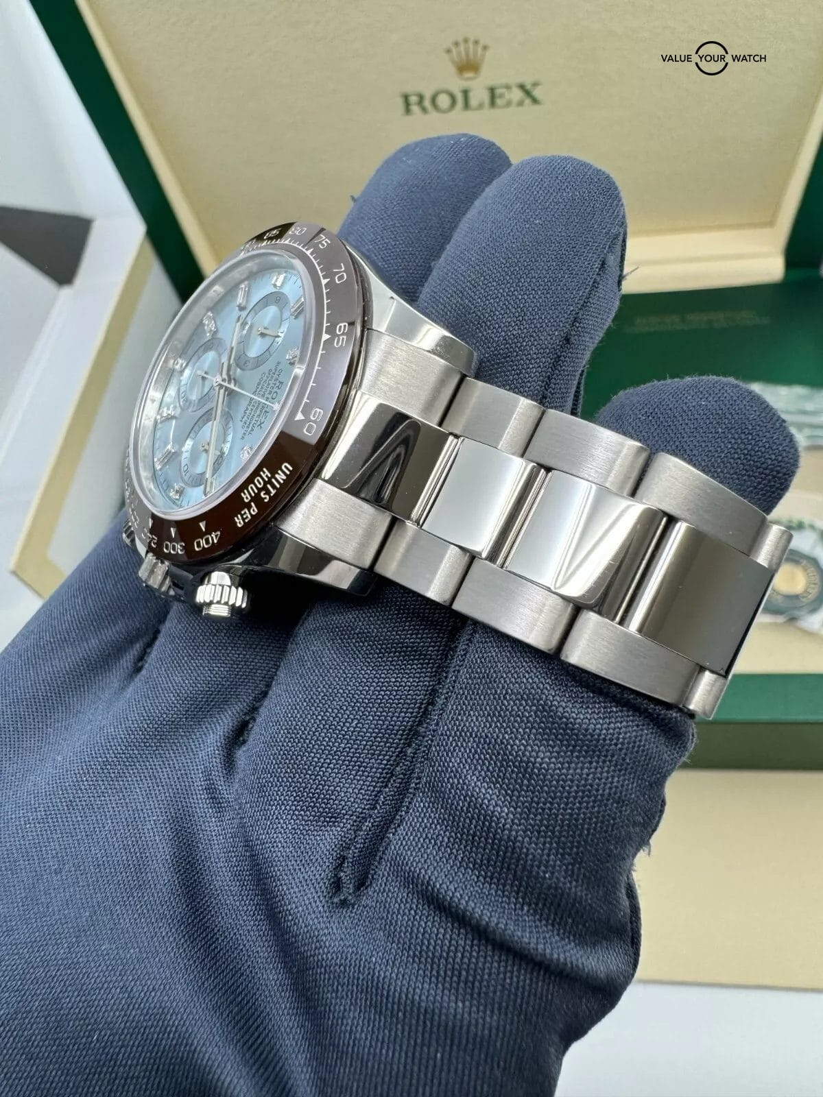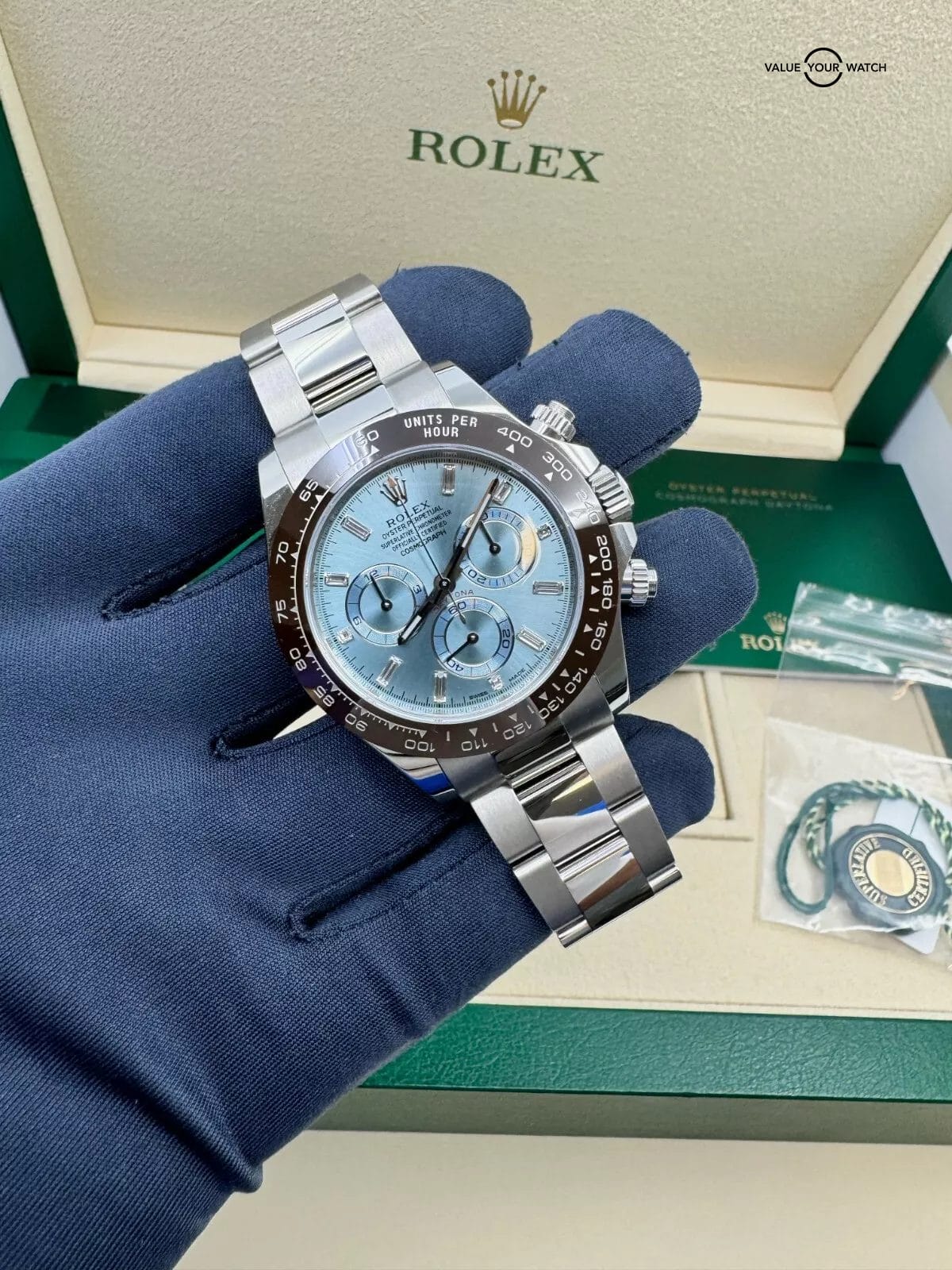 2020 Baguette Ice Blue Diamond Dial Platinum Daytona Complete Set MINT Condition