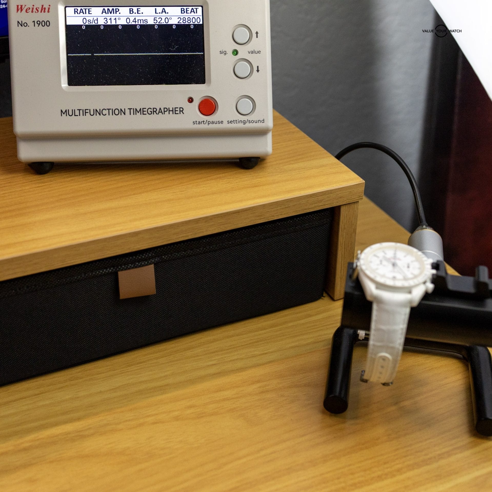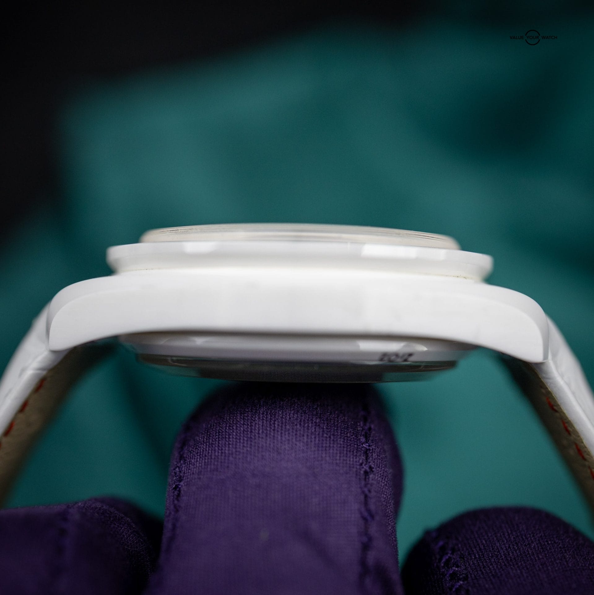This Speedmaster is a modern icon, blending space-age materials with Omega’s legendary chronograph legacy. Its striking white ceramic design, advanced movement, and timeless heritage make it a one-of-a-kind addition to any collection.