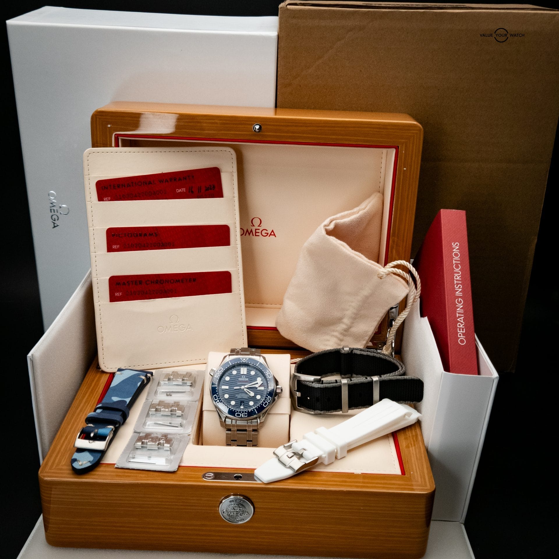 - ✅ Omega Warranty Card (dated 11/2023, valid 5 years)