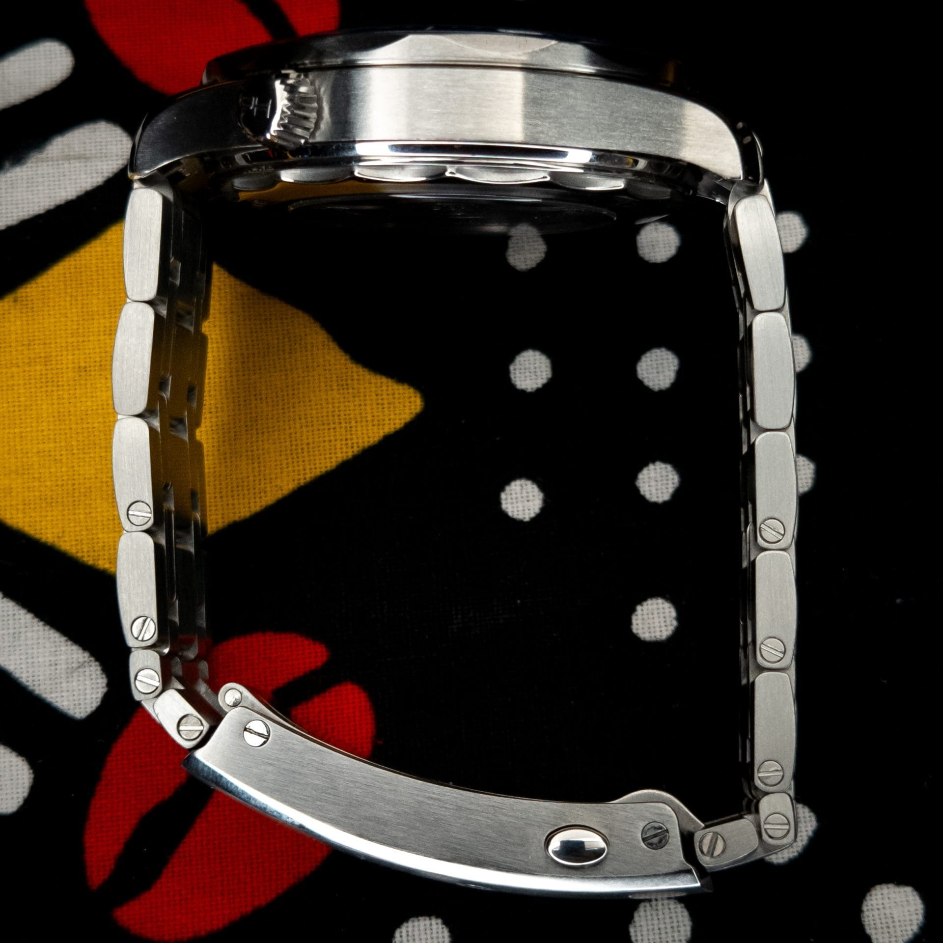 - Bracelet: Stainless steel bracelet with folding clasp and diver extension