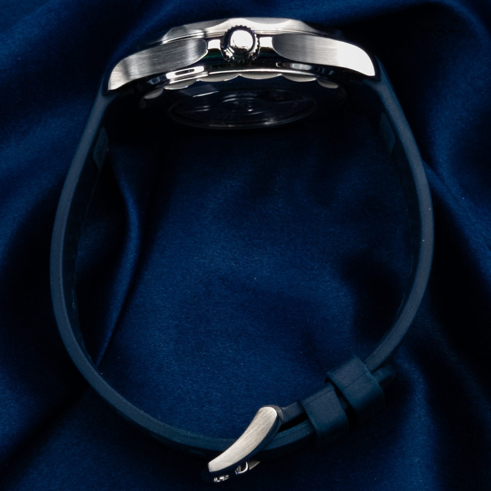 | Strap / Bracelet | Blue rubber strap (steel-fold deployant or buckle) |