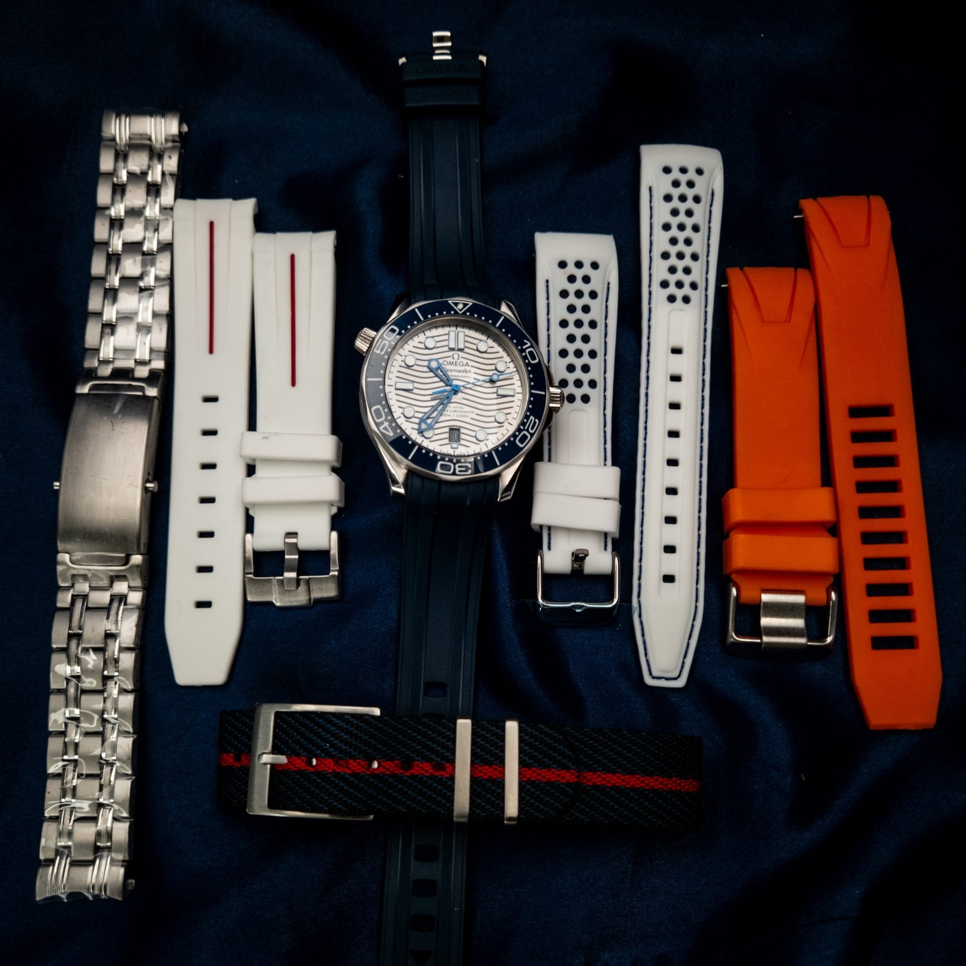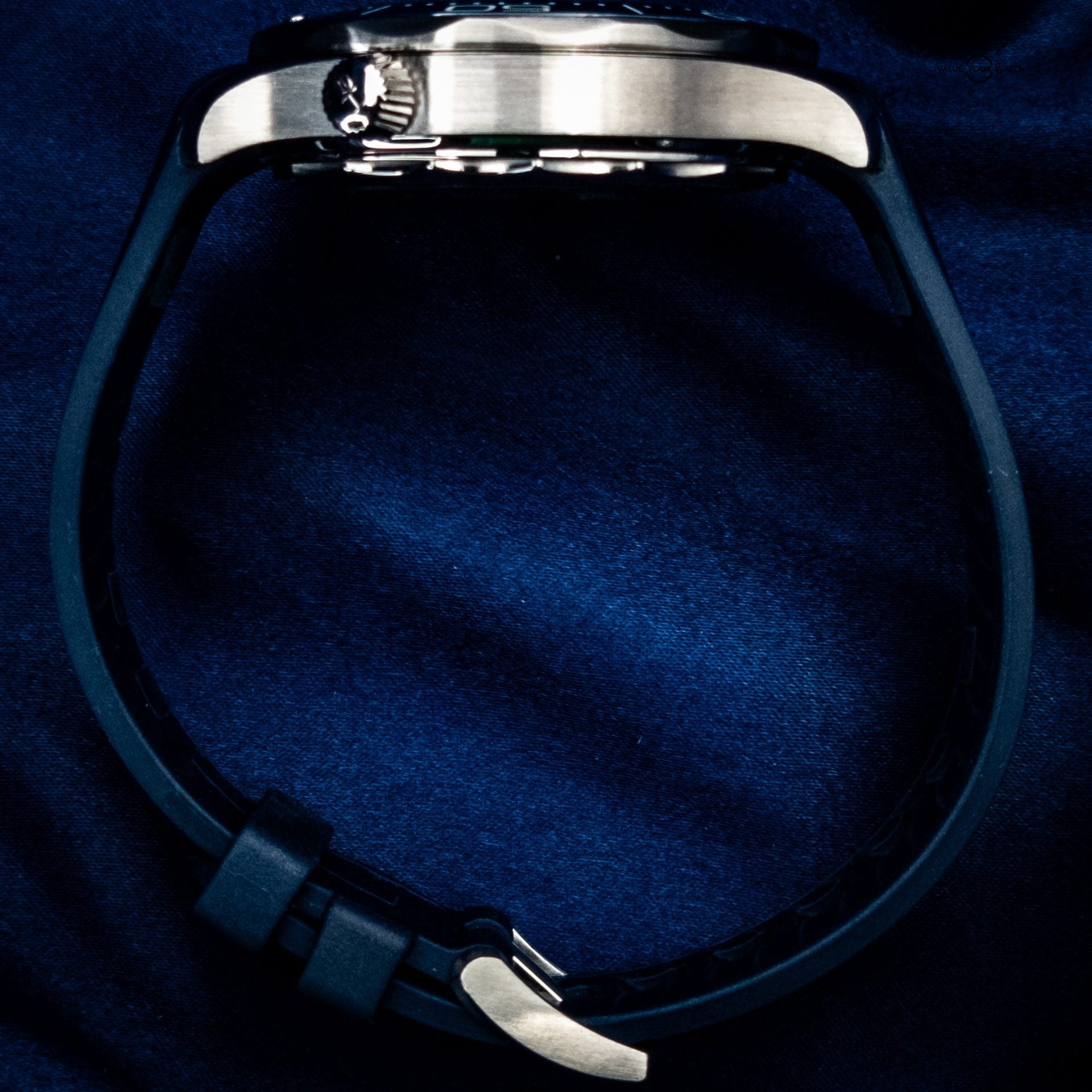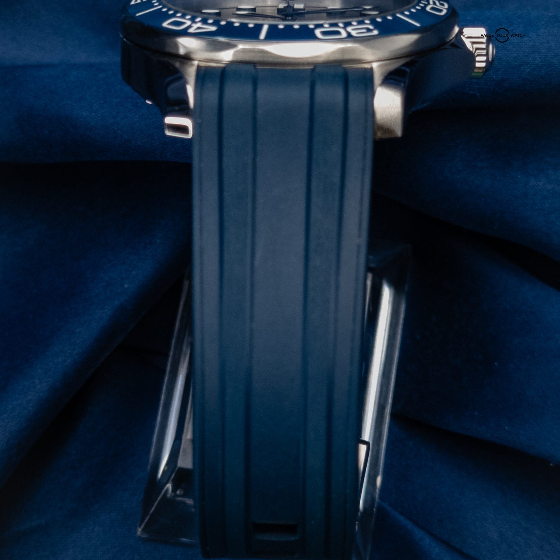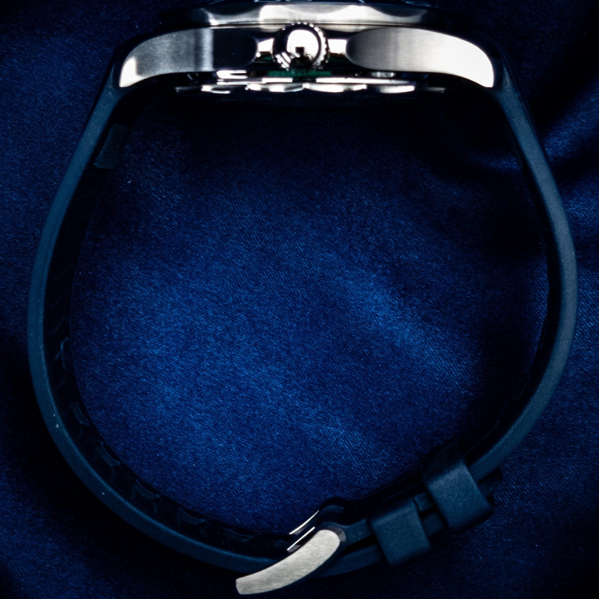| Strap / Bracelet | Blue rubber strap (steel-fold deployant or buckle) |