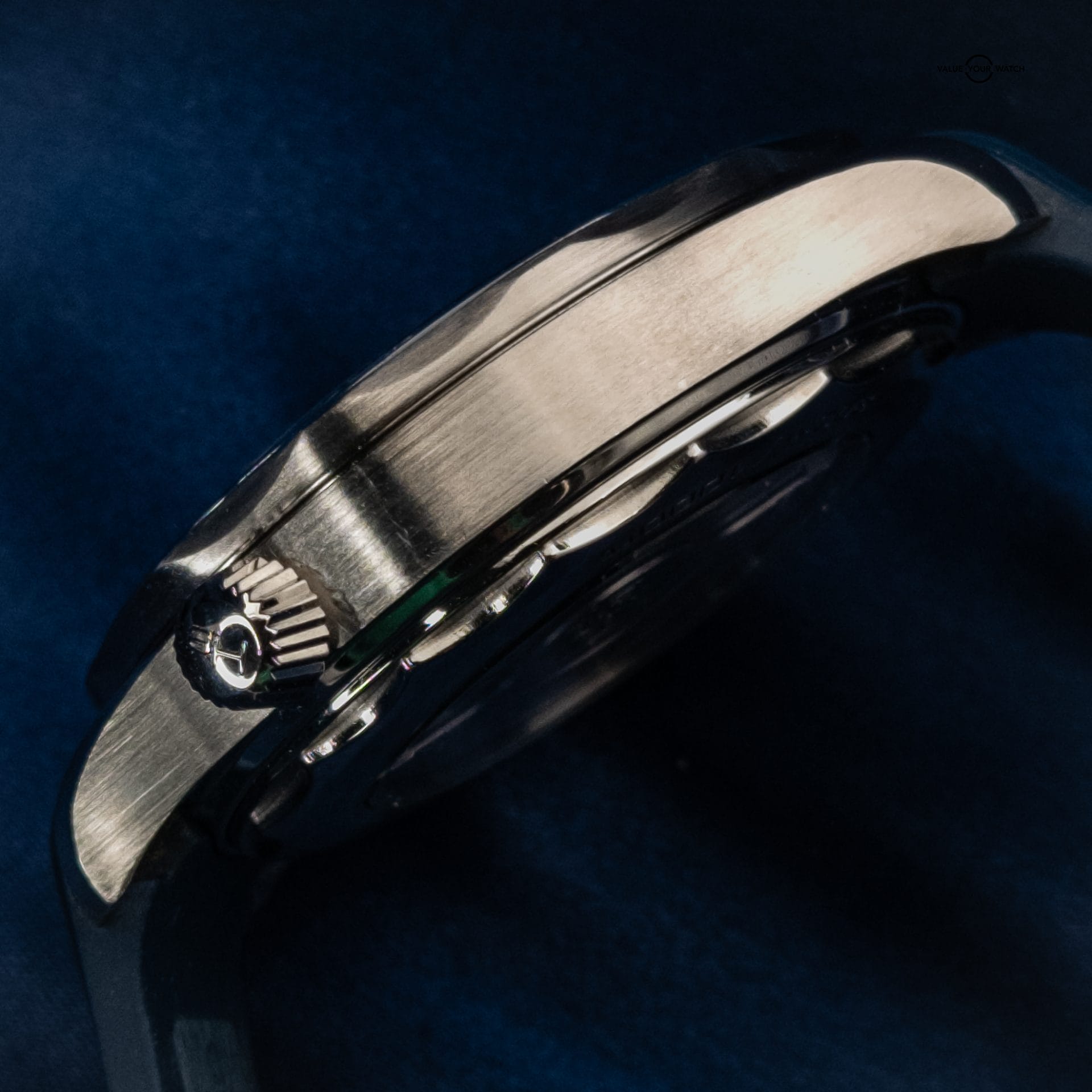 Built to go deep yet polished enough for daily wear, this watch boasts a screw-down crown, helium-escape valve, and 300-metre (30-bar) water resistance. The movement inside is Omega’s in-house calibre 8800, visible via the exhibition case-back and certified to METAS standards for magnetic- and time-accuracy performance. With unique details like blued skeleton hands, raised indexes filled with white Super-LumiNova, and a date window at 6 o’clock, it’s both functional and stylish.