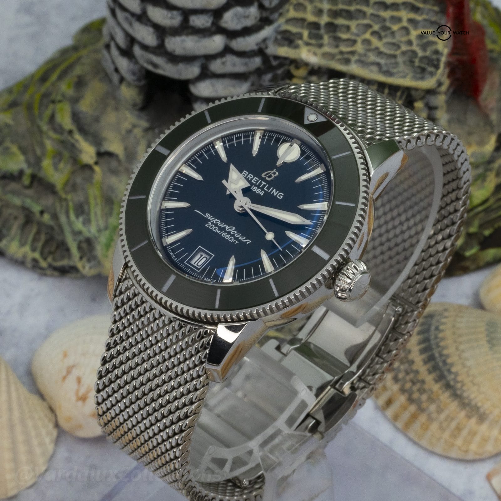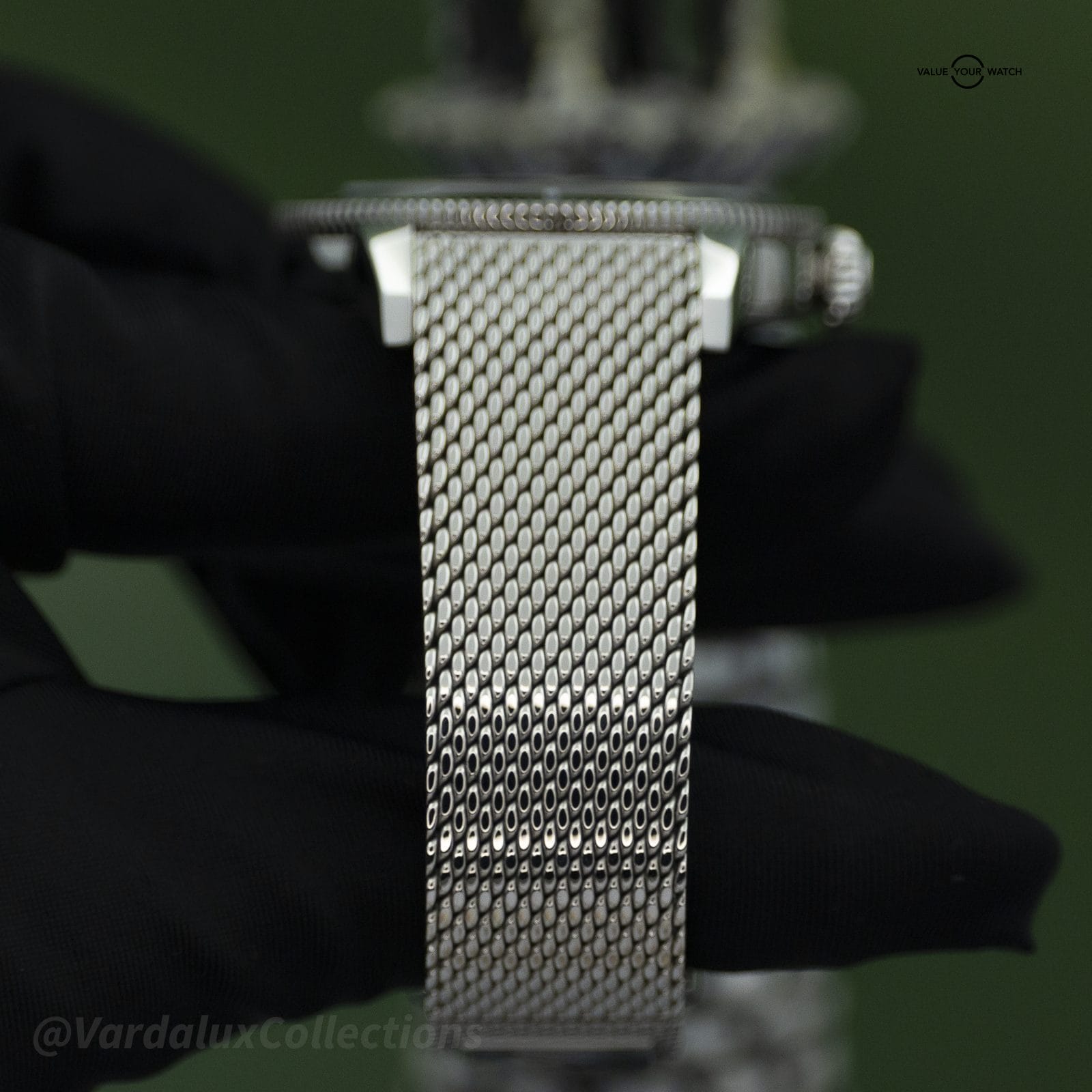 Bracelet: Milanese mesh clean. Green rubber strap also included.