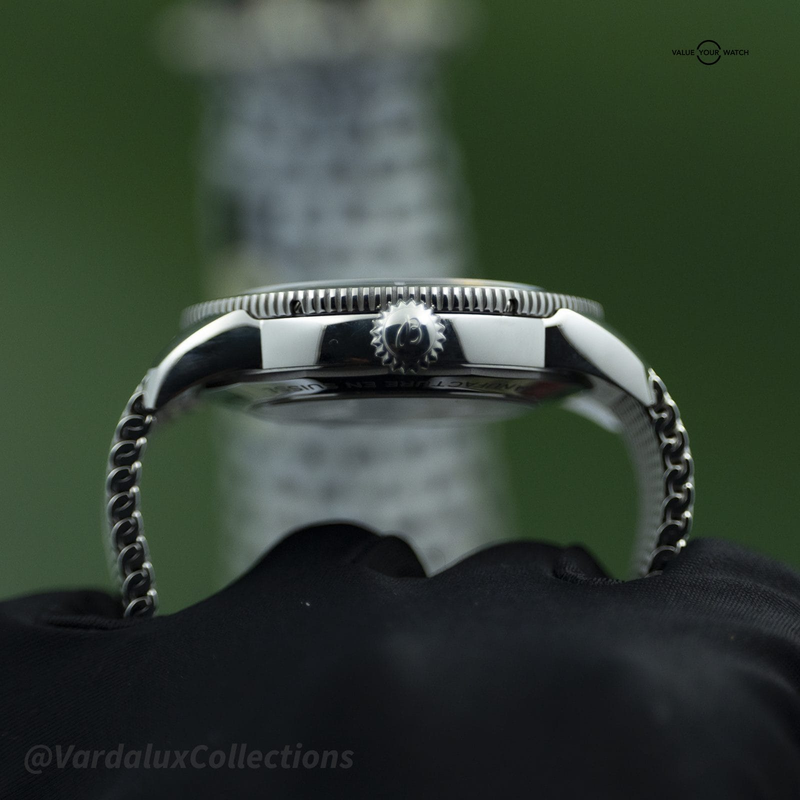 Bezel: Unidirectional rotating, green aluminum insert