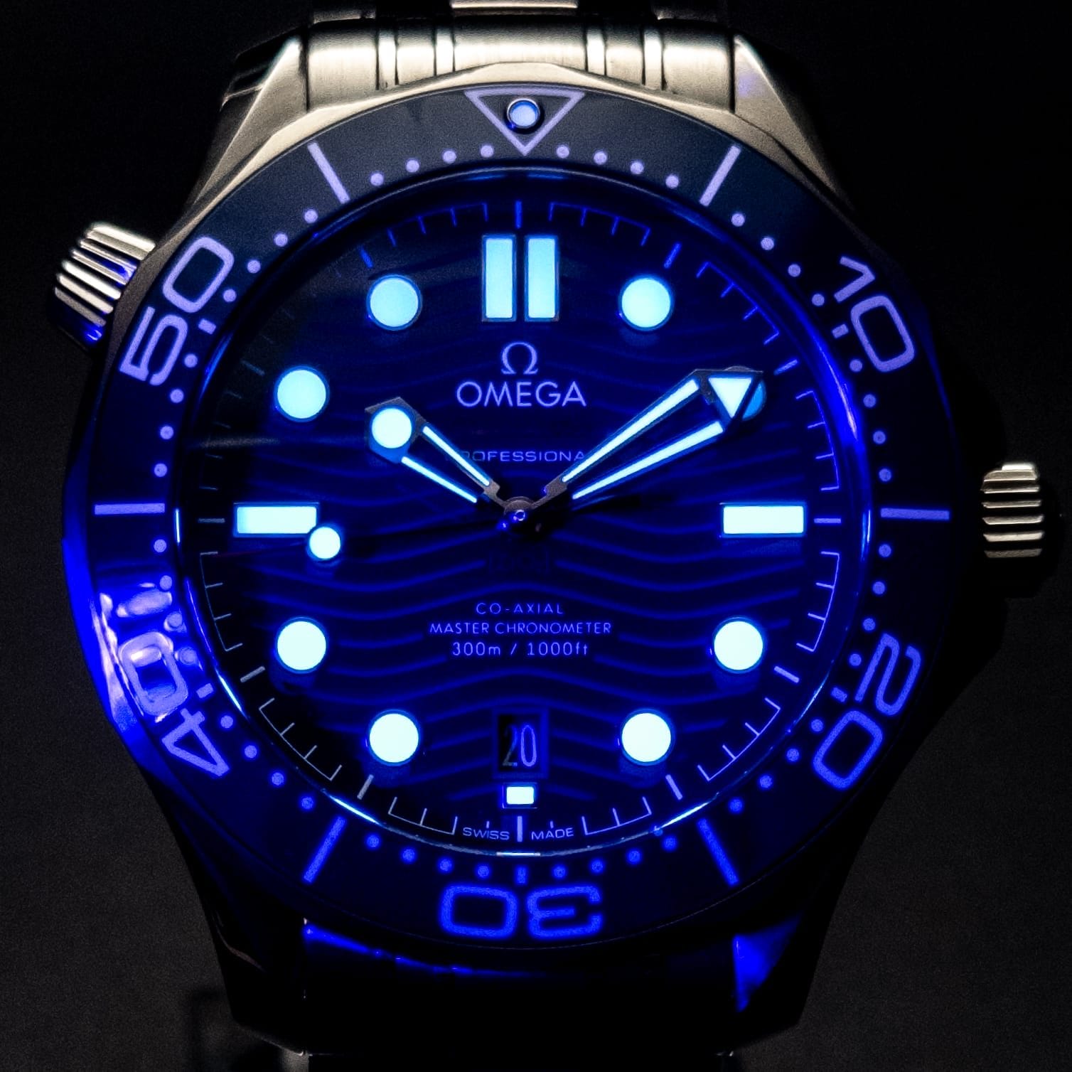 - Signature blue wave dial – a hallmark of Omega’s design excellence